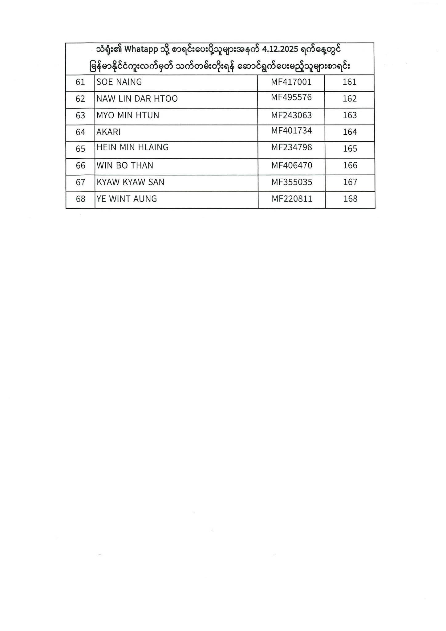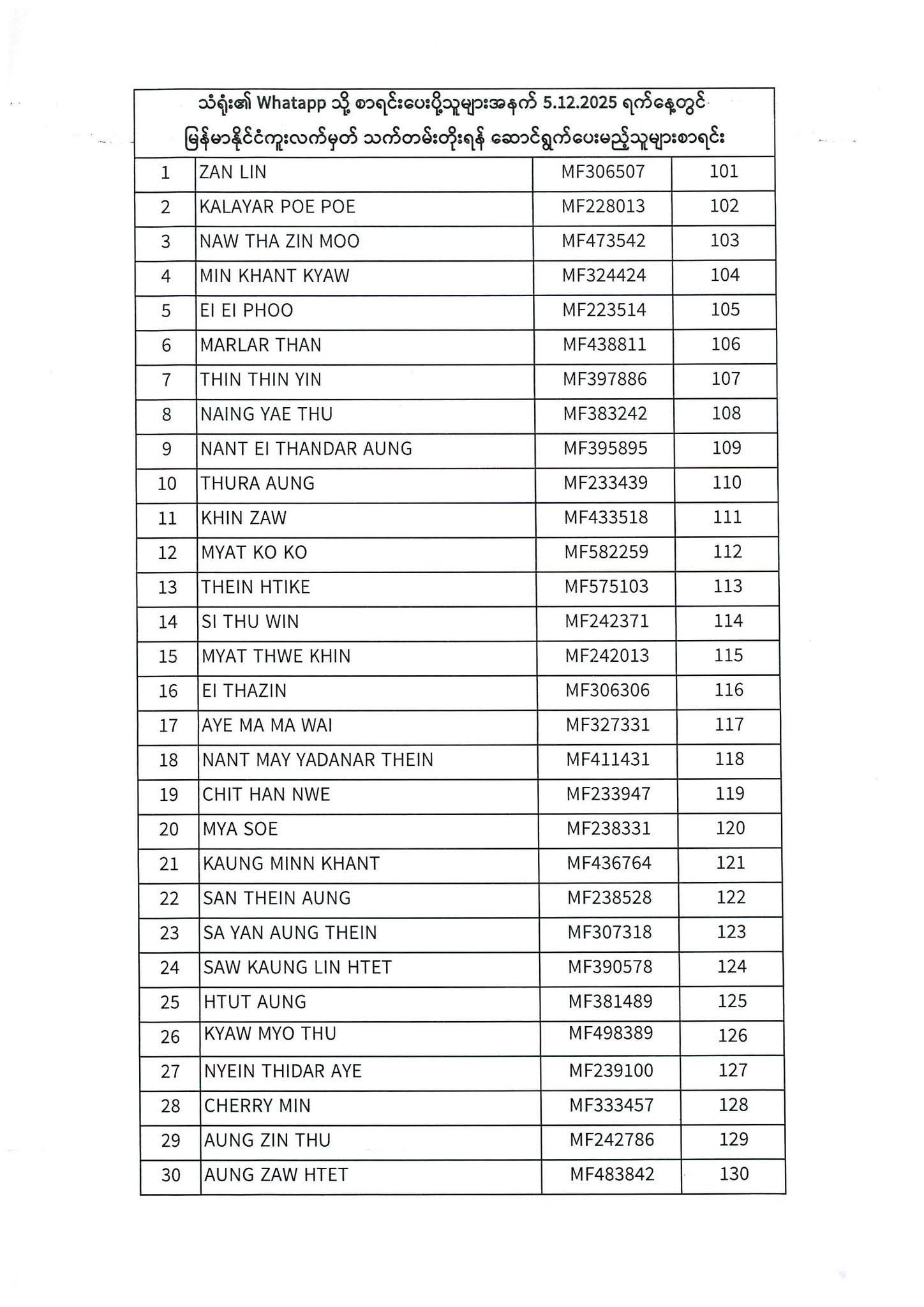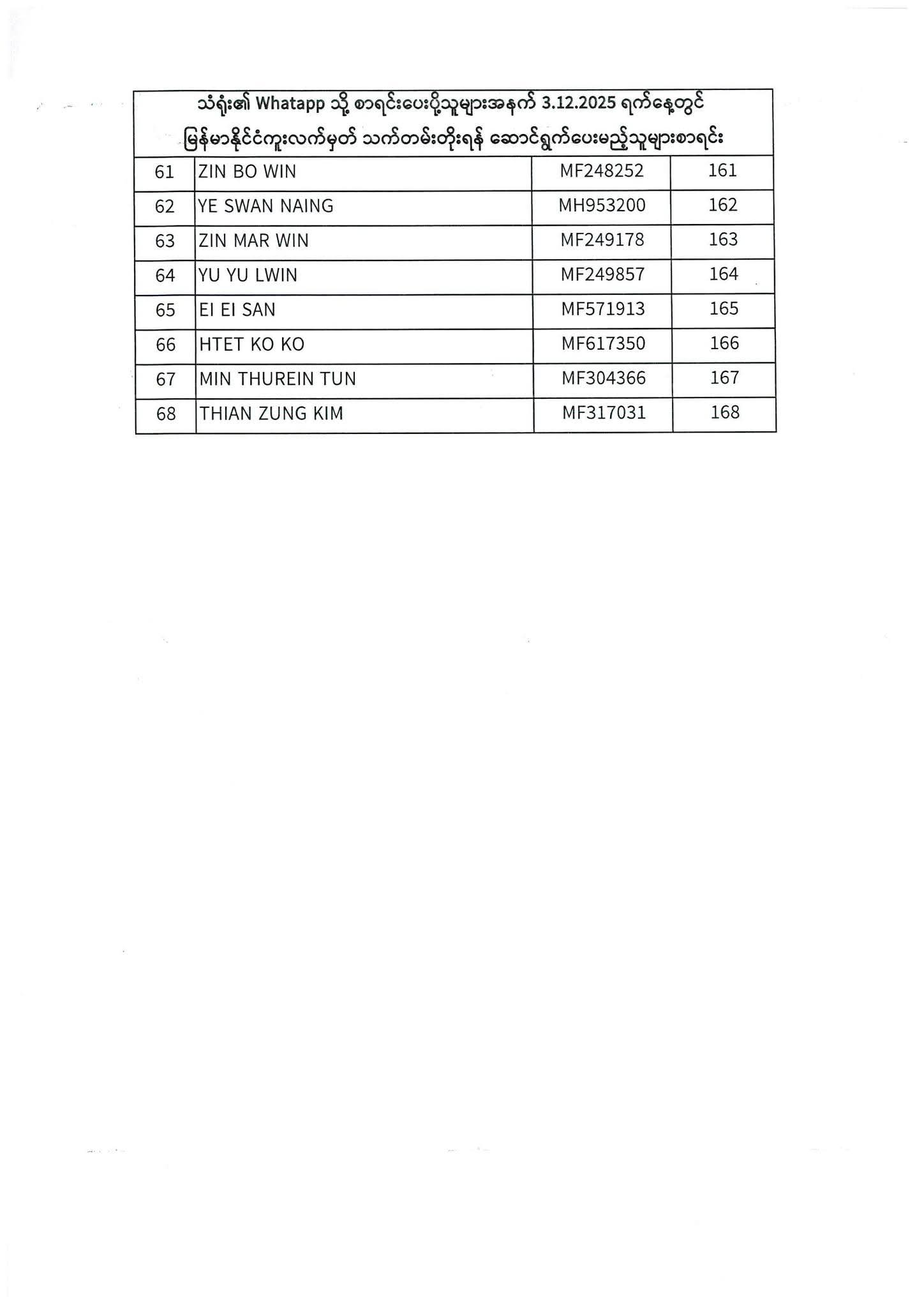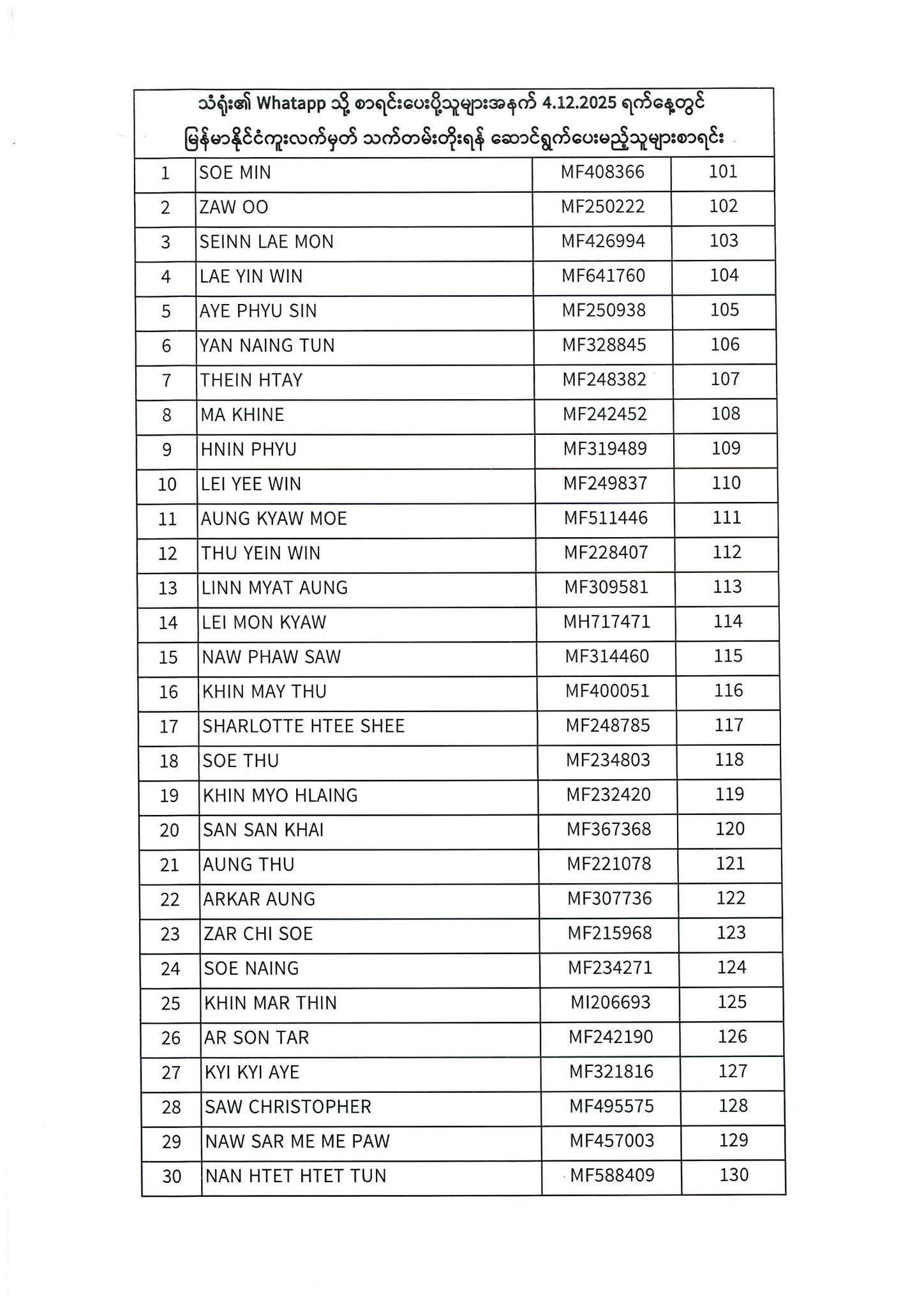 သတ်မှတ်ပေးထားသောရက်ချိန်းနေ့တွင်လာရောက်ပါရန်. မိမိပြုလုပ်ရမည့်ရက်ချိန်းနေ့အားအောက်ပါစာရင်းတွင်သေချာစွာကြည့်ပါ။