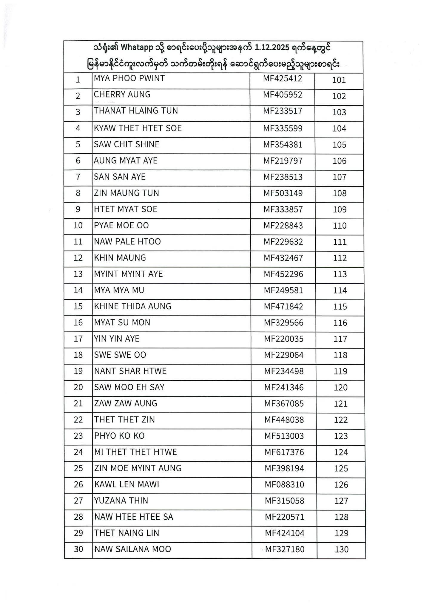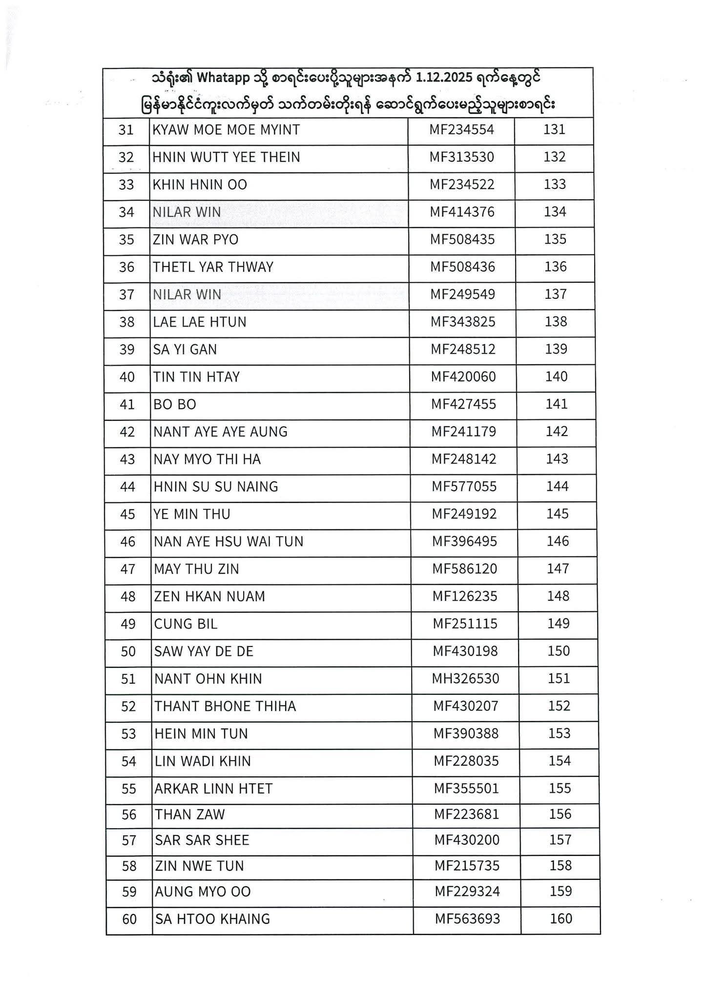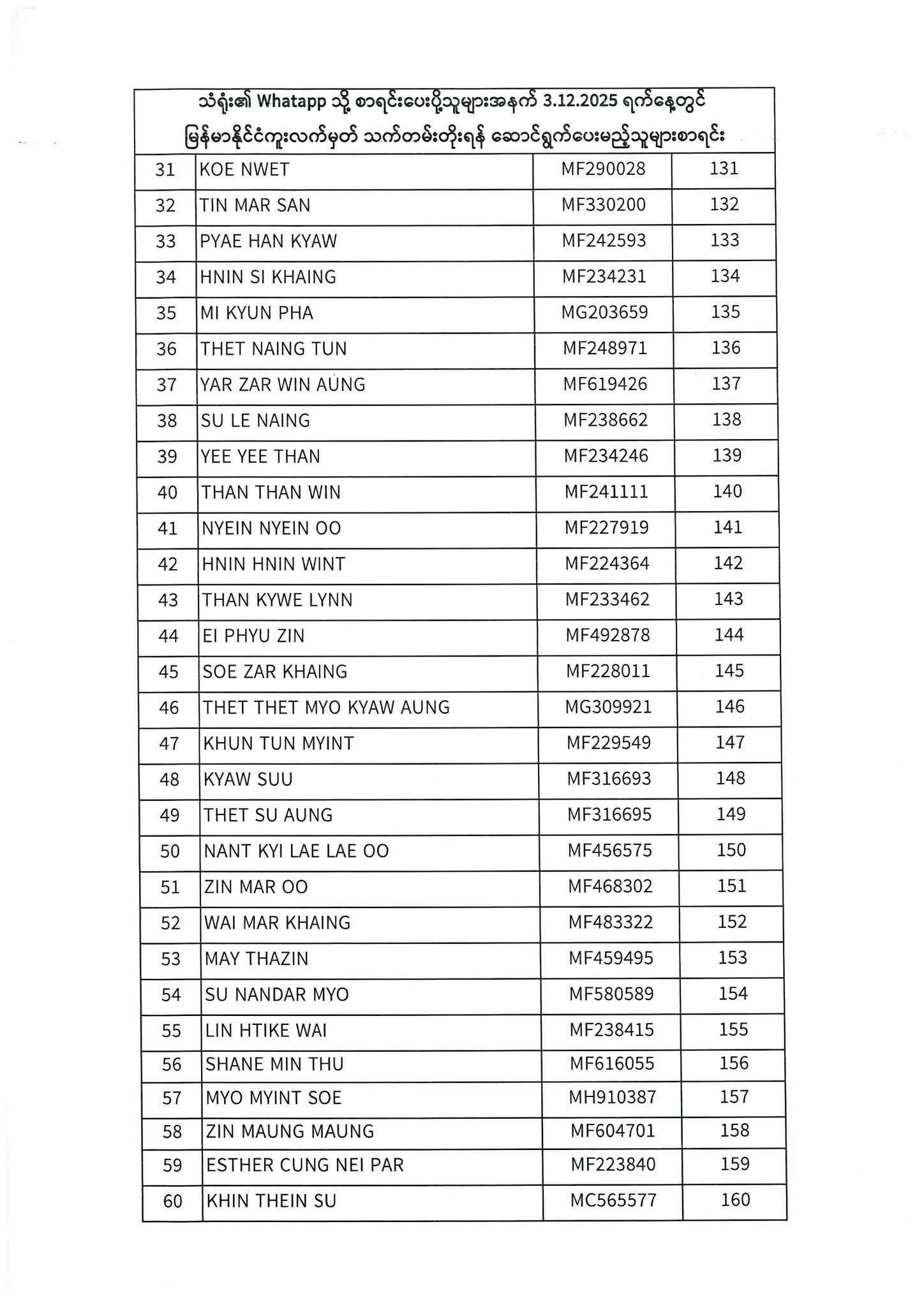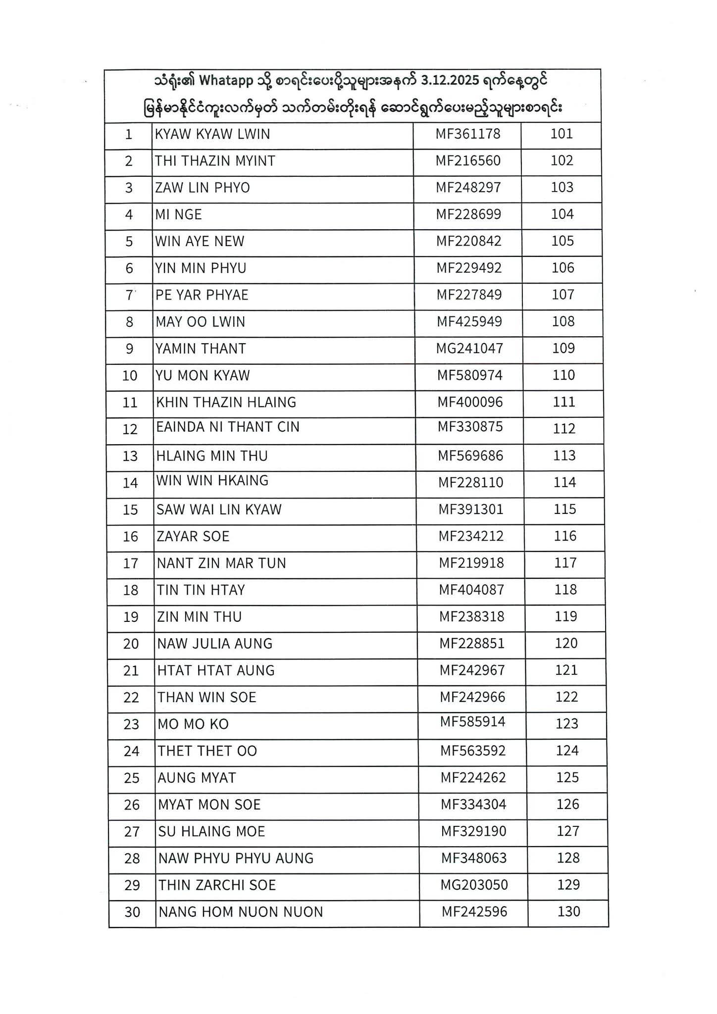 သတ်မှတ်ပေးထားသောရက်ချိန်းနေ့တွင်လာရောက်ပါရန်. မိမိပြုလုပ်ရမည့်ရက်ချိန်းနေ့အားအောက်ပါစာရင်းတွင်သေချာစွာကြည့်ပါ။