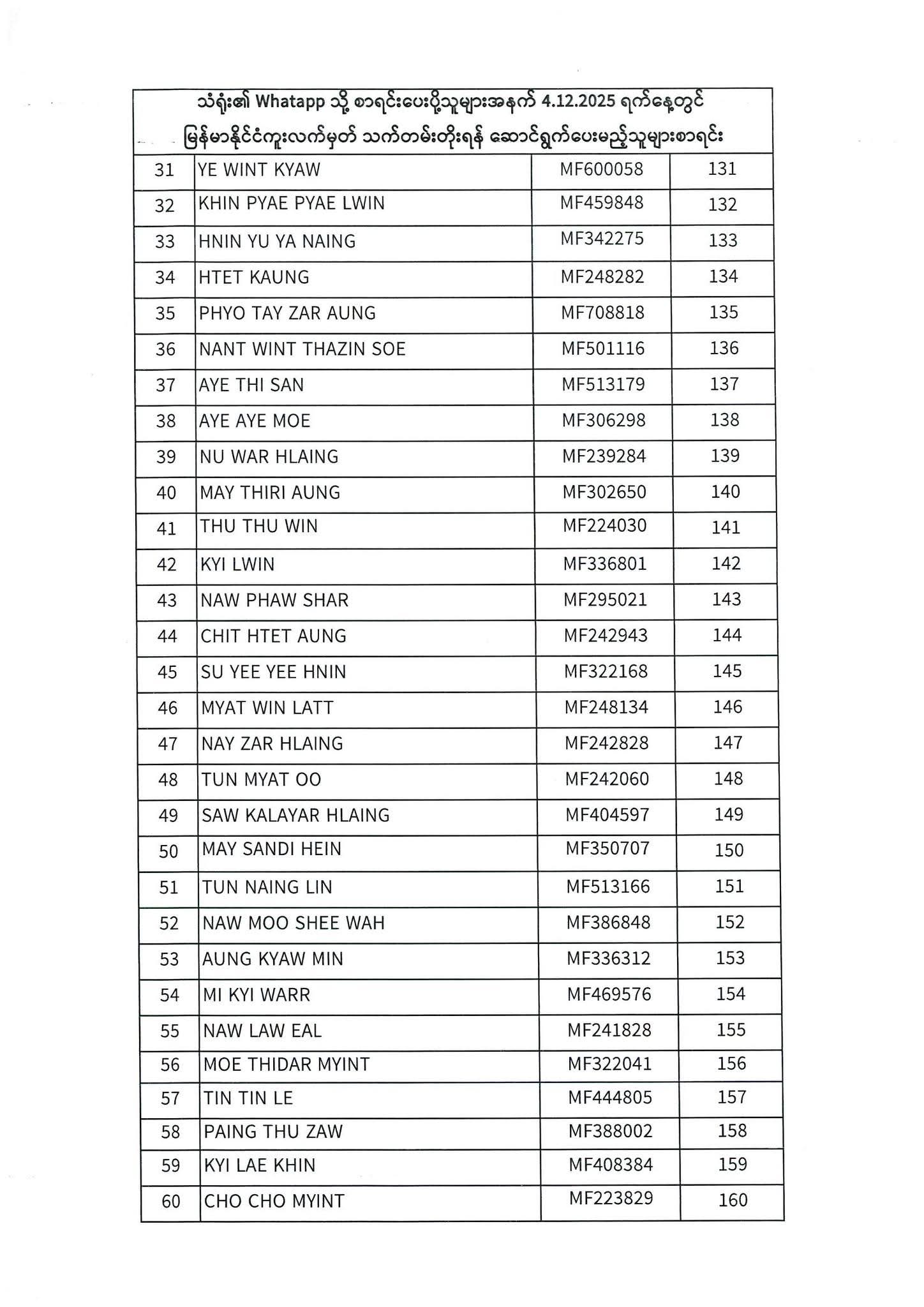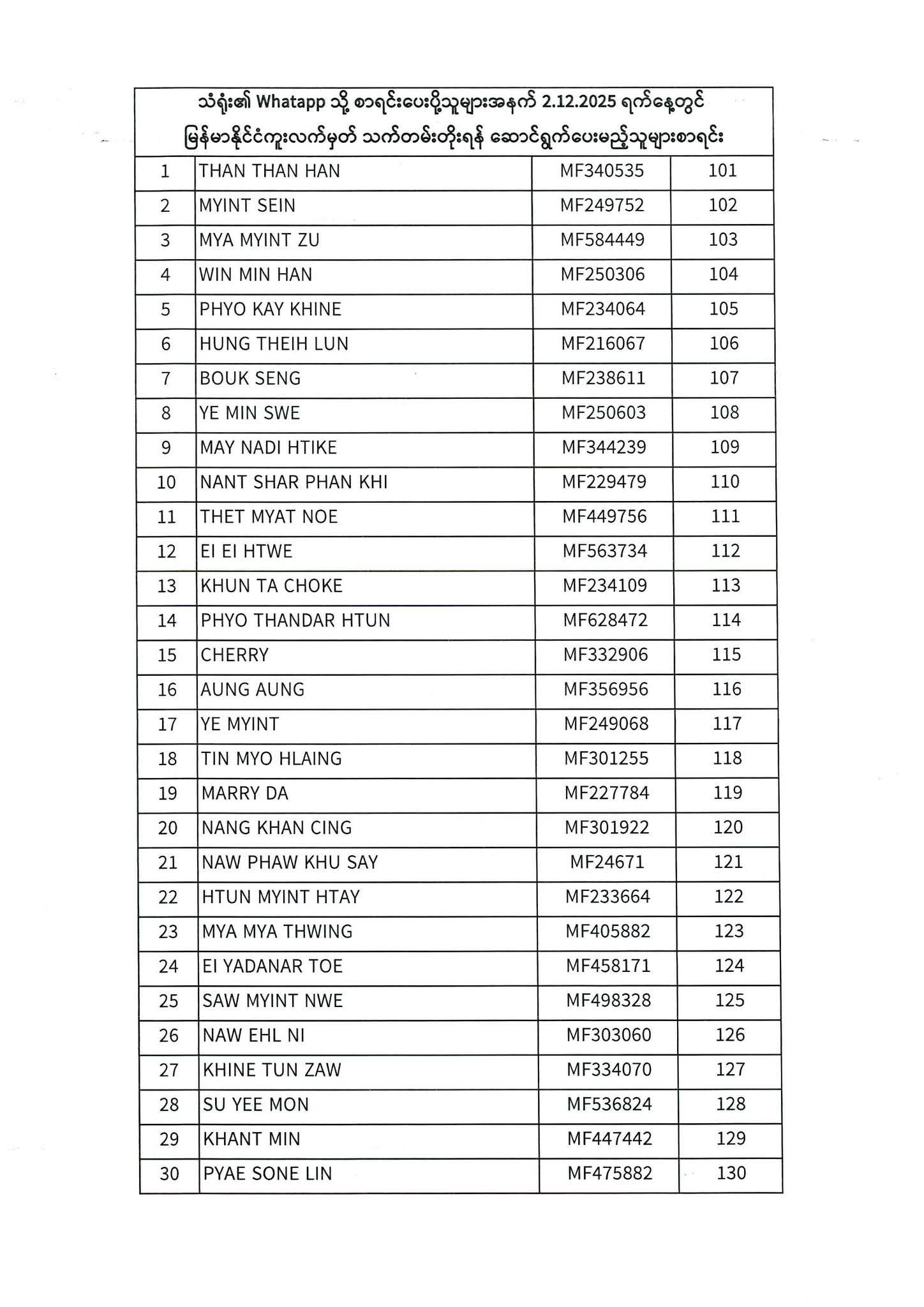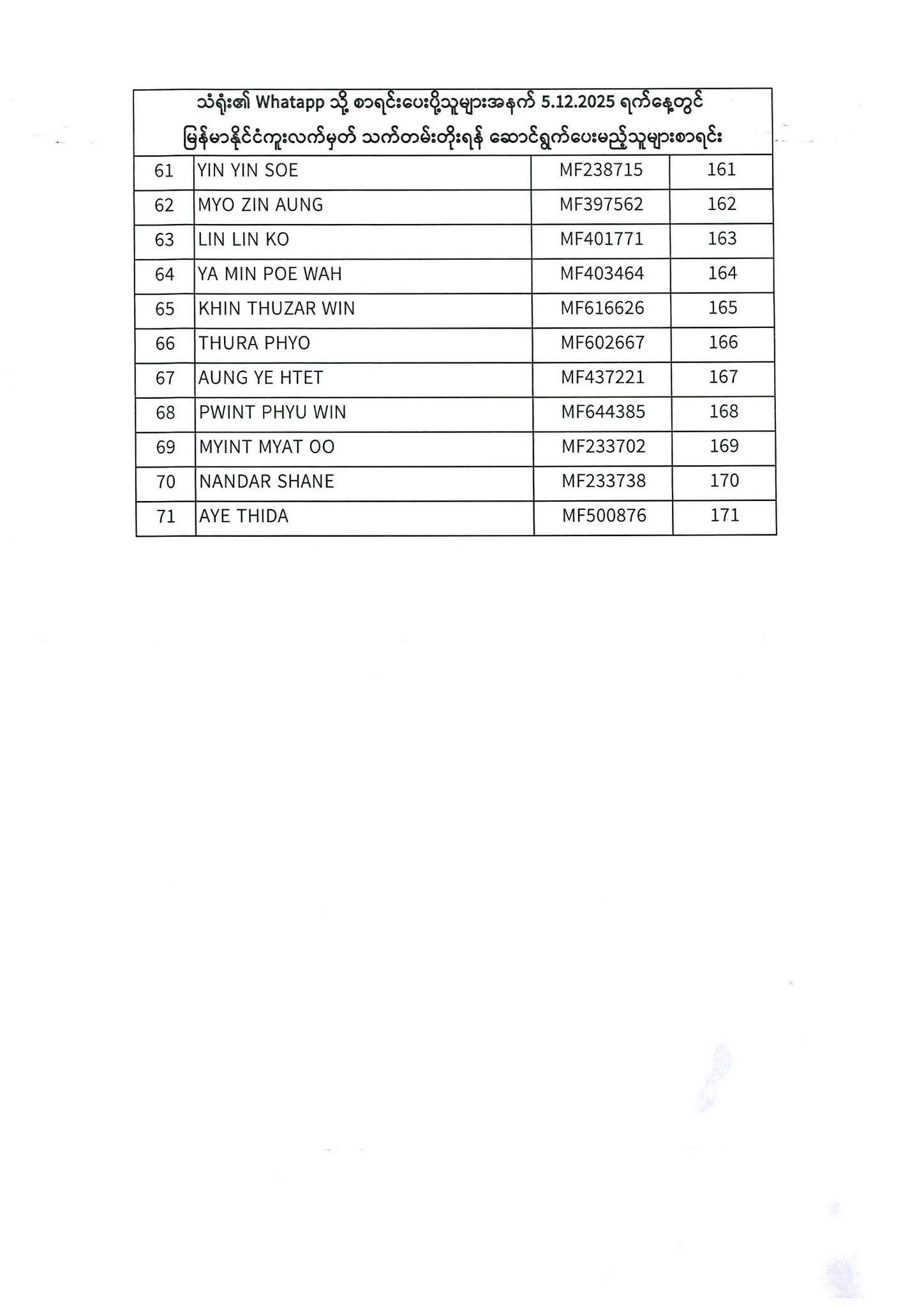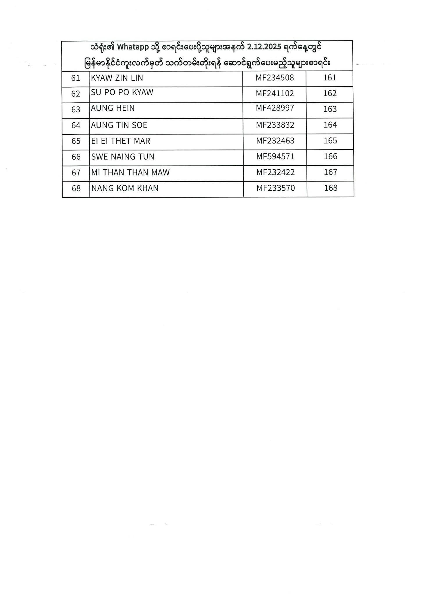 သတ်မှတ်ပေးထားသောရက်ချိန်းနေ့တွင်လာရောက်ပါရန်. မိမိပြုလုပ်ရမည့်ရက်ချိန်းနေ့အားအောက်ပါစာရင်းတွင်သေချာစွာကြည့်ပါ။