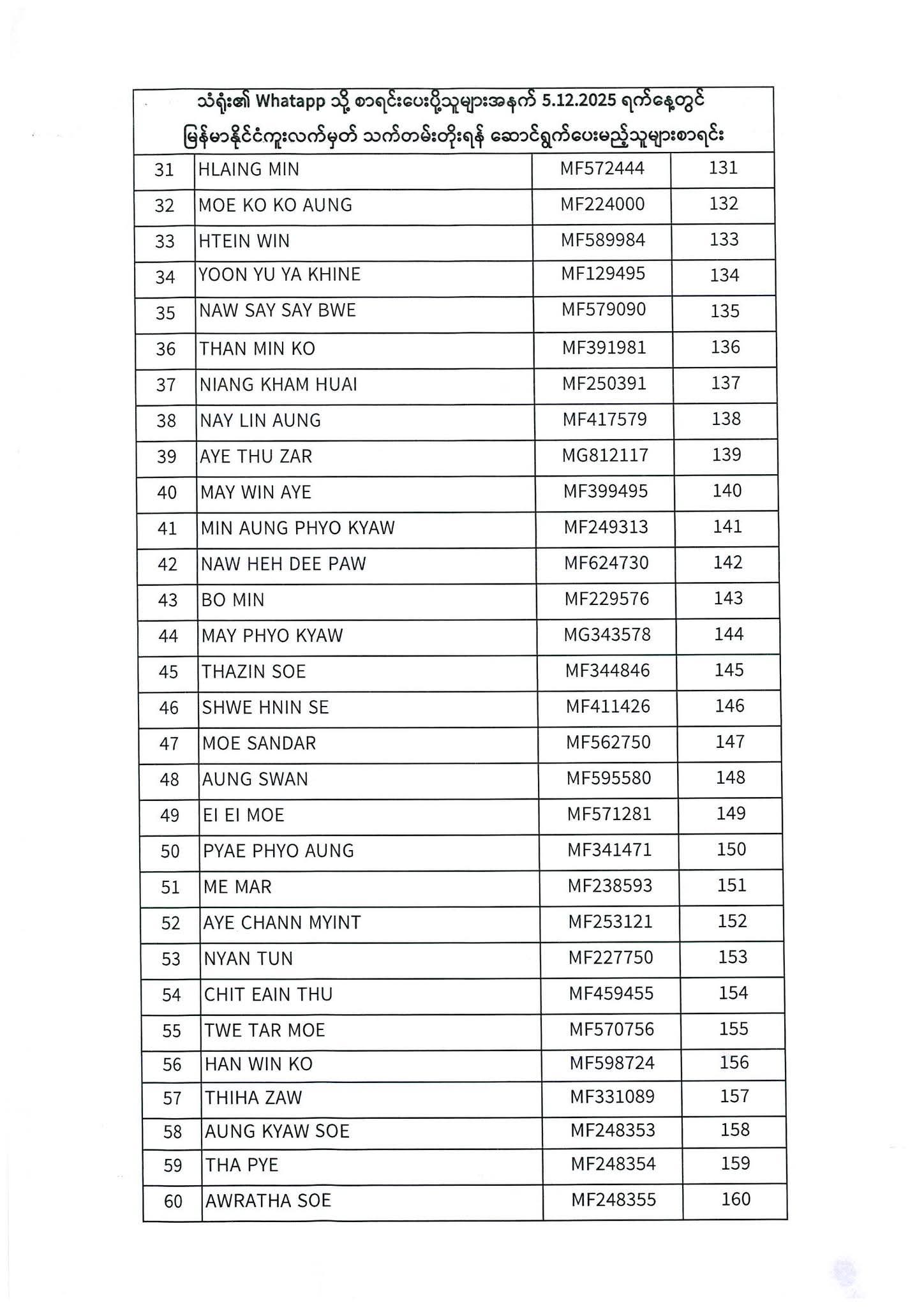 PASSPORT RENEWAL LIST 1 December To 5 December⇩