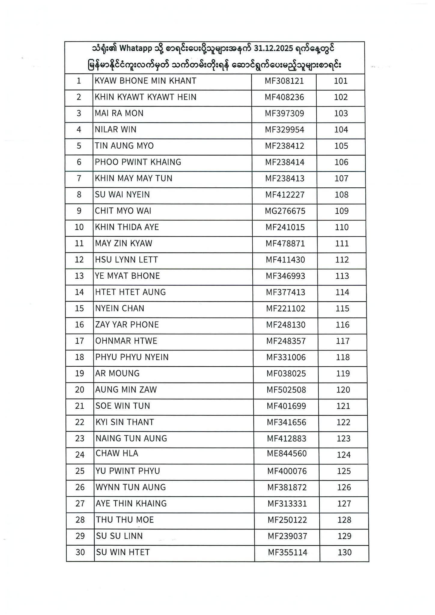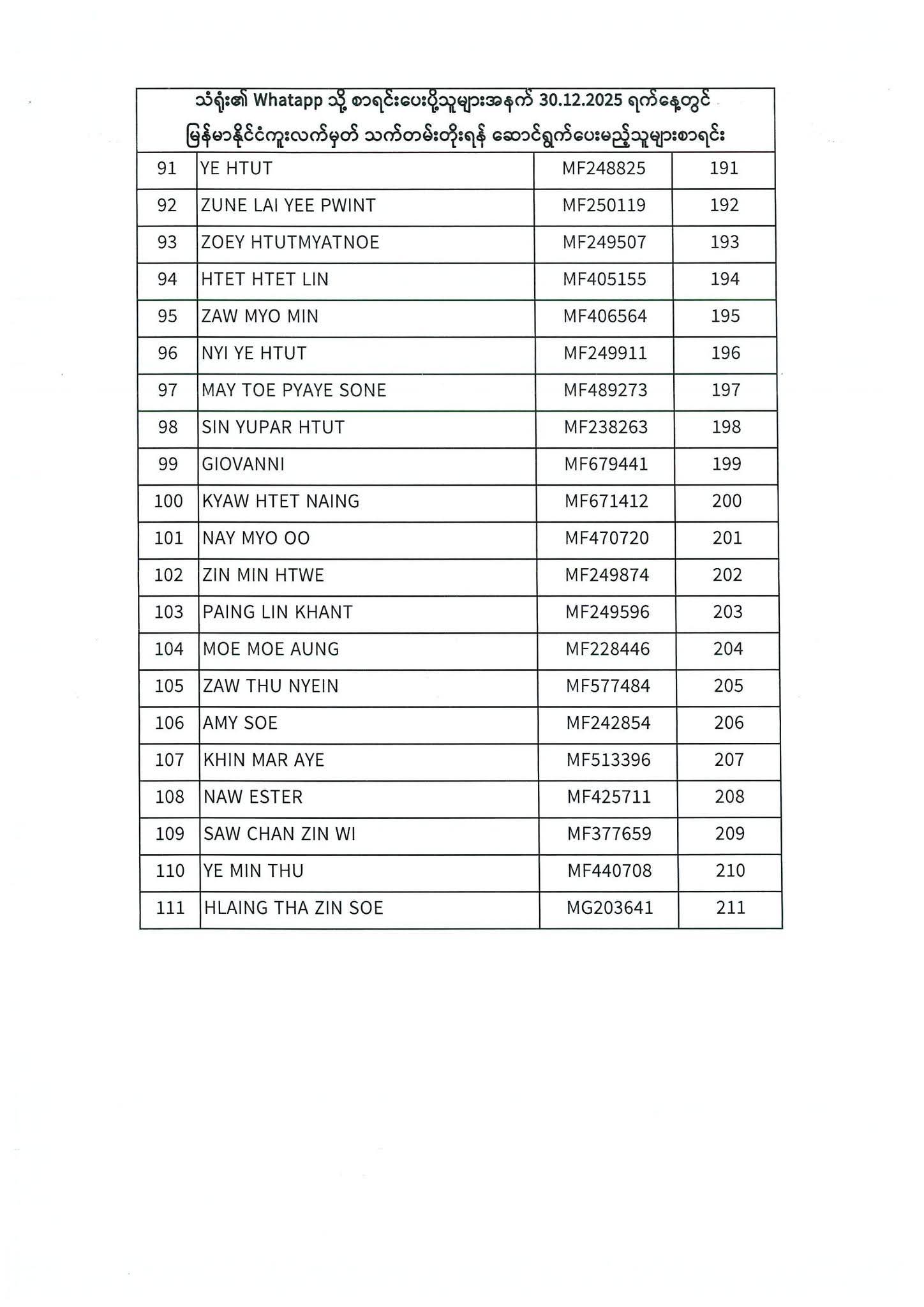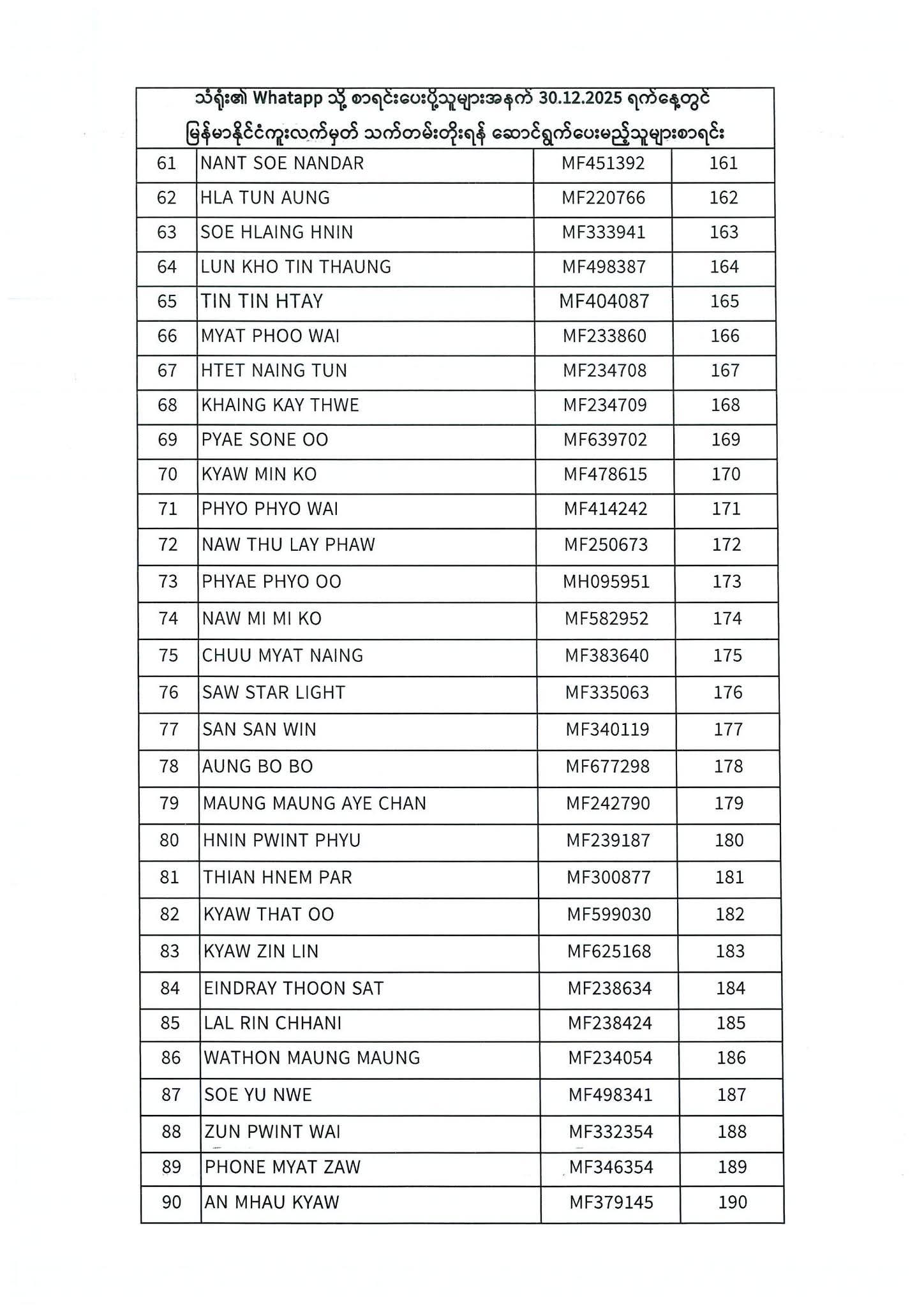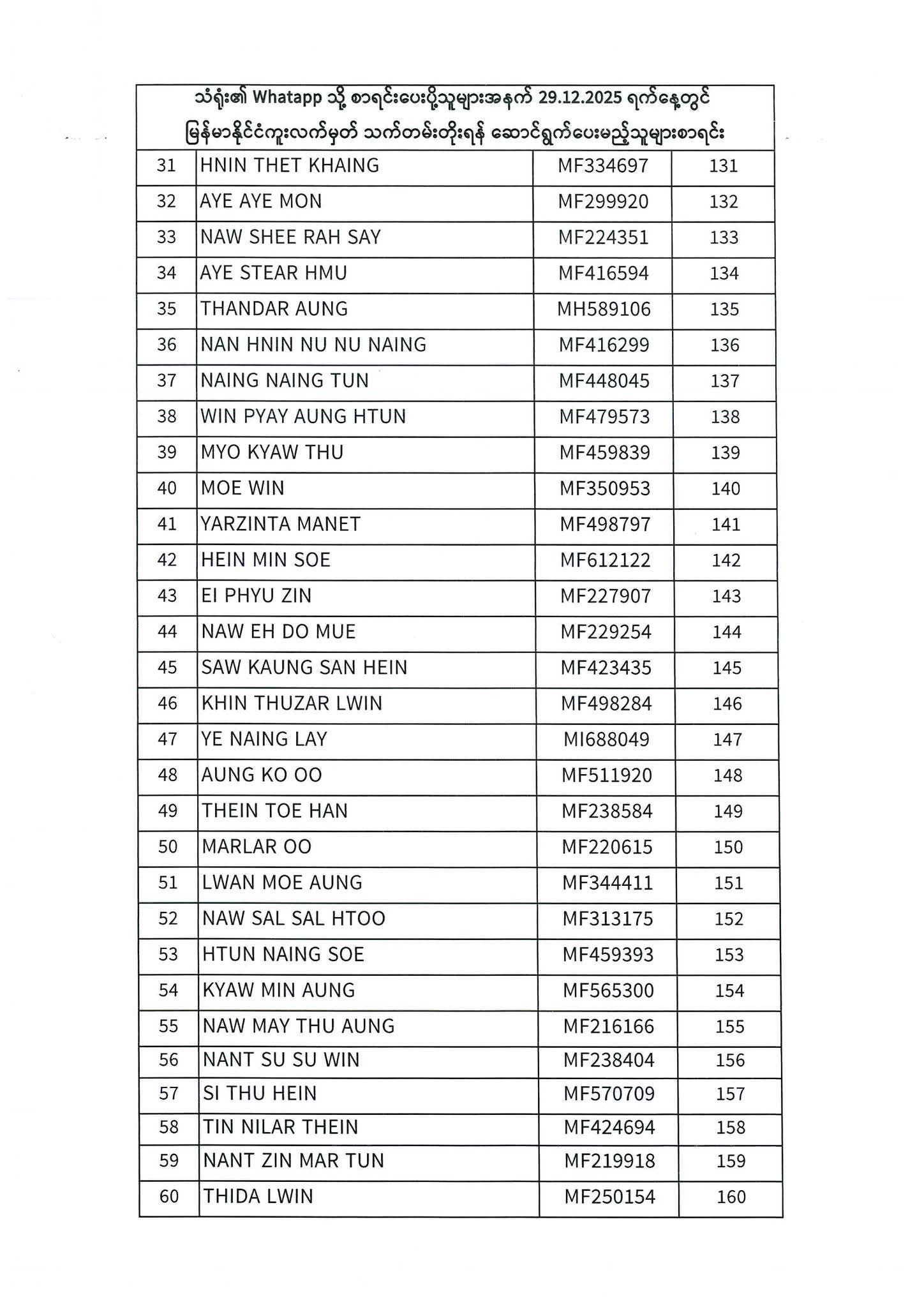 PASSPORT RENEWAL LIST 29 December To 31 December⇩
