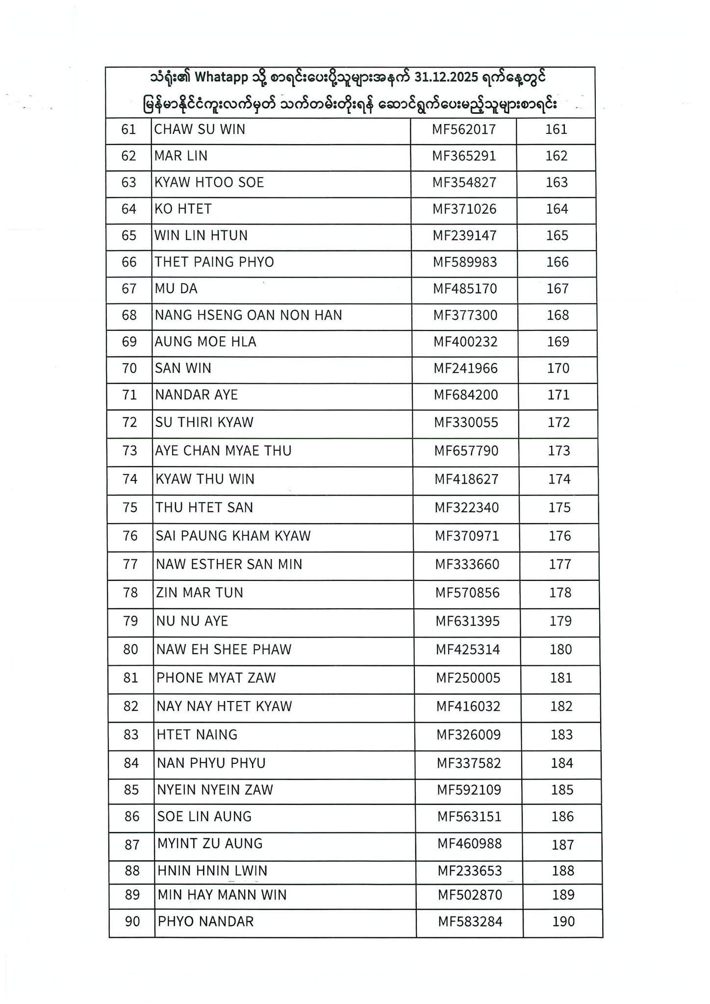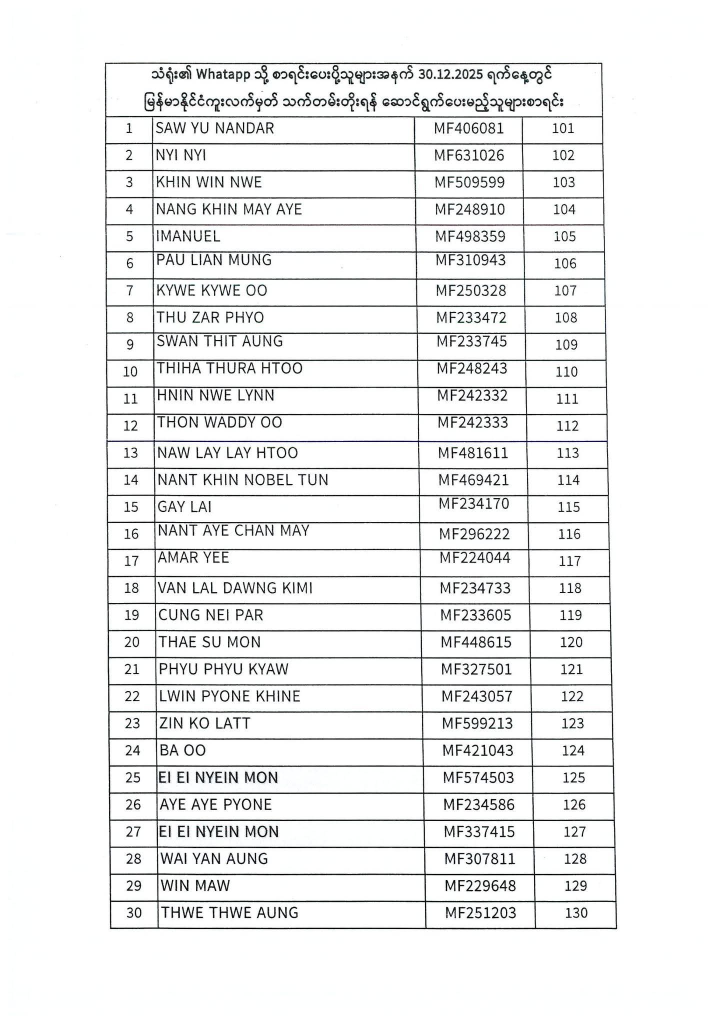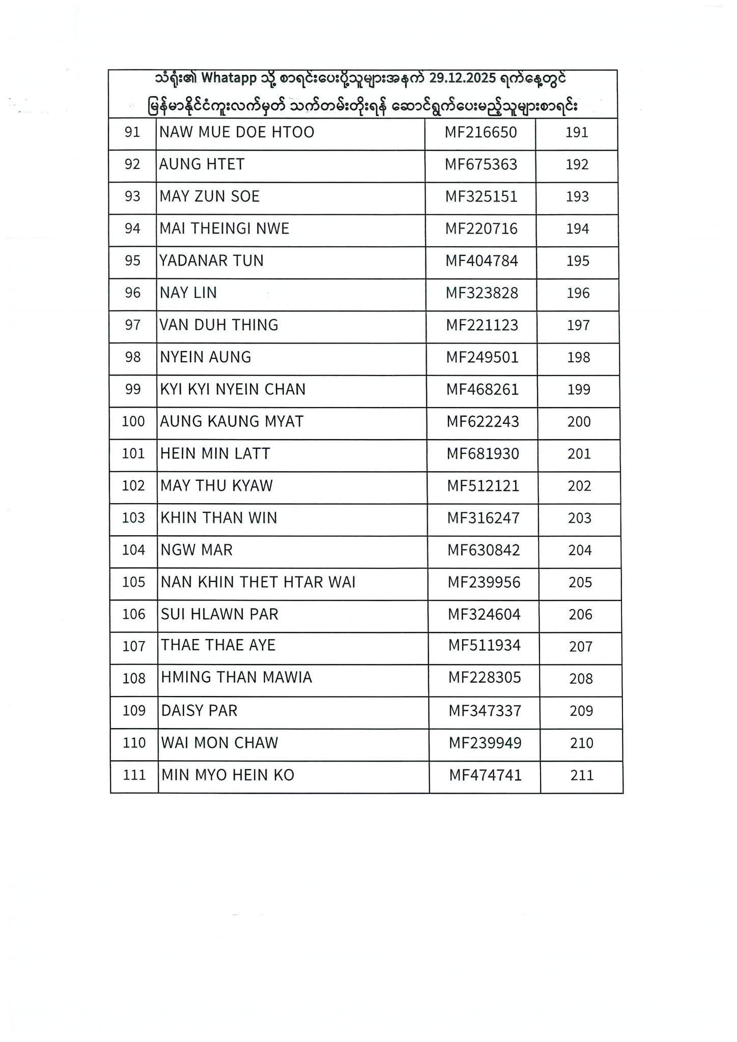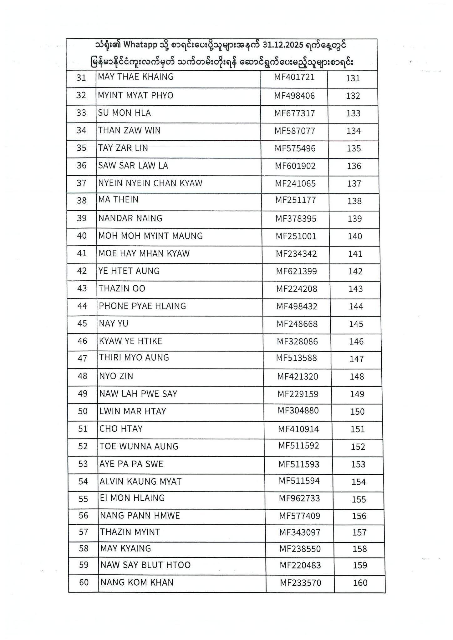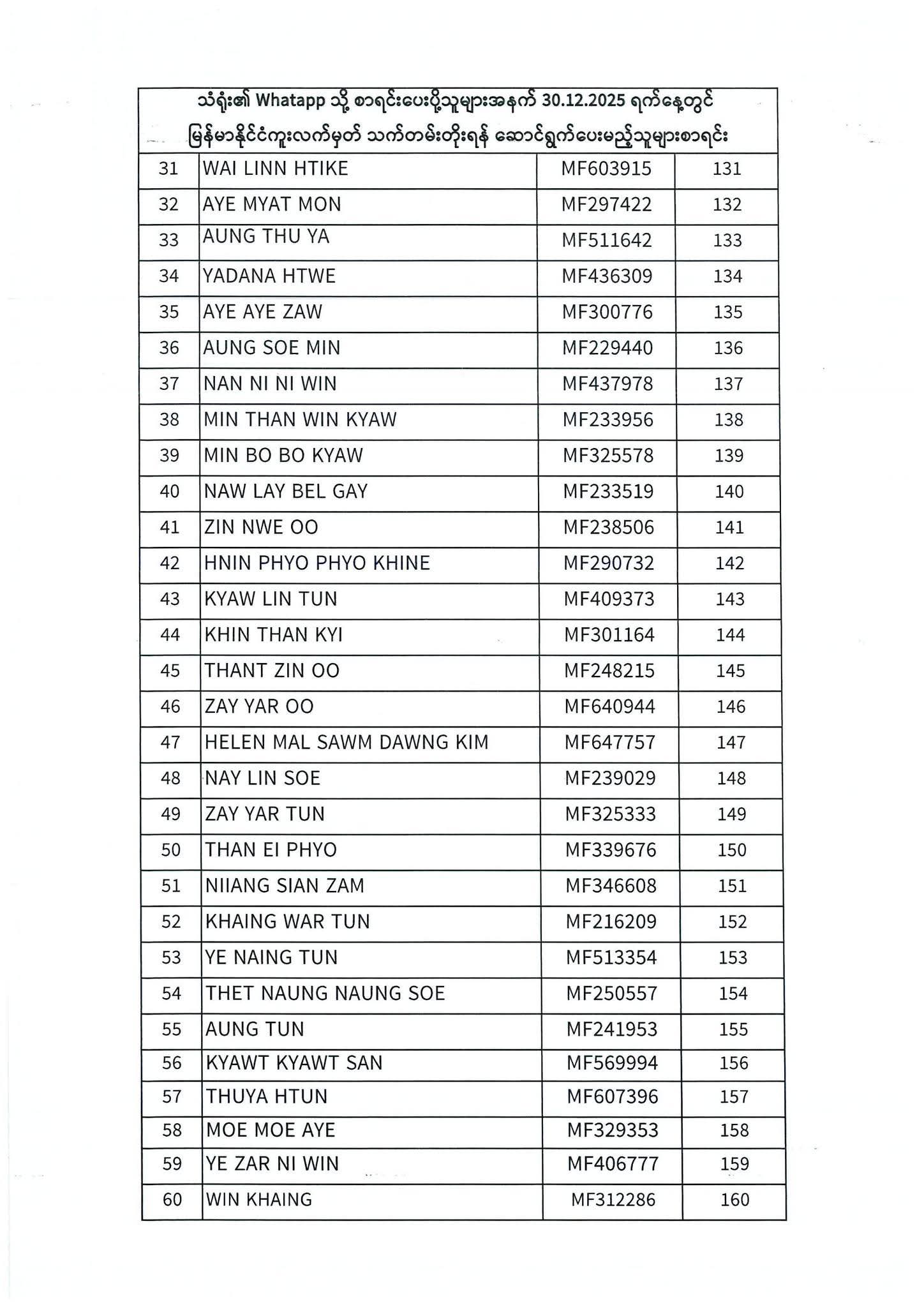 PASSPORT RENEWAL LIST 29 December To 31 December⇩