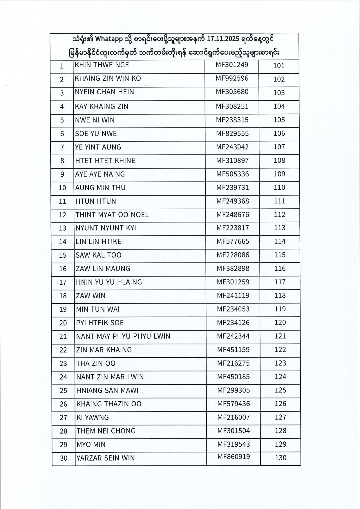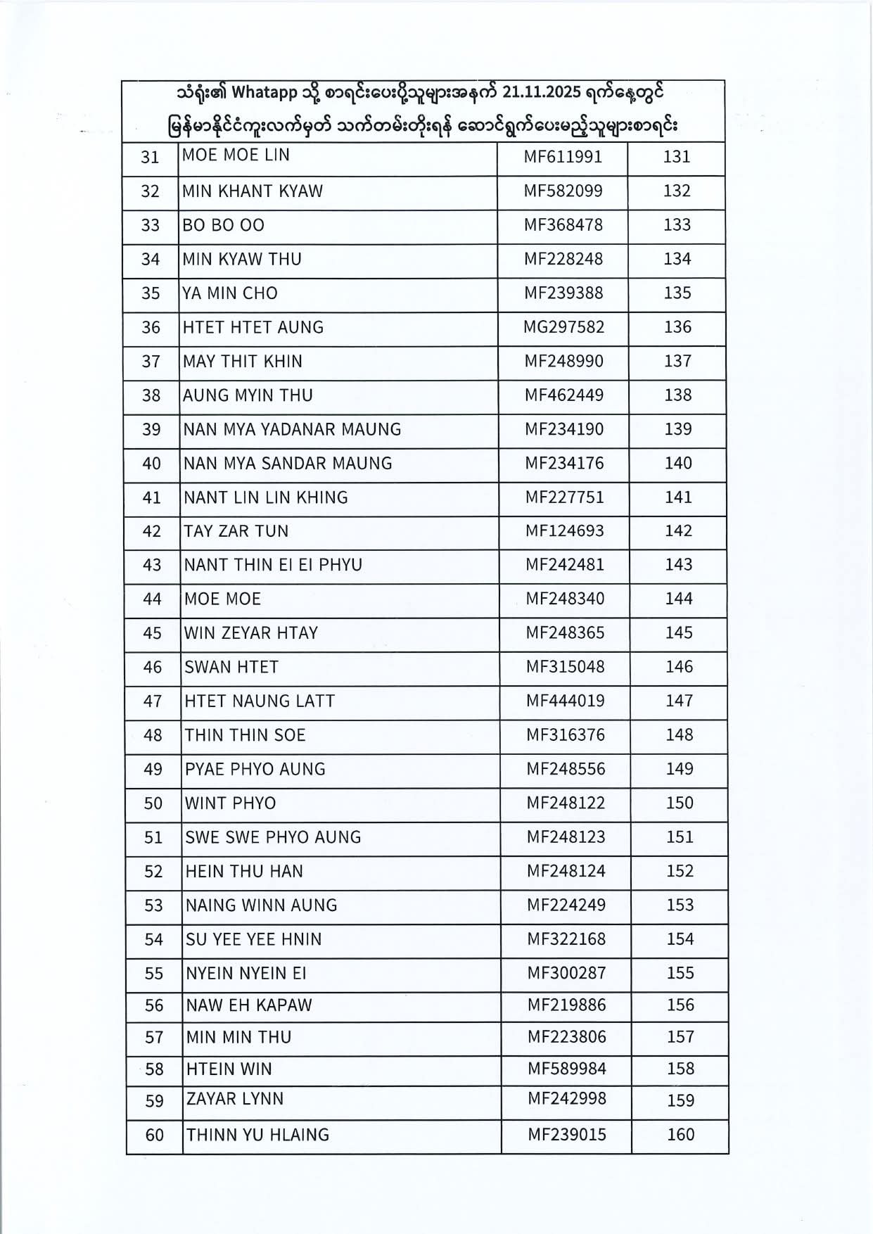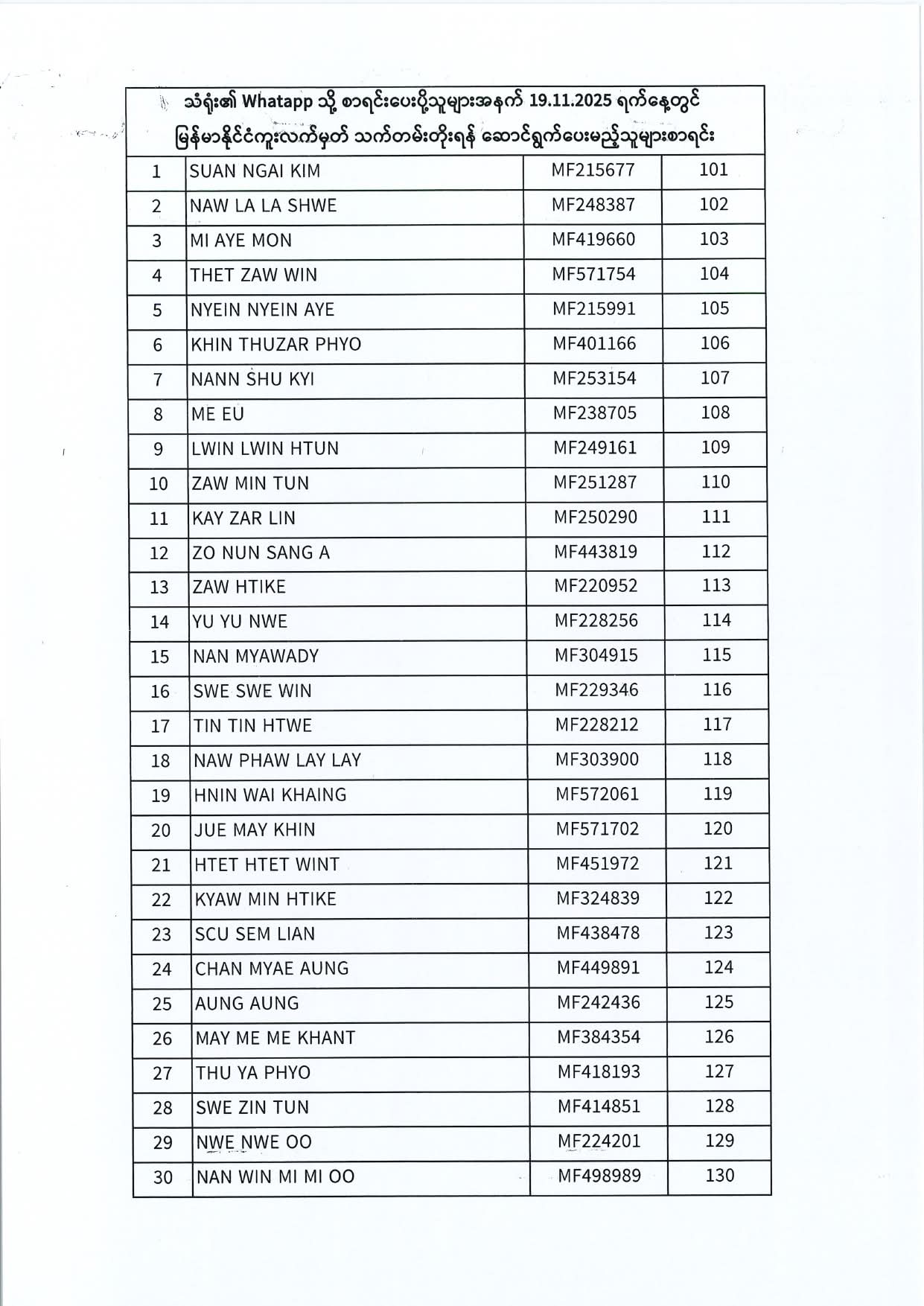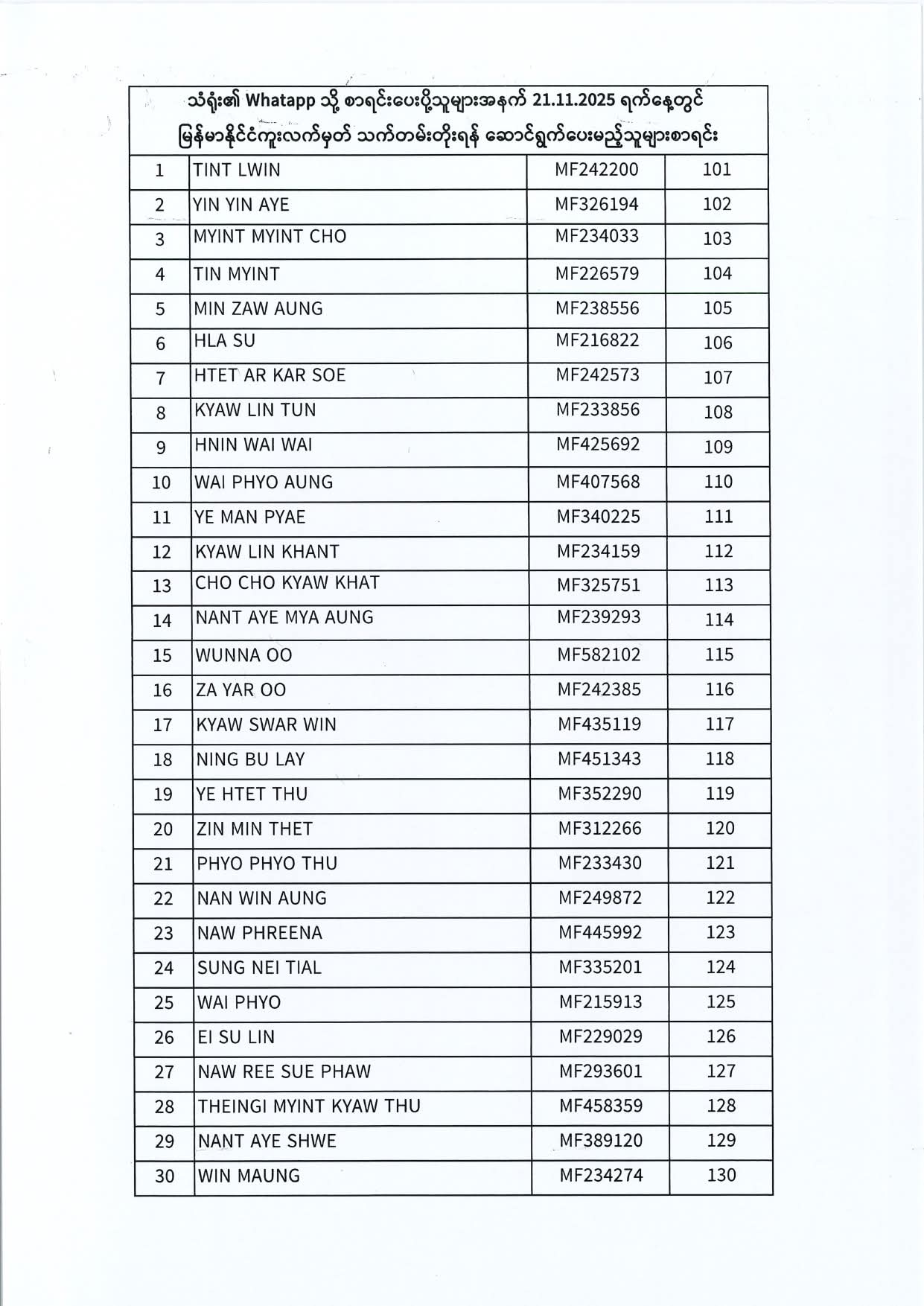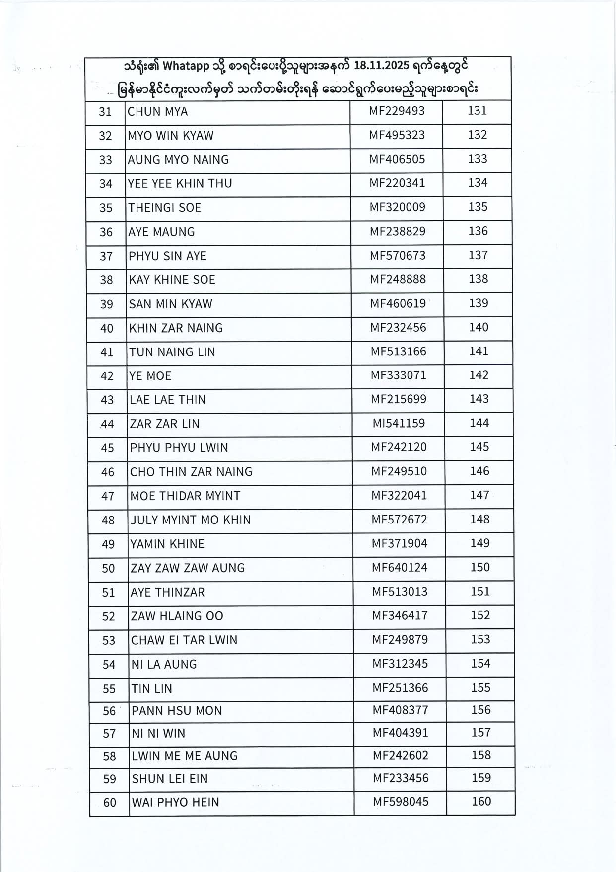 သတ်မှတ်ပေးထားသောရက်ချိန်းနေ့တွင်လာရောက်ပါရန်. မိမိပြုလုပ်ရမည့်ရက်ချိန်းနေ့အားအောက်ပါစာရင်းတွင်သေချာစွာကြည့်ပါ။