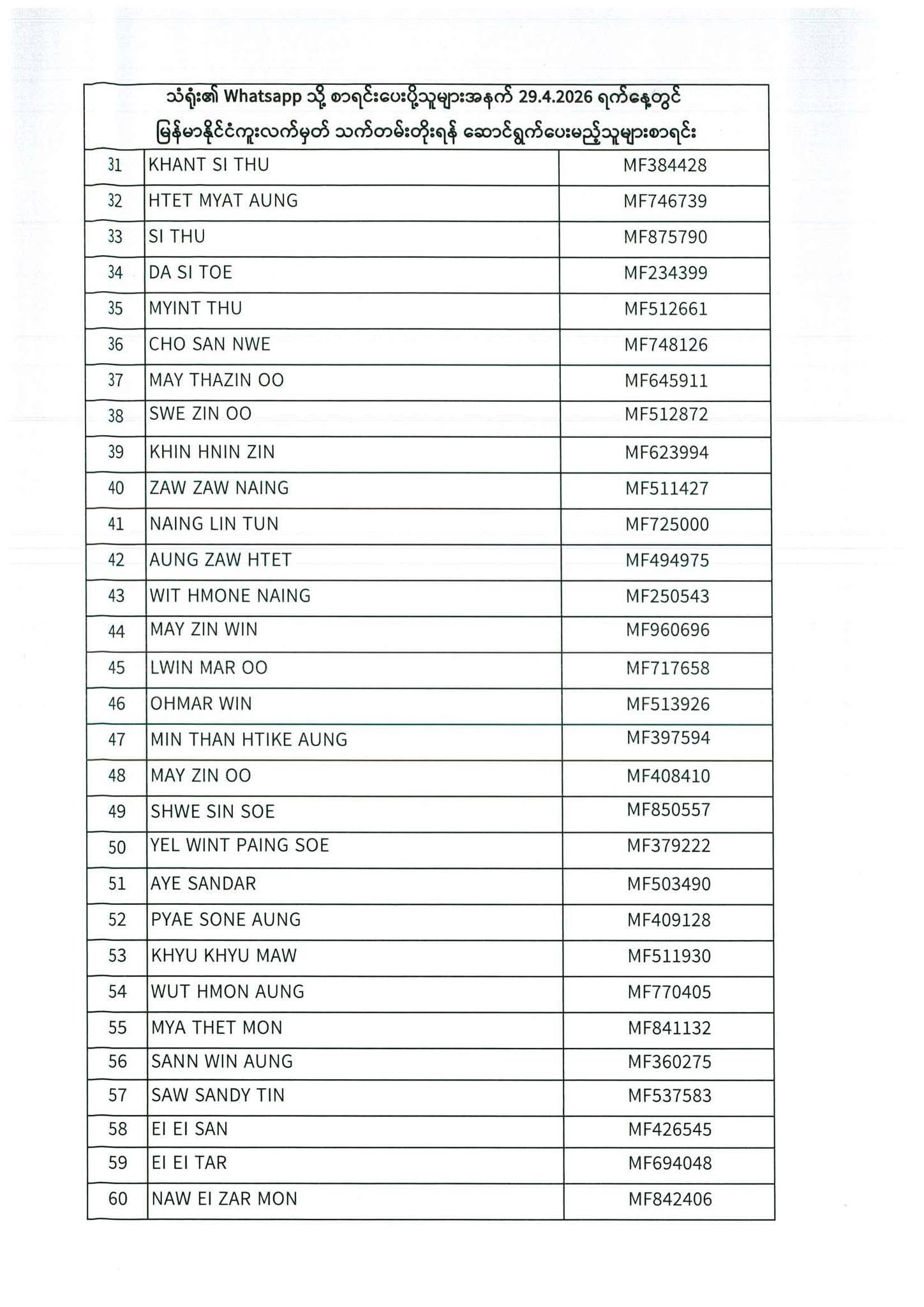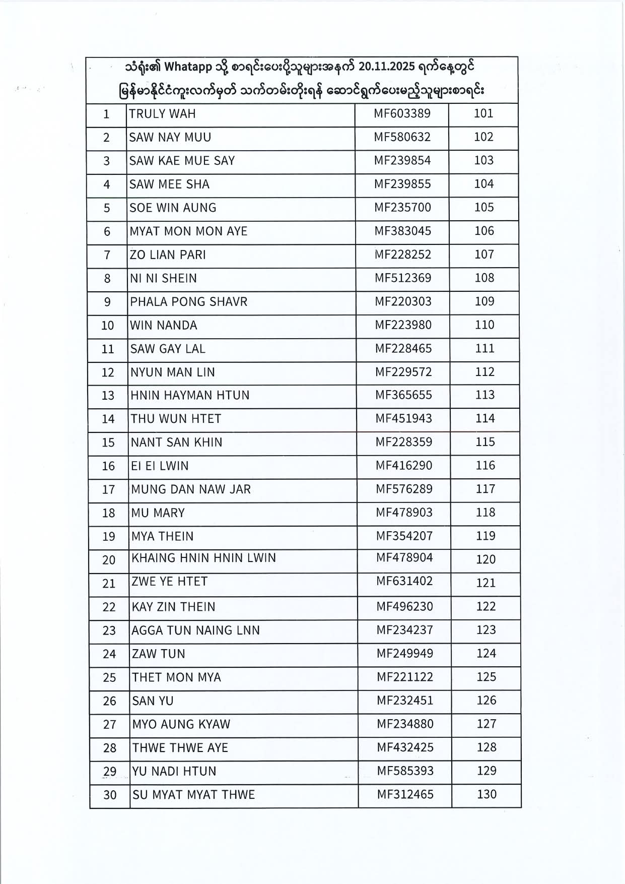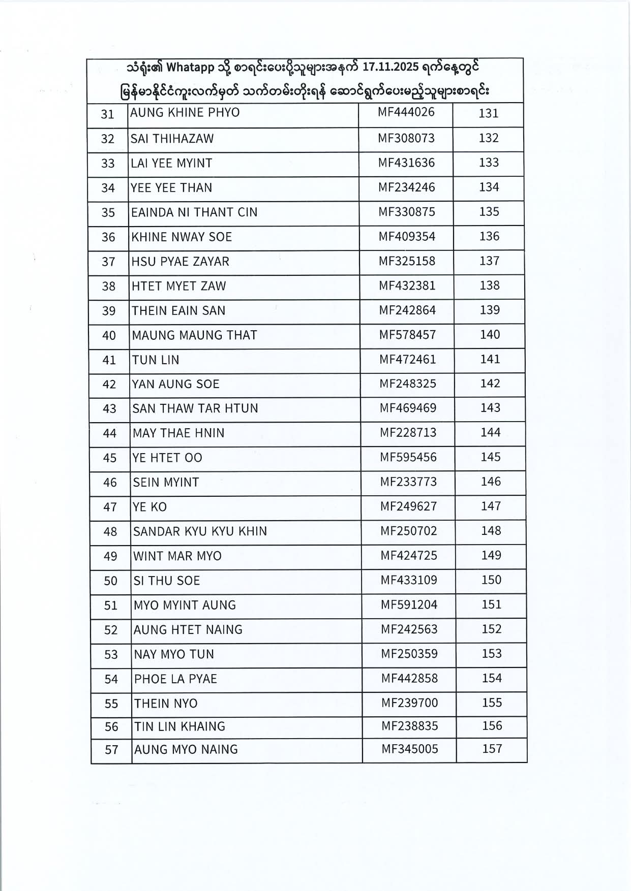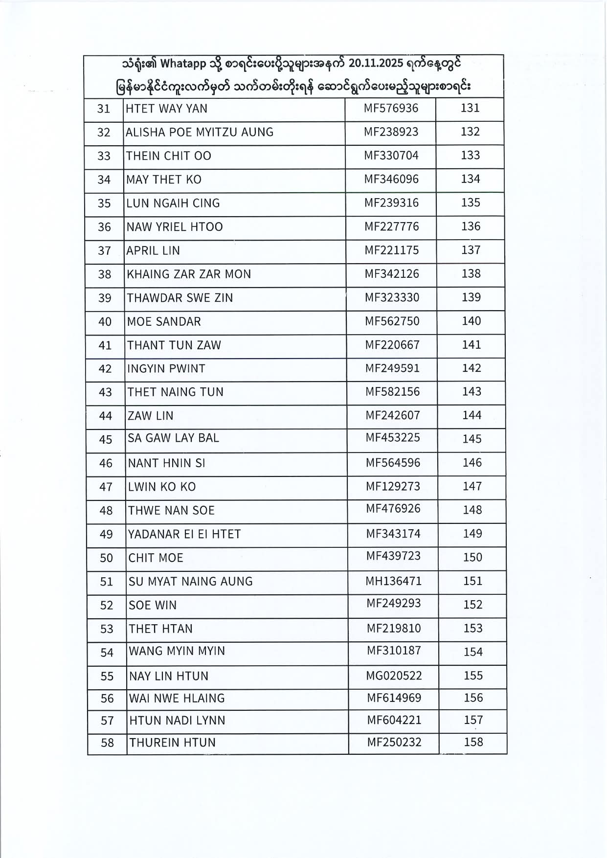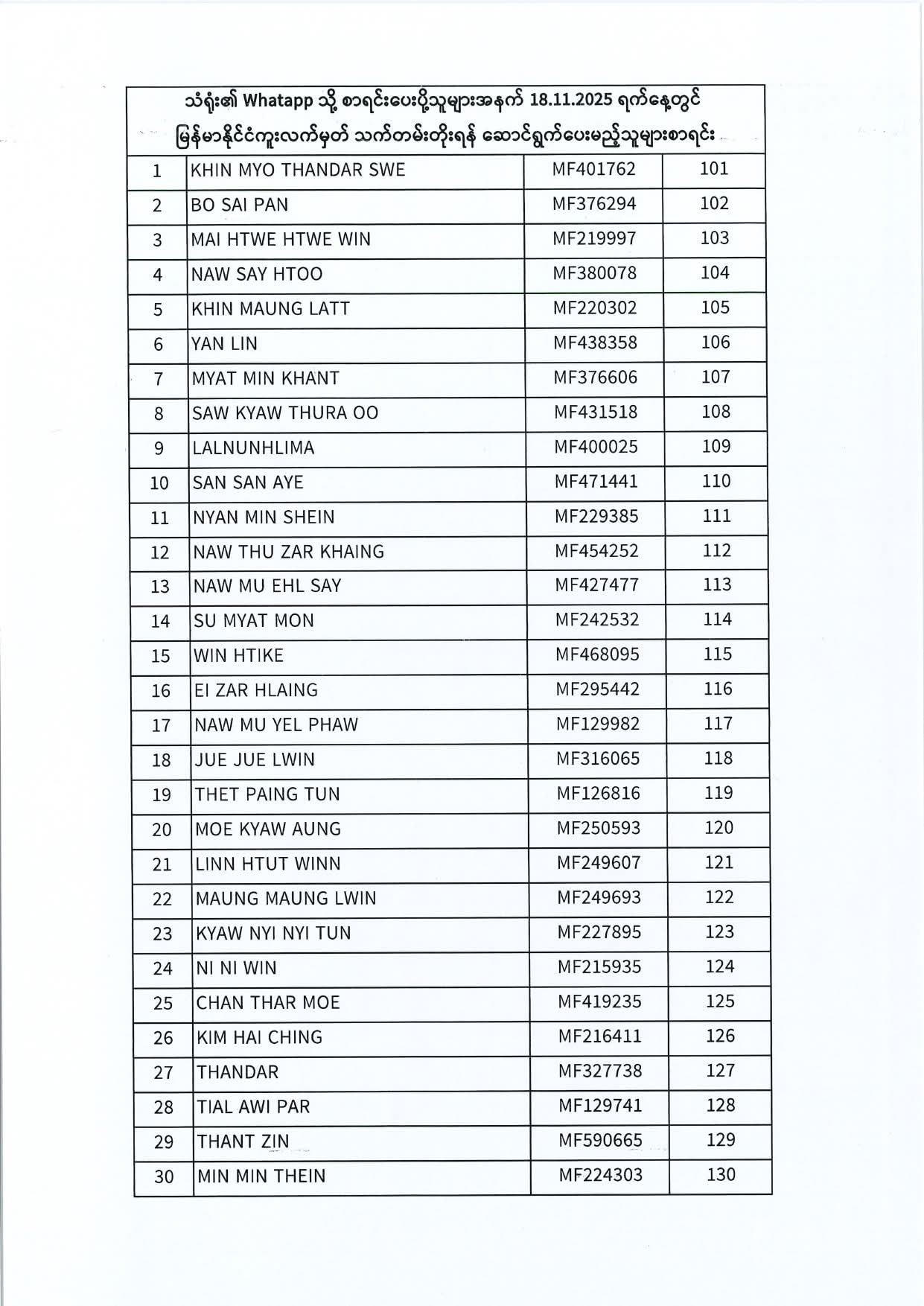 သတ်မှတ်ပေးထားသောရက်ချိန်းနေ့တွင်လာရောက်ပါရန်. မိမိပြုလုပ်ရမည့်ရက်ချိန်းနေ့အားအောက်ပါစာရင်းတွင်သေချာစွာကြည့်ပါ။