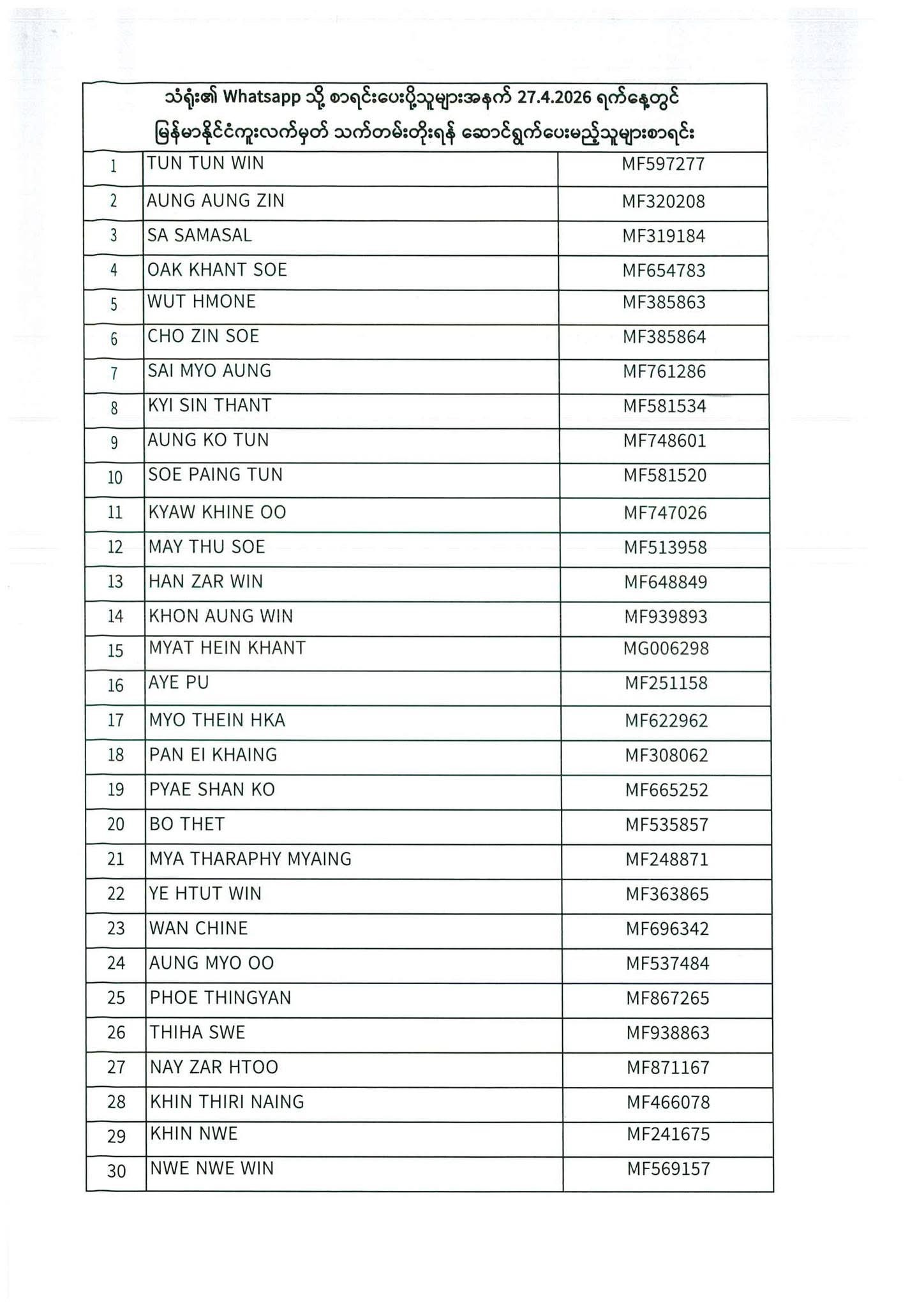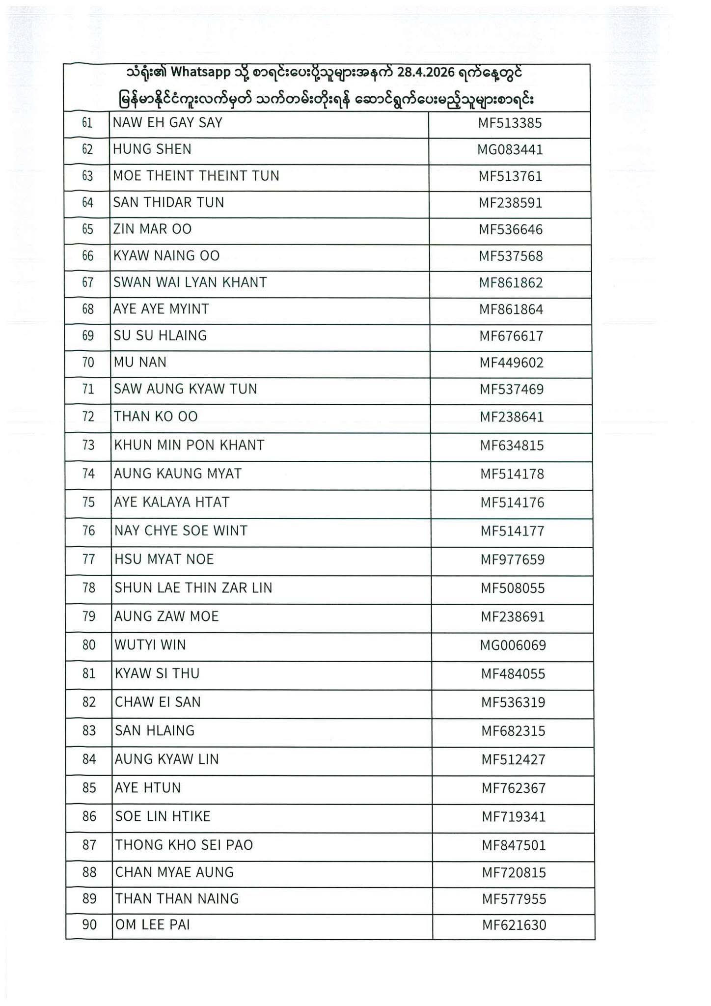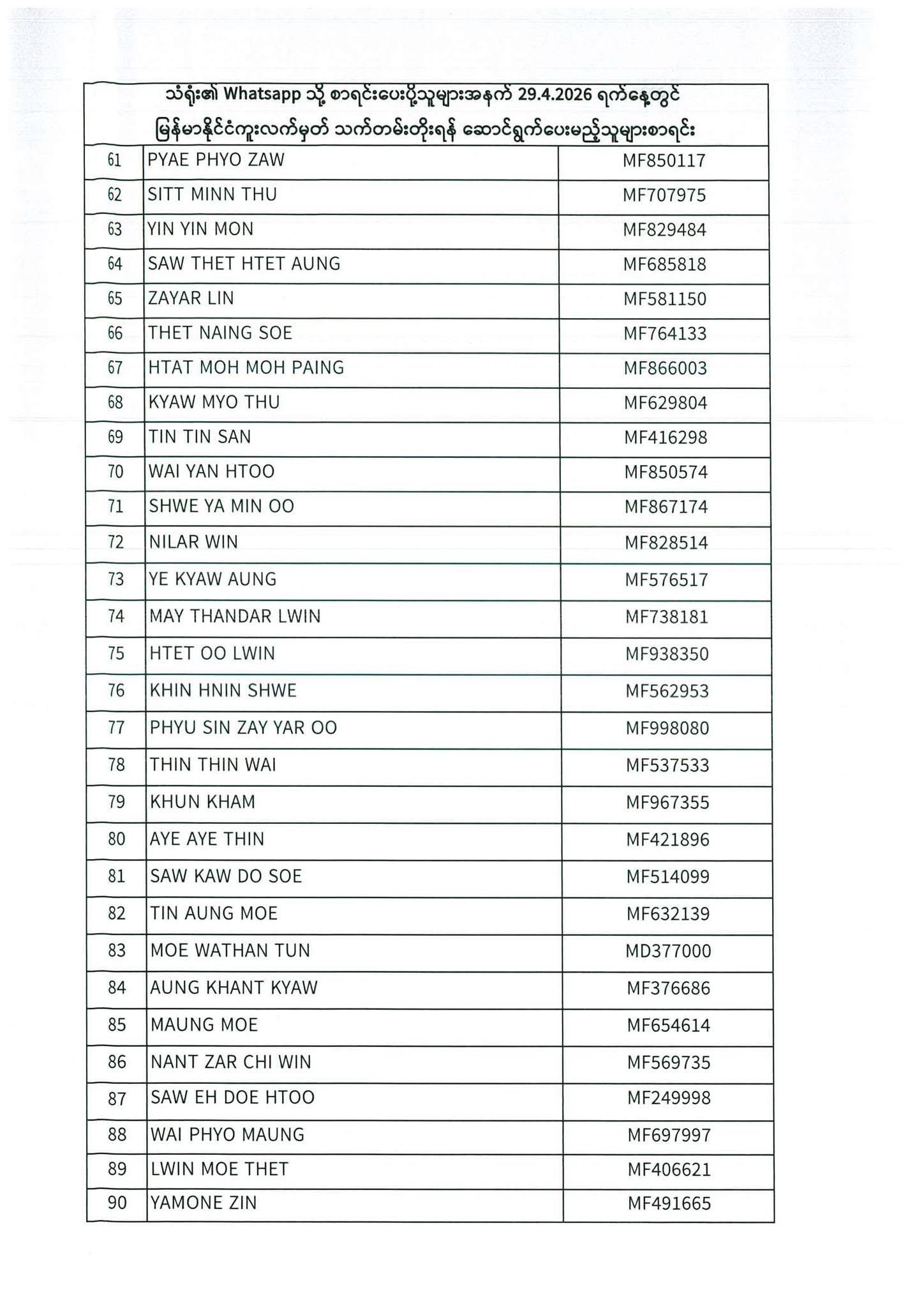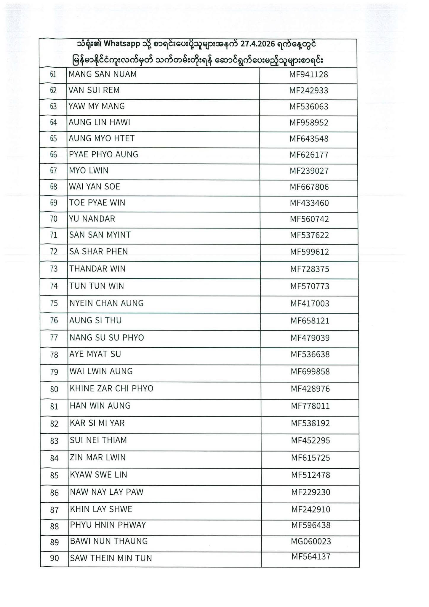 PASSPORT RENEWAL LIST 27th April to 29th April