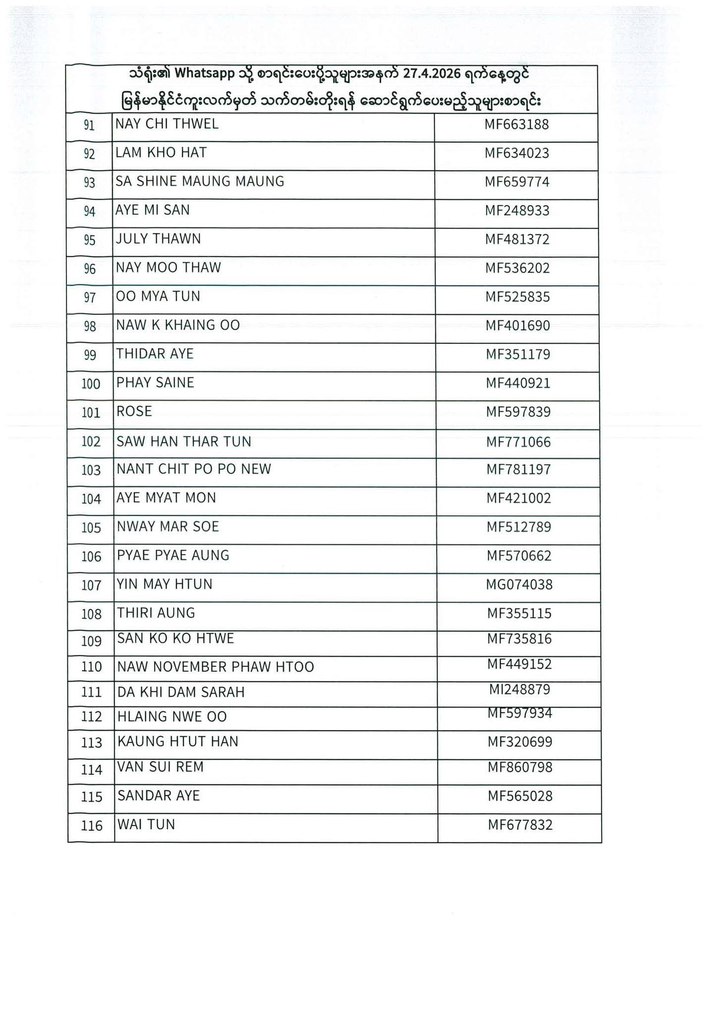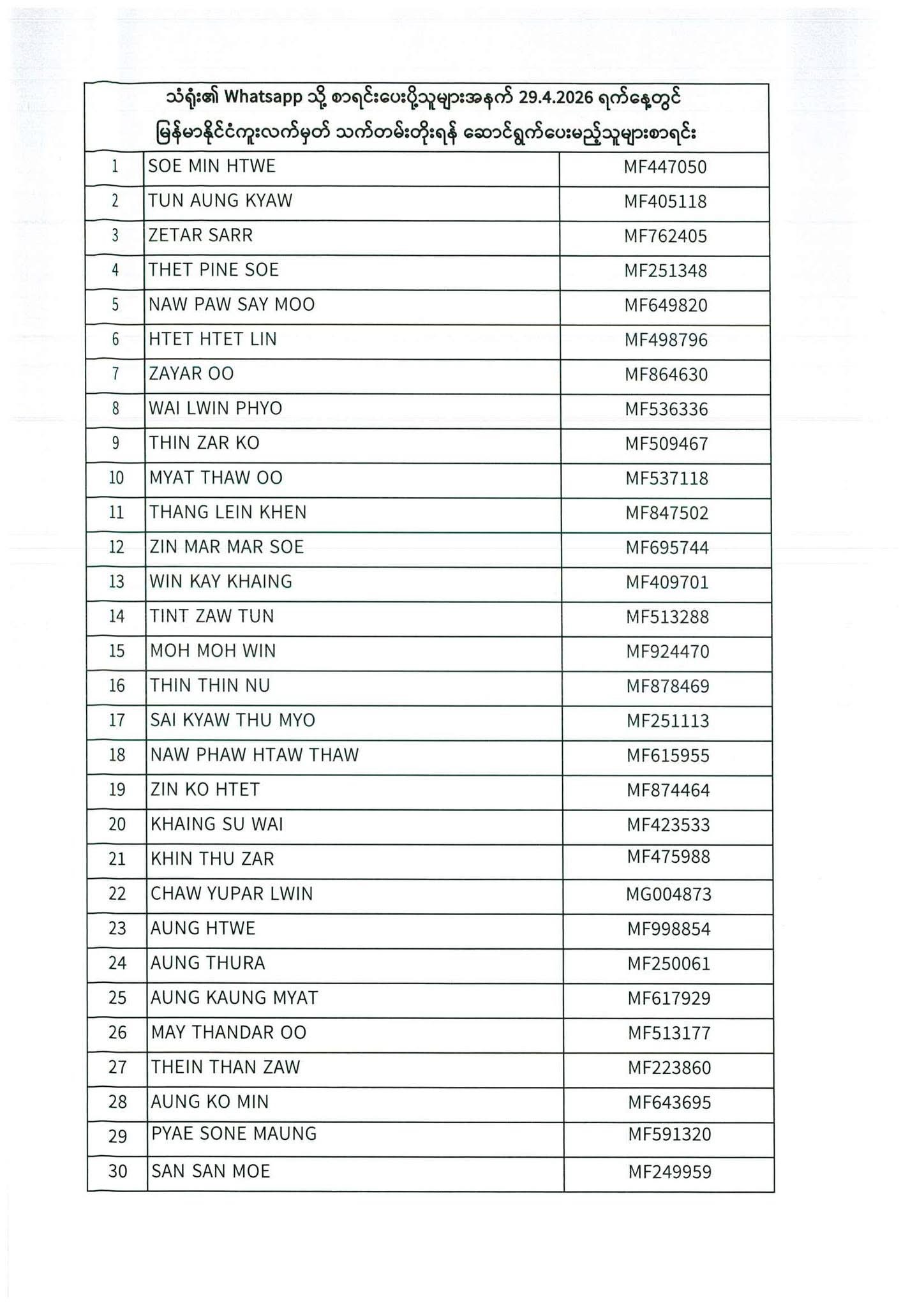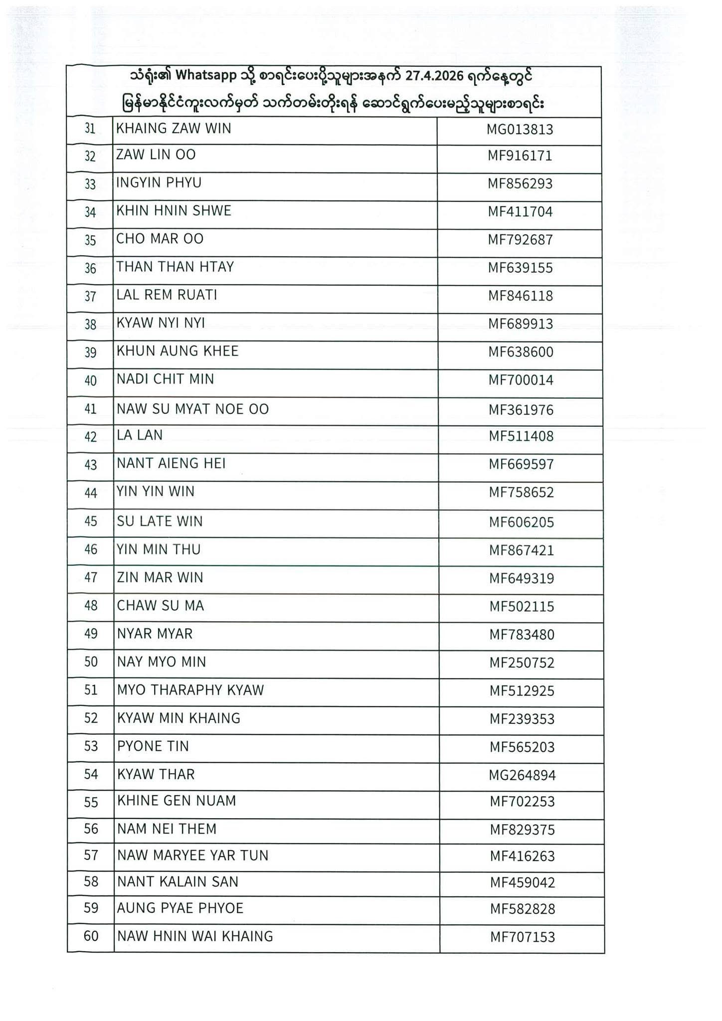 PASSPORT RENEWAL LIST 27th April to 29th April