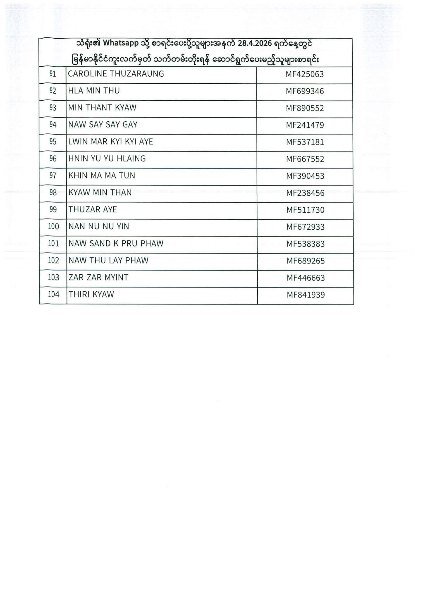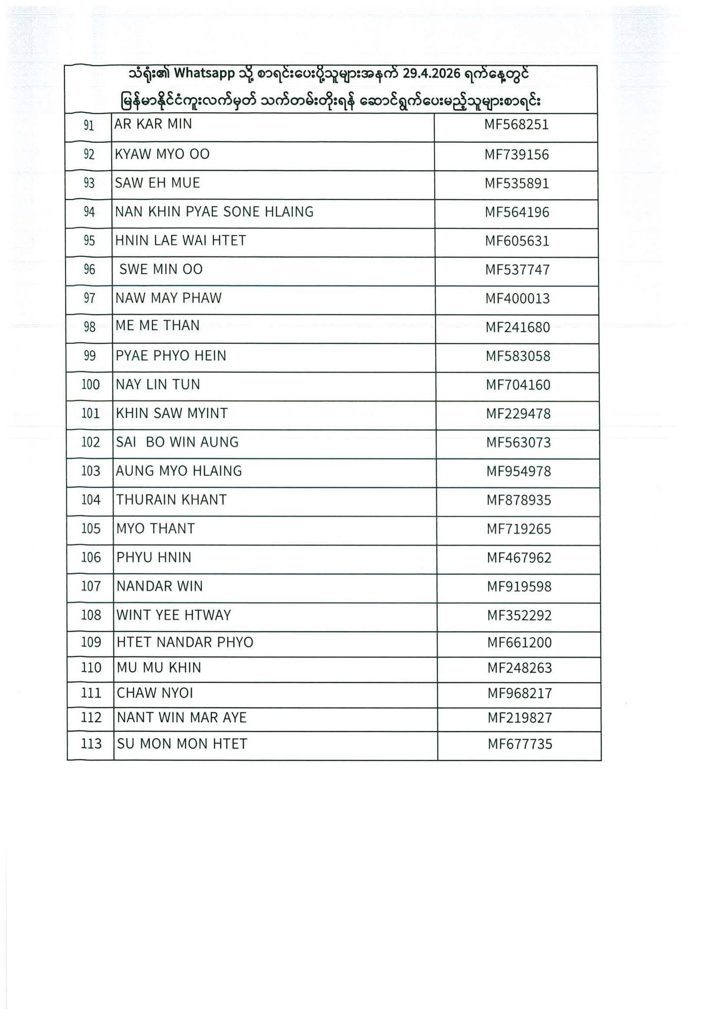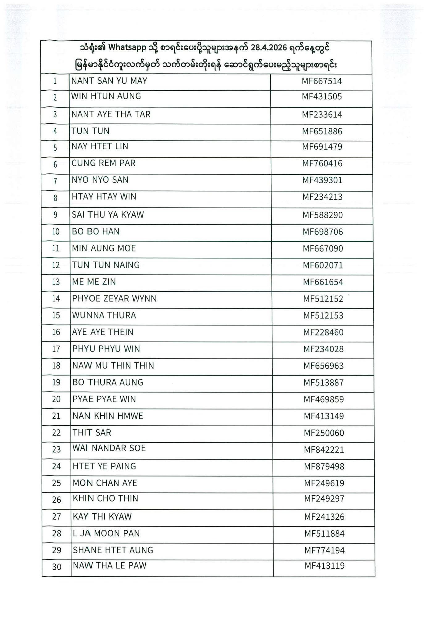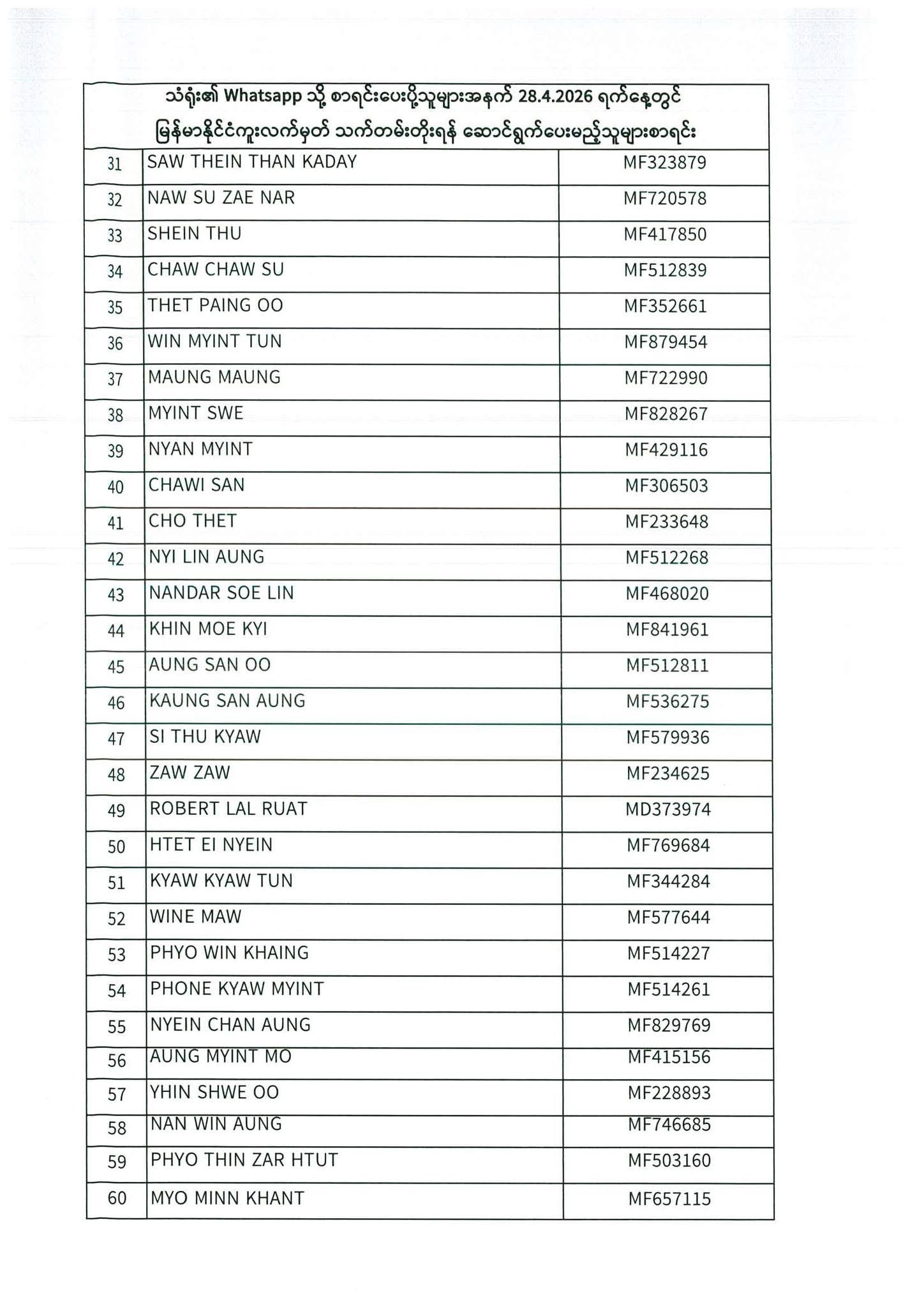 PASSPORT RENEWAL LIST 27th April to 29th April