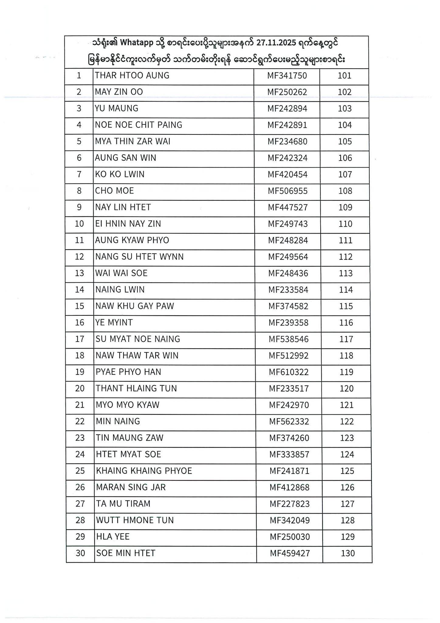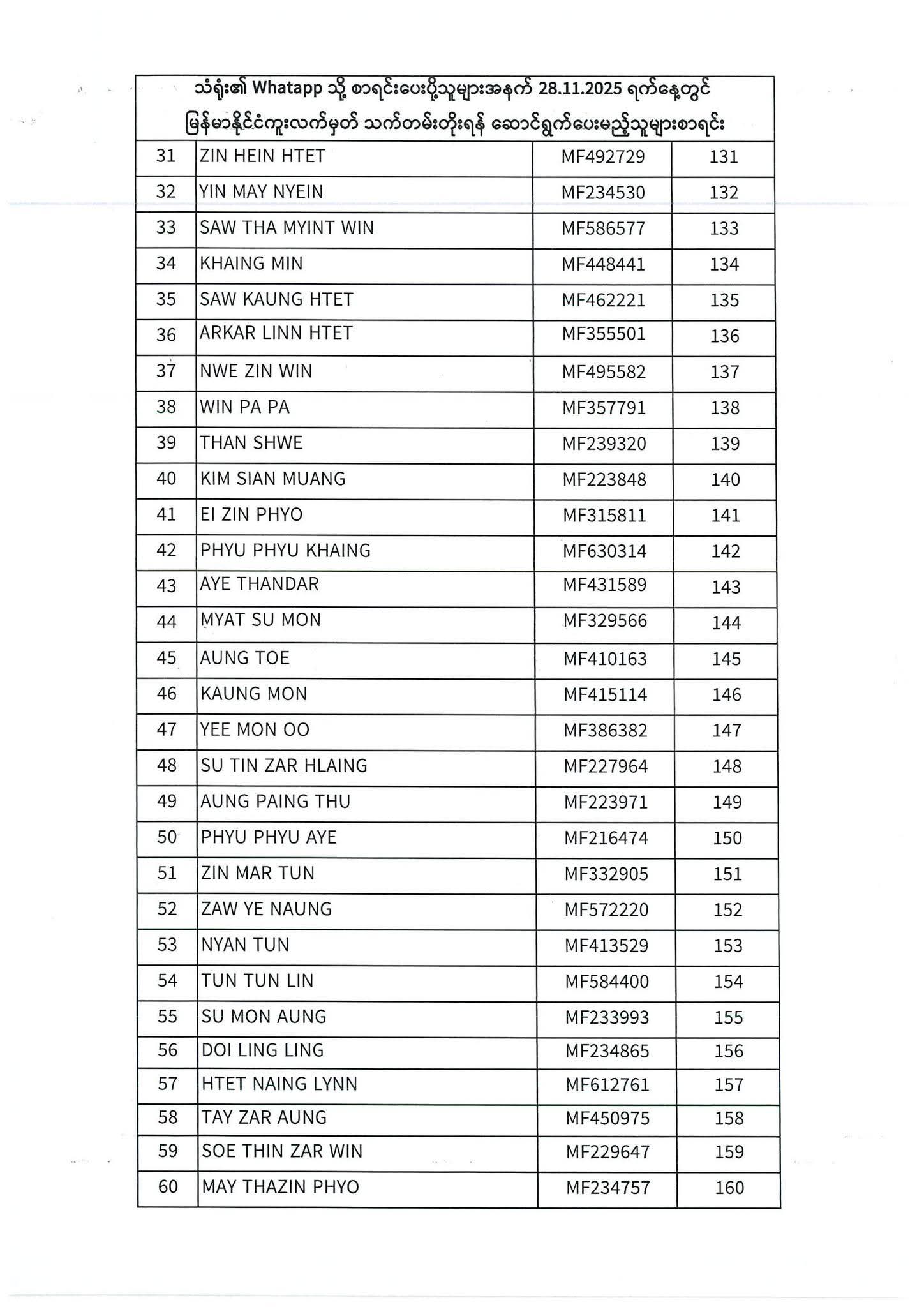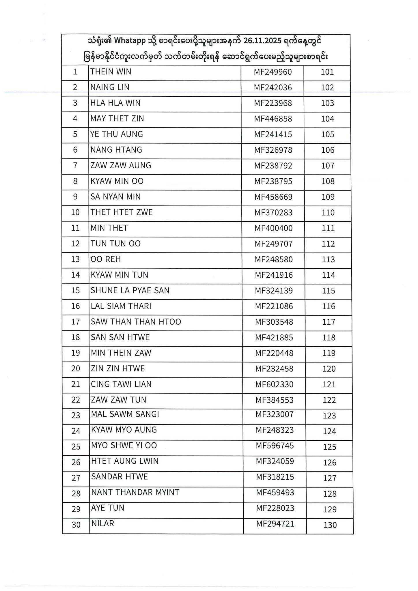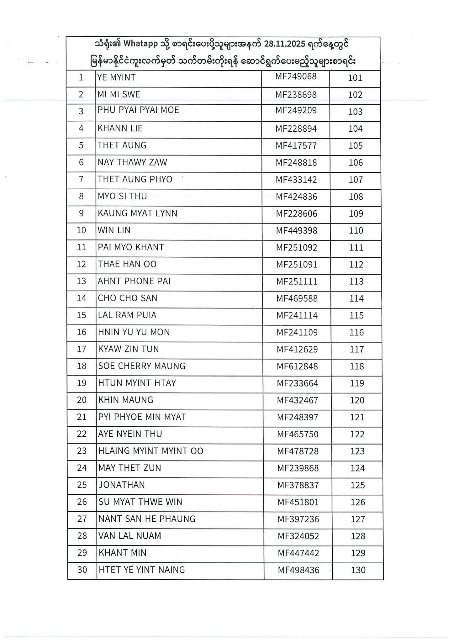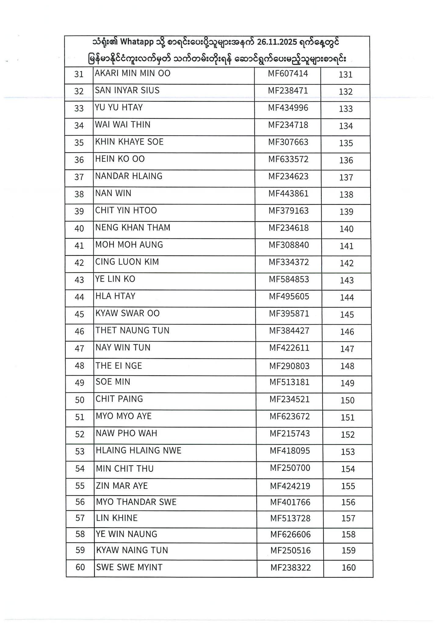 သတ်မှတ်ပေးထားသောရက်ချိန်းနေ့တွင်လာရောက်ပါရန်. မိမိပြုလုပ်ရမည့်ရက်ချိန်းနေ့အားအောက်ပါစာရင်းတွင်သေချာစွာကြည့်ပါ။