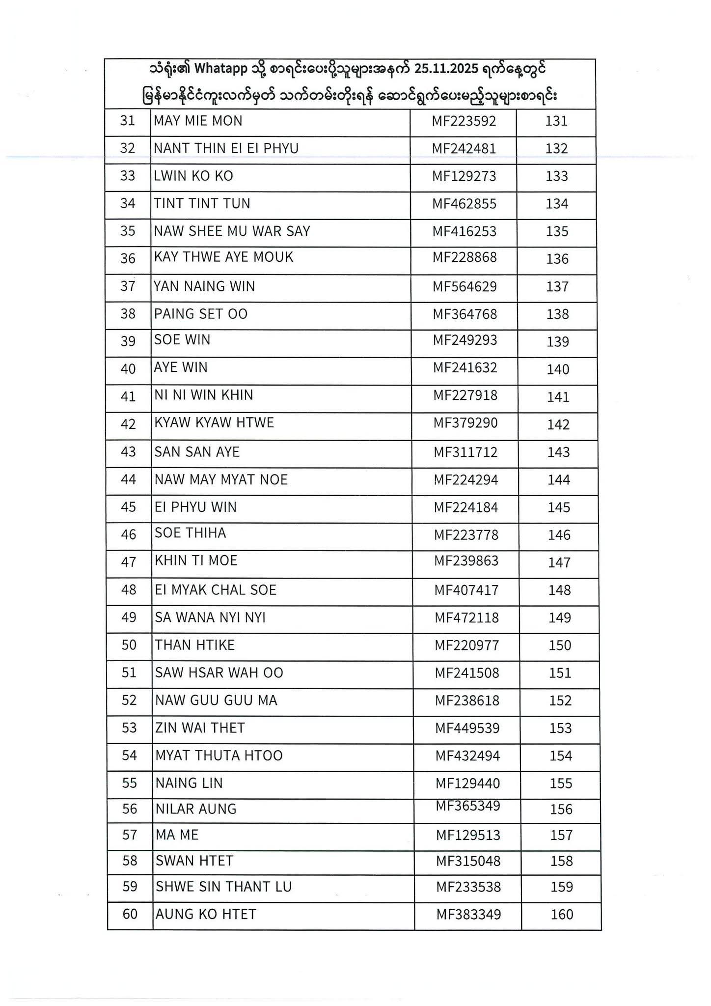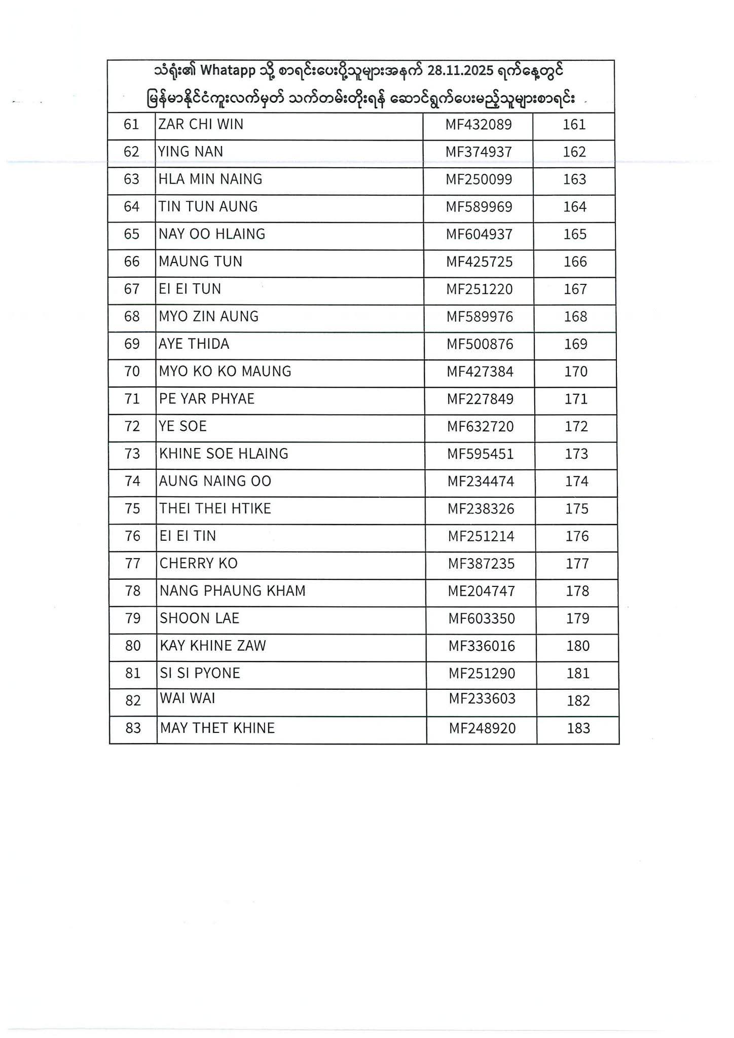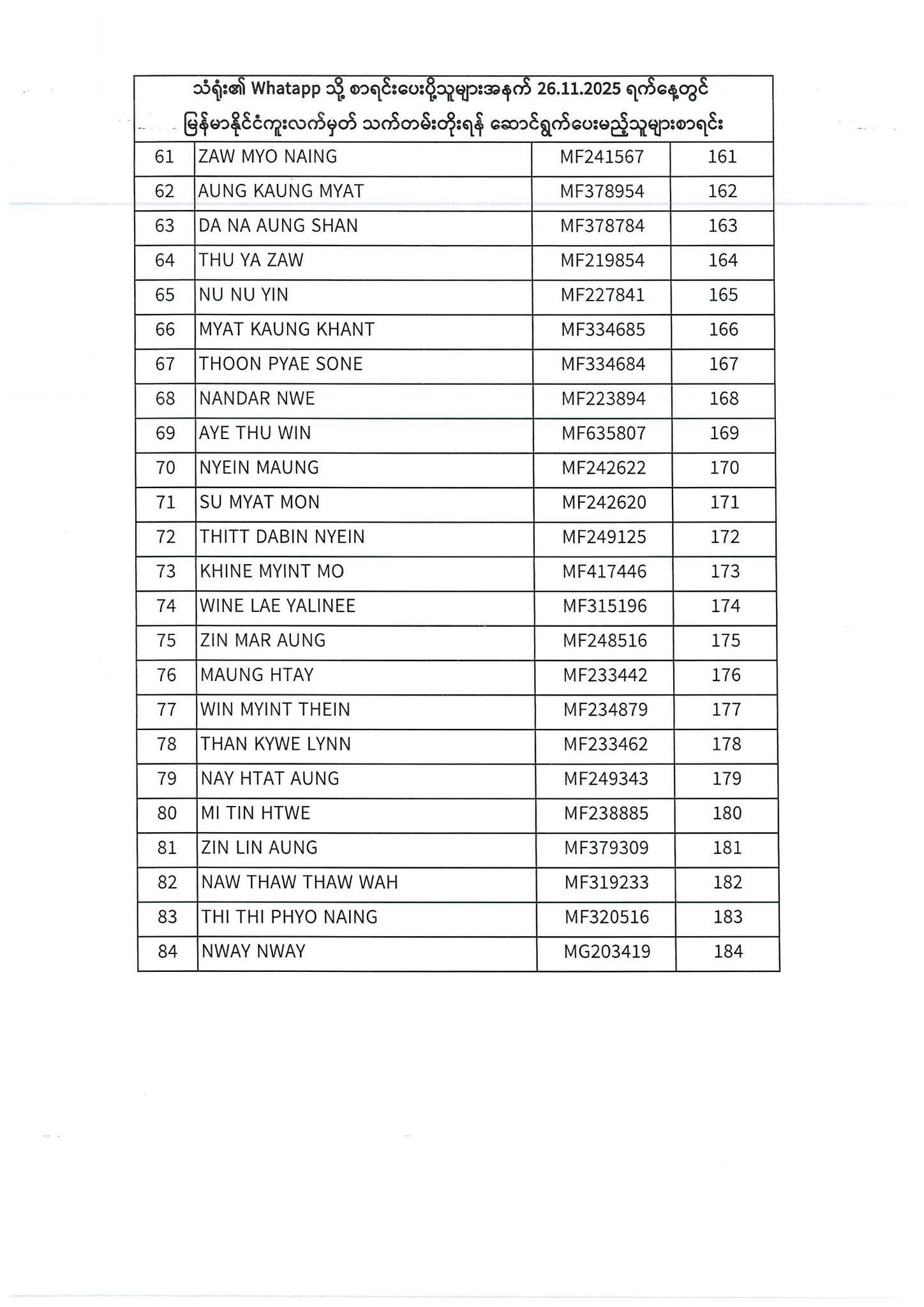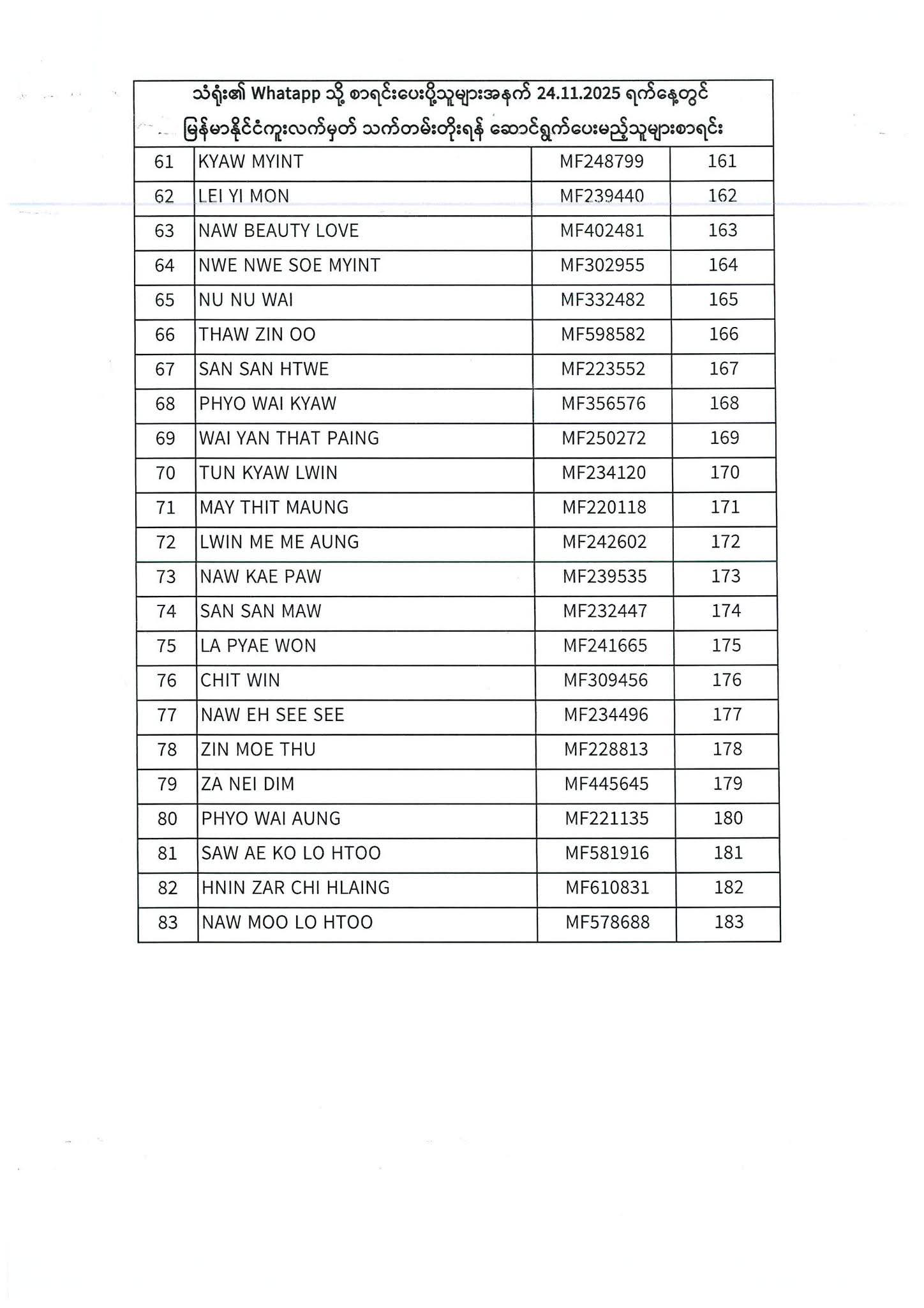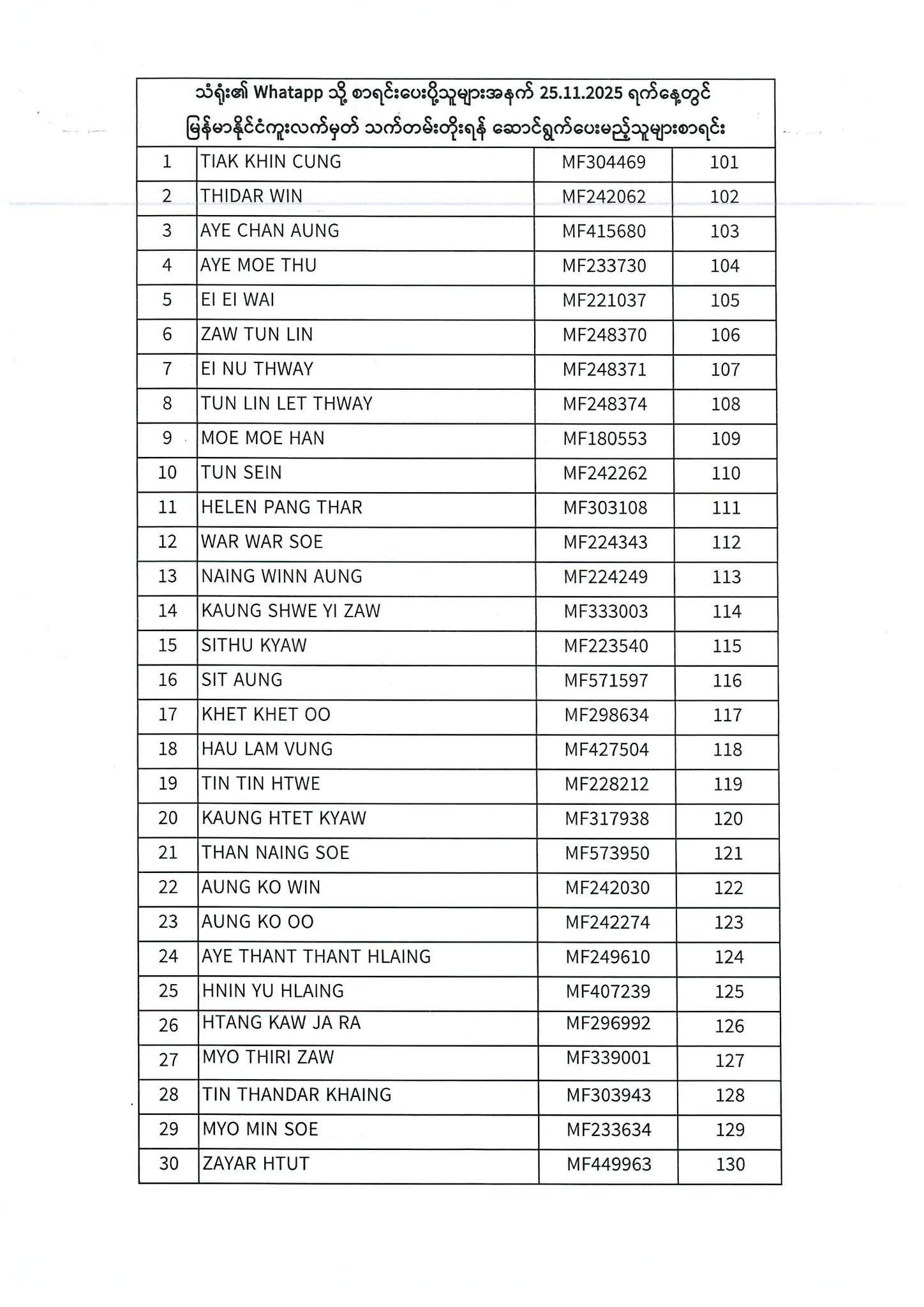 သတ်မှတ်ပေးထားသောရက်ချိန်းနေ့တွင်လာရောက်ပါရန်. မိမိပြုလုပ်ရမည့်ရက်ချိန်းနေ့အားအောက်ပါစာရင်းတွင်သေချာစွာကြည့်ပါ။