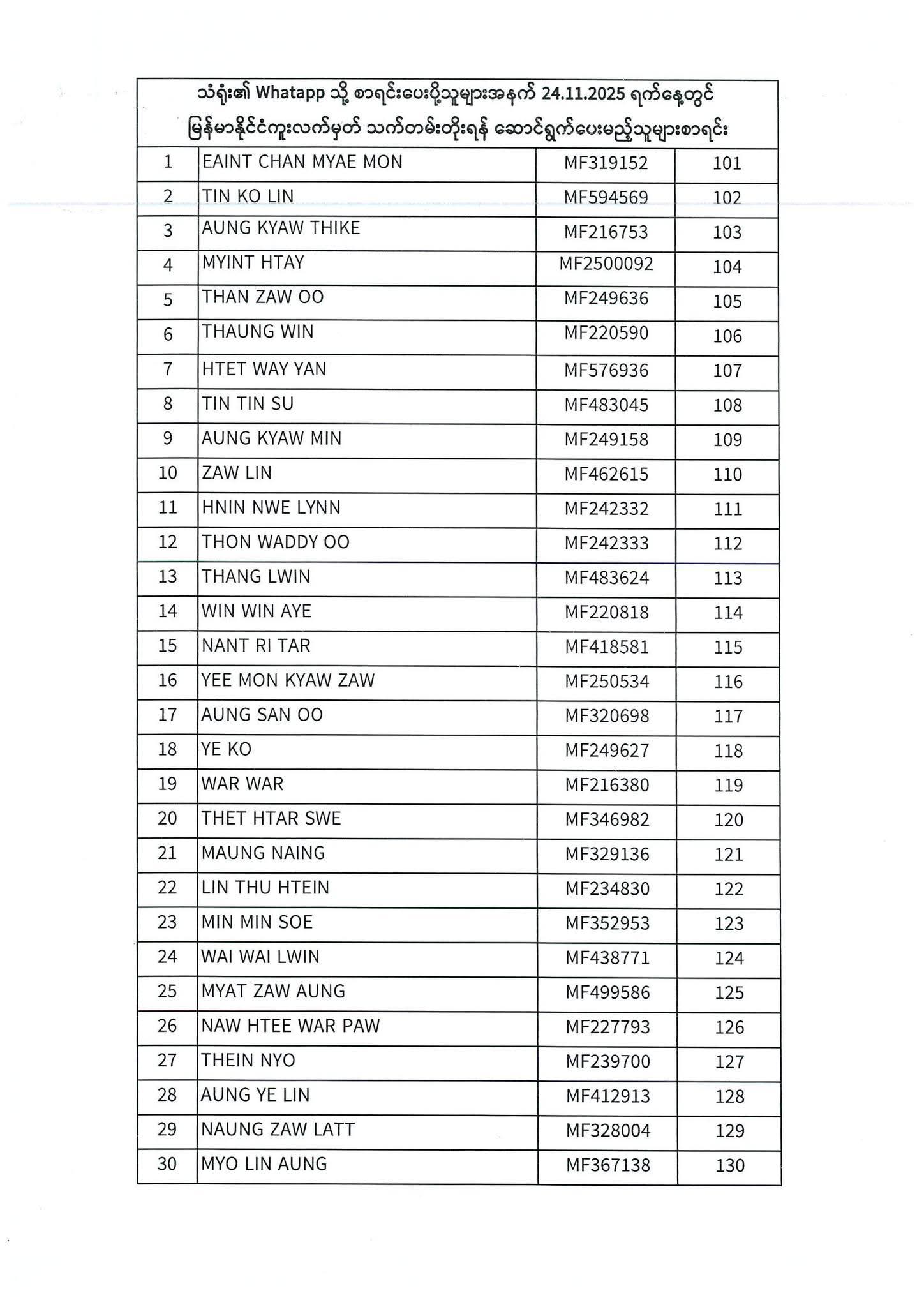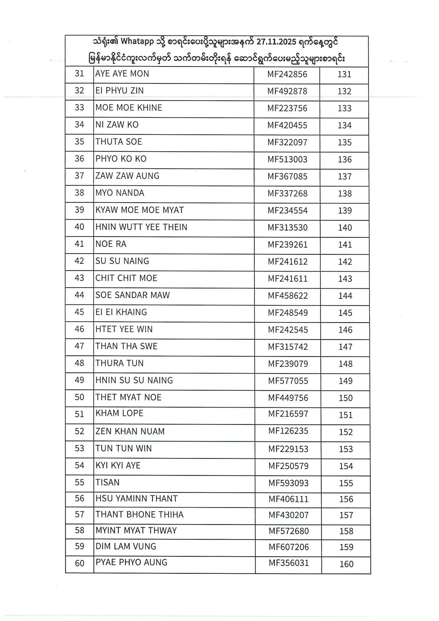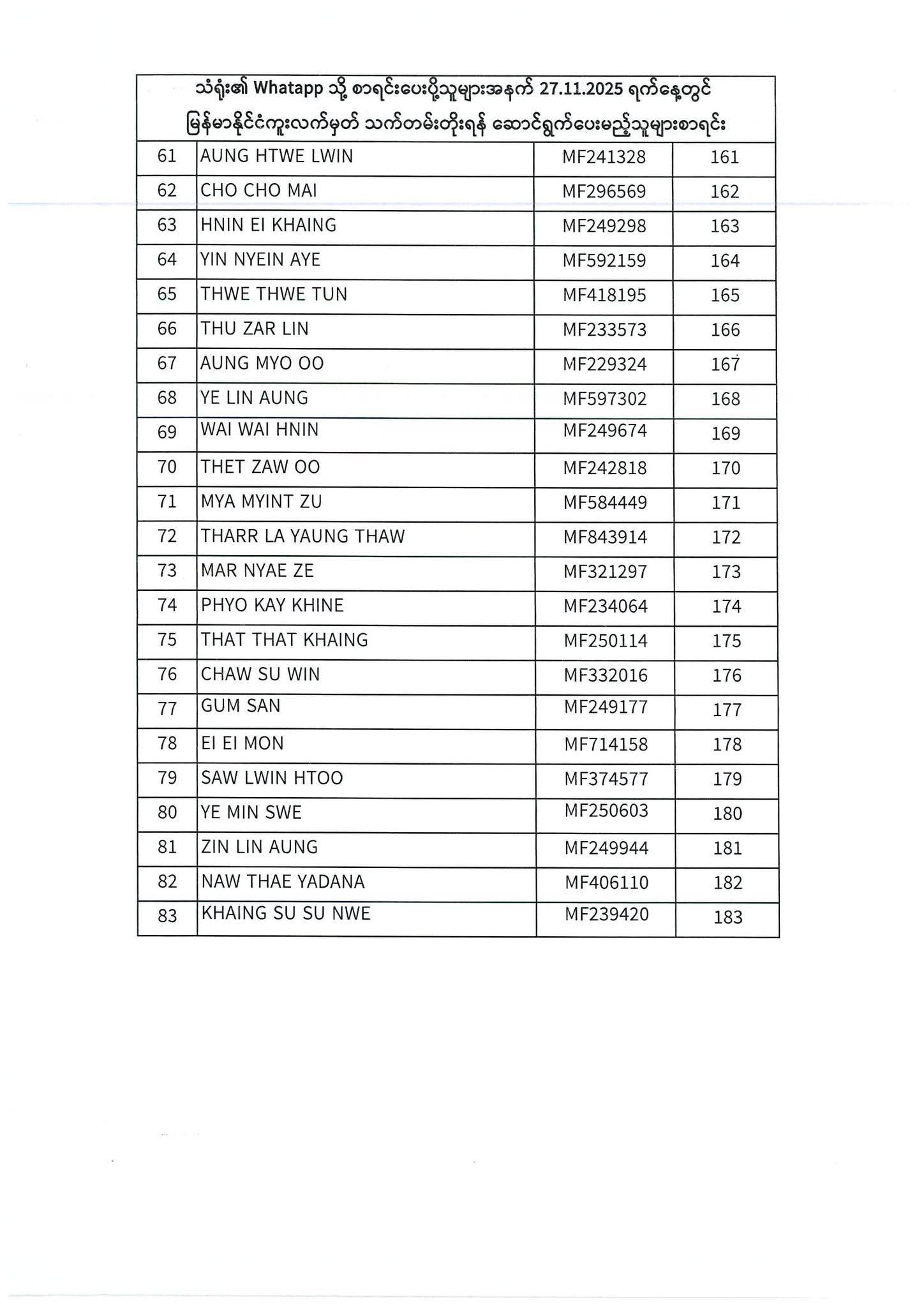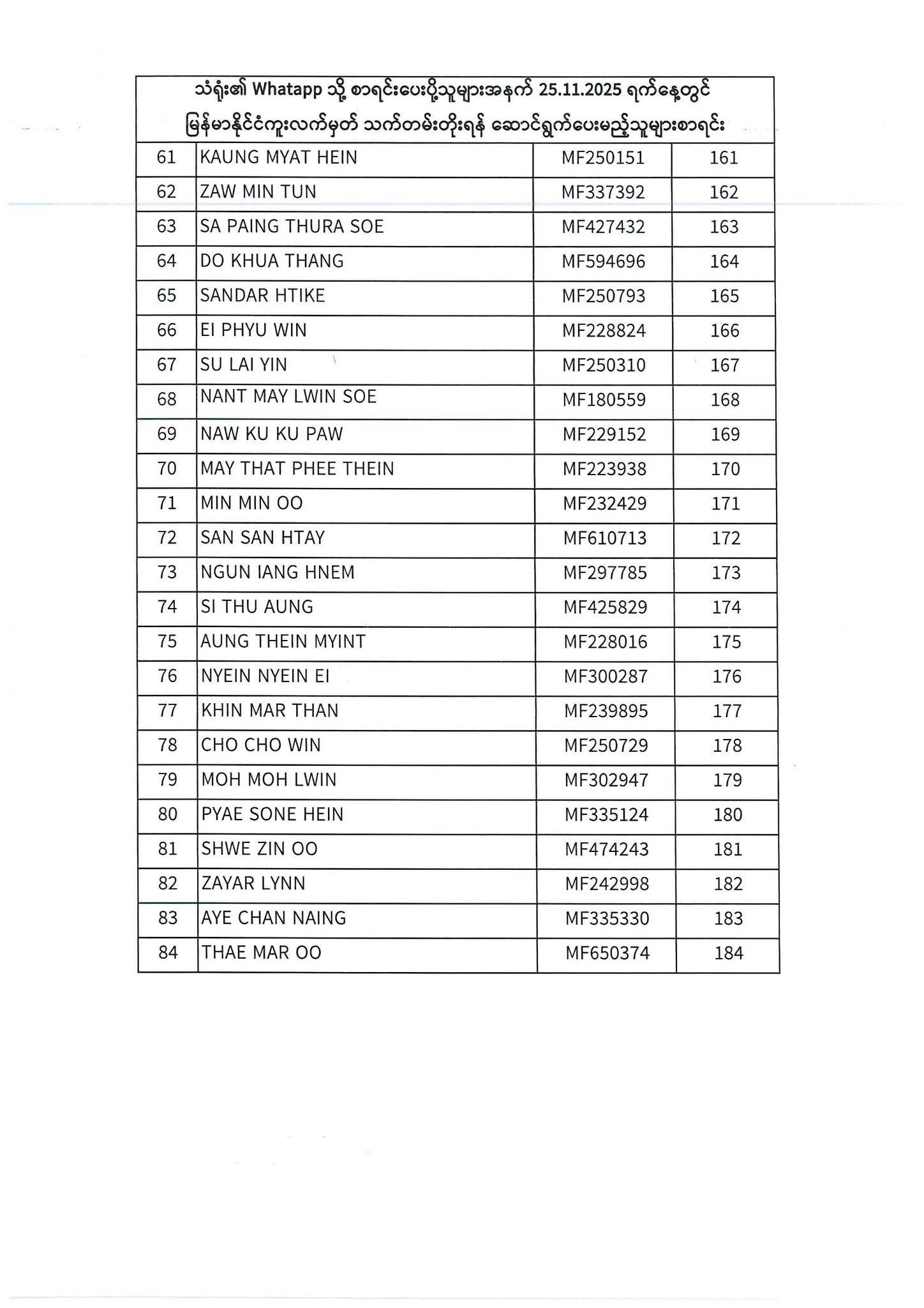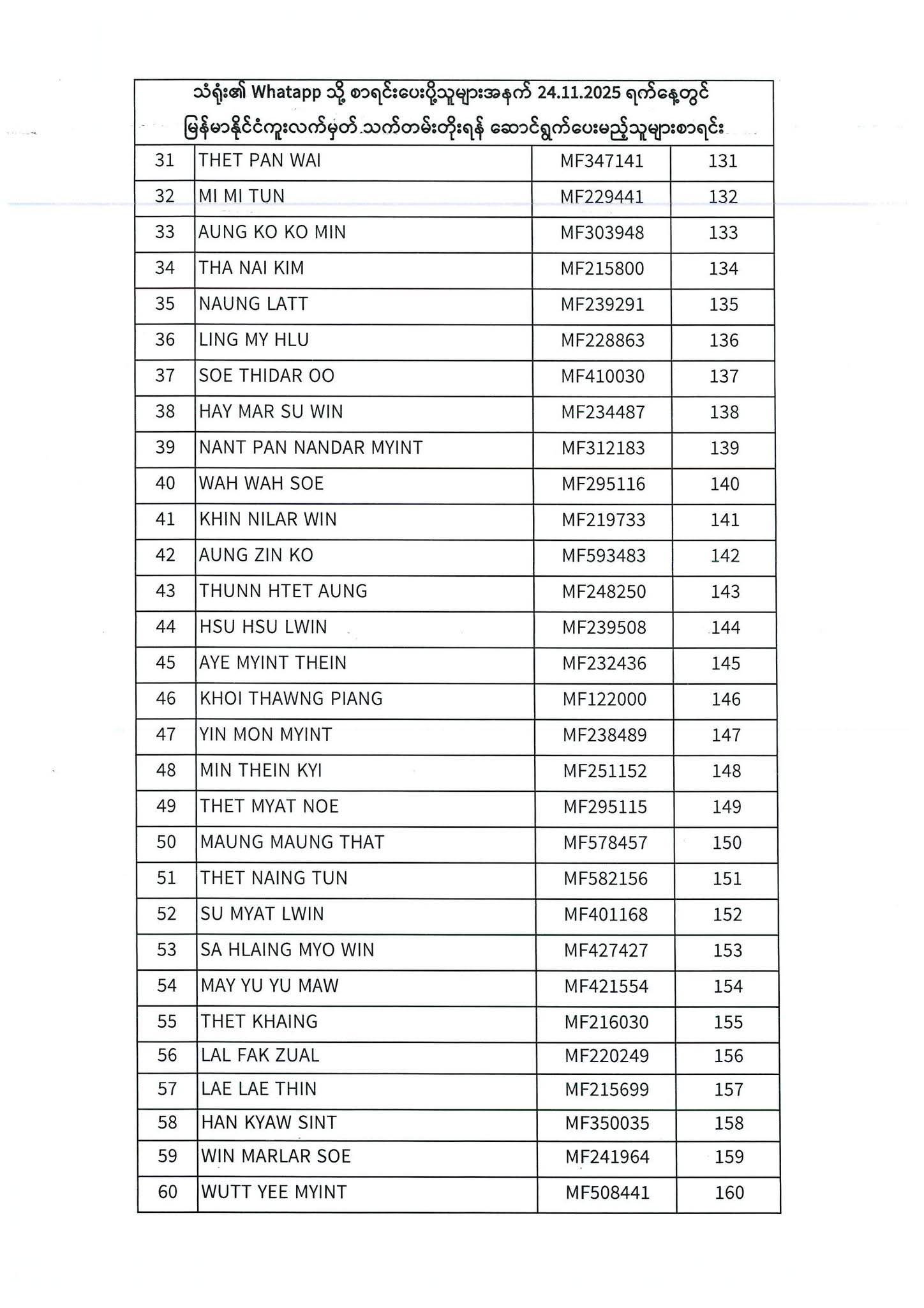 သတ်မှတ်ပေးထားသောရက်ချိန်းနေ့တွင်လာရောက်ပါရန်. မိမိပြုလုပ်ရမည့်ရက်ချိန်းနေ့အားအောက်ပါစာရင်းတွင်သေချာစွာကြည့်ပါ။