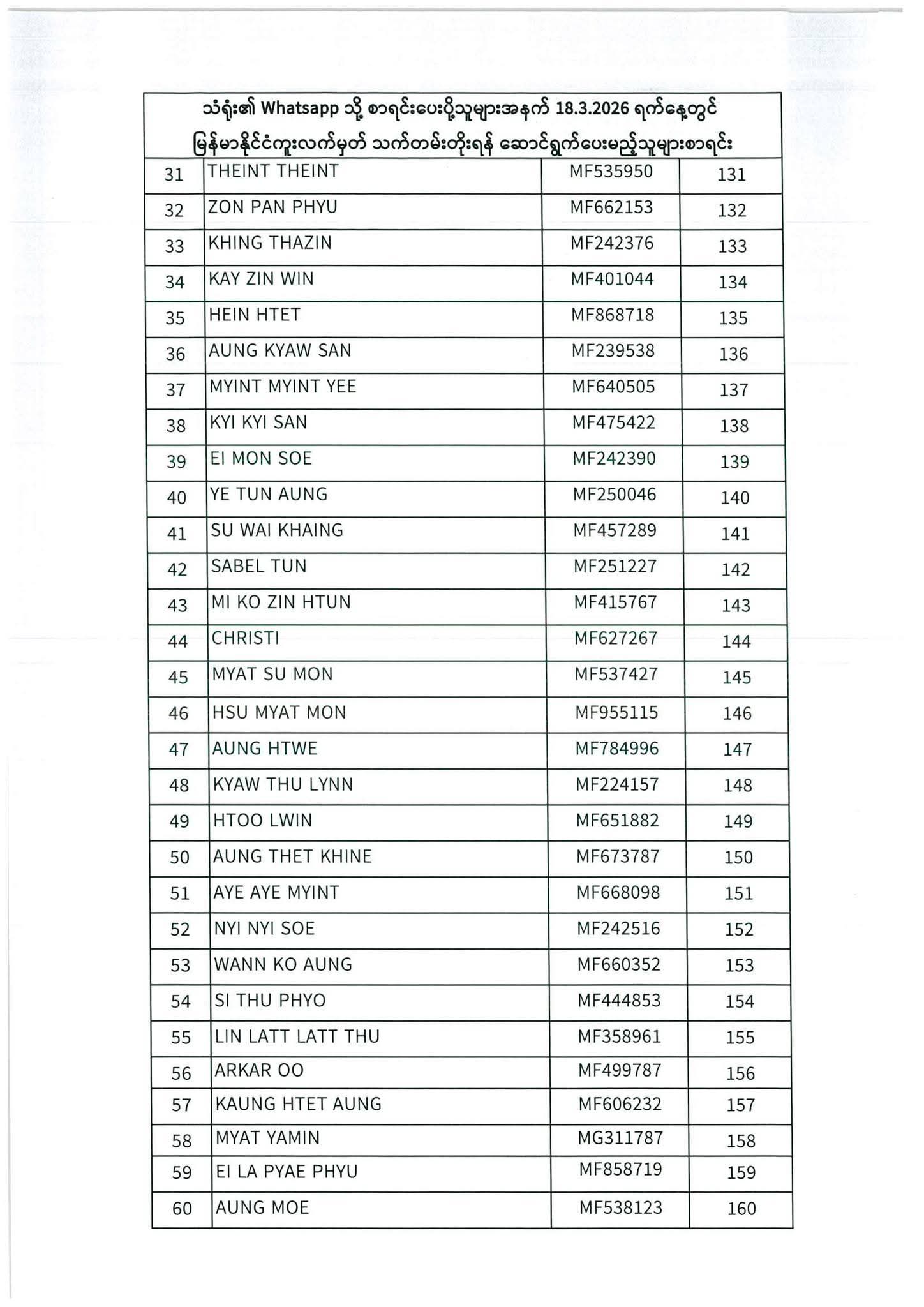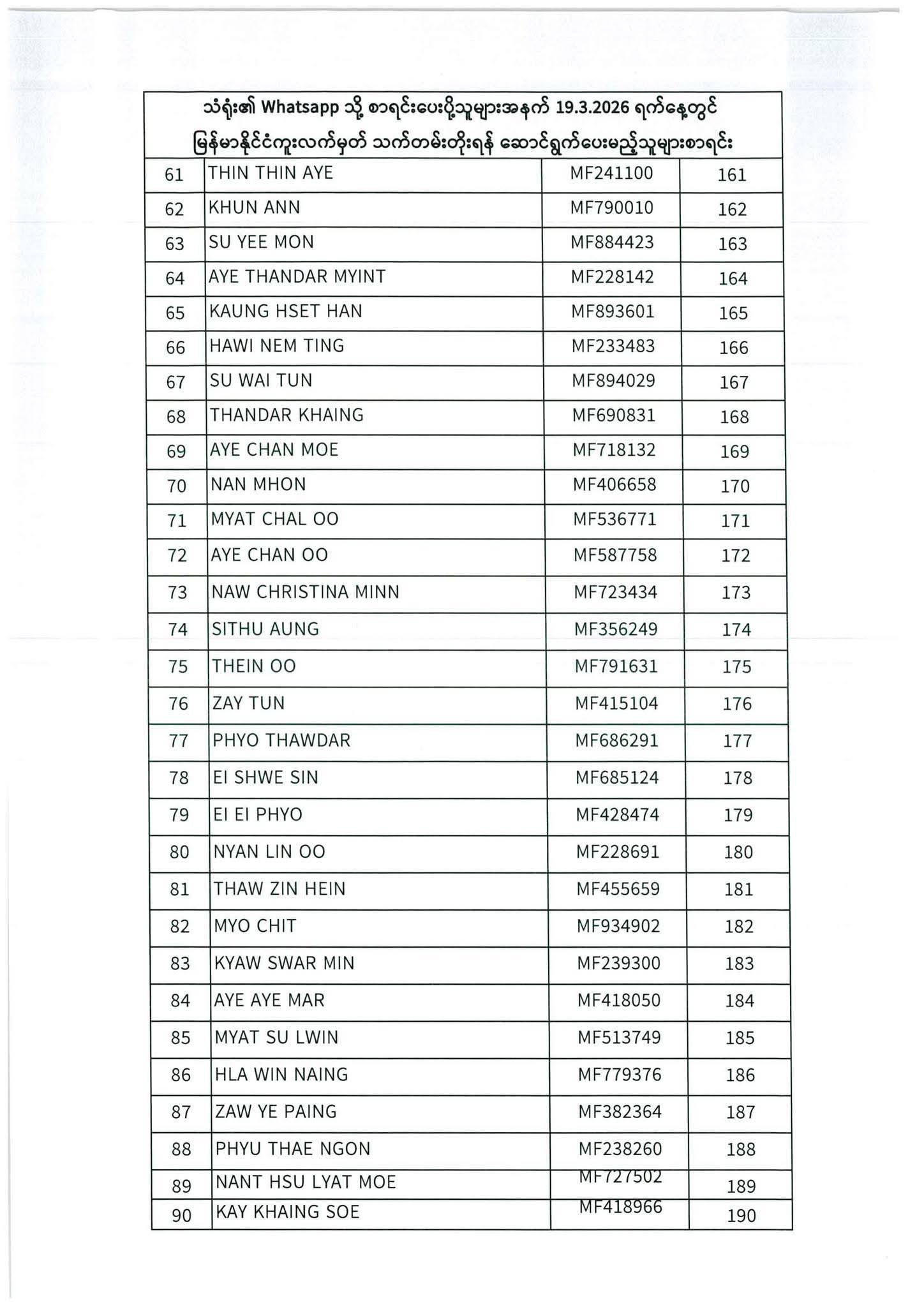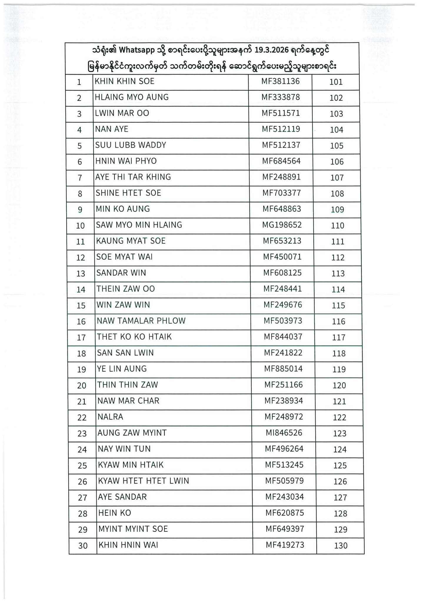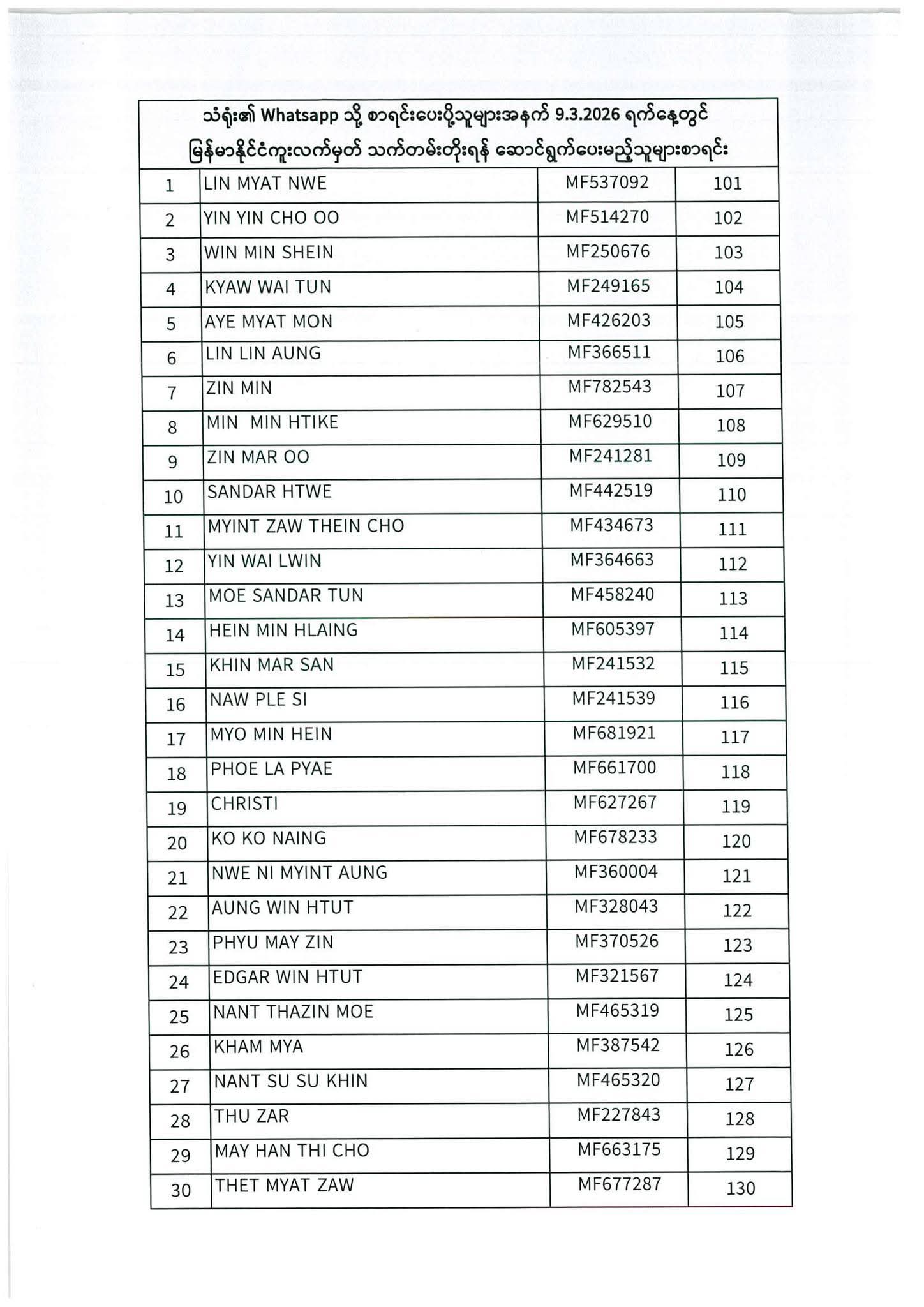 သတ်မှတ်ပေးထားသောရက်ချိန်းနေ့တွင်လာရောက်ပါရန်. မိမိပြုလုပ်ရမည့်ရက်ချိန်းနေ့အားအောက်ပါစာရင်းတွင်သေချာစွာကြည့်ပါ။