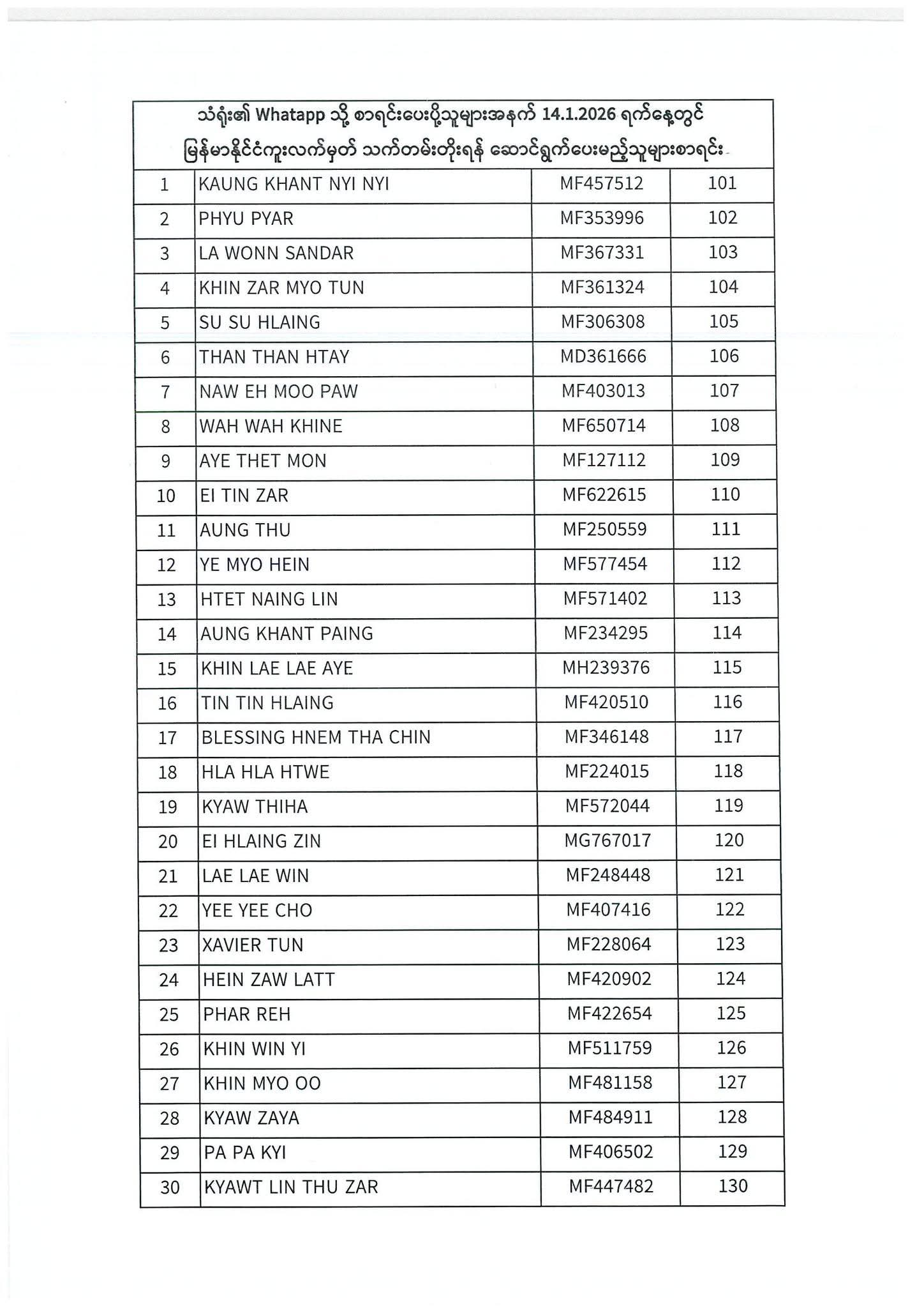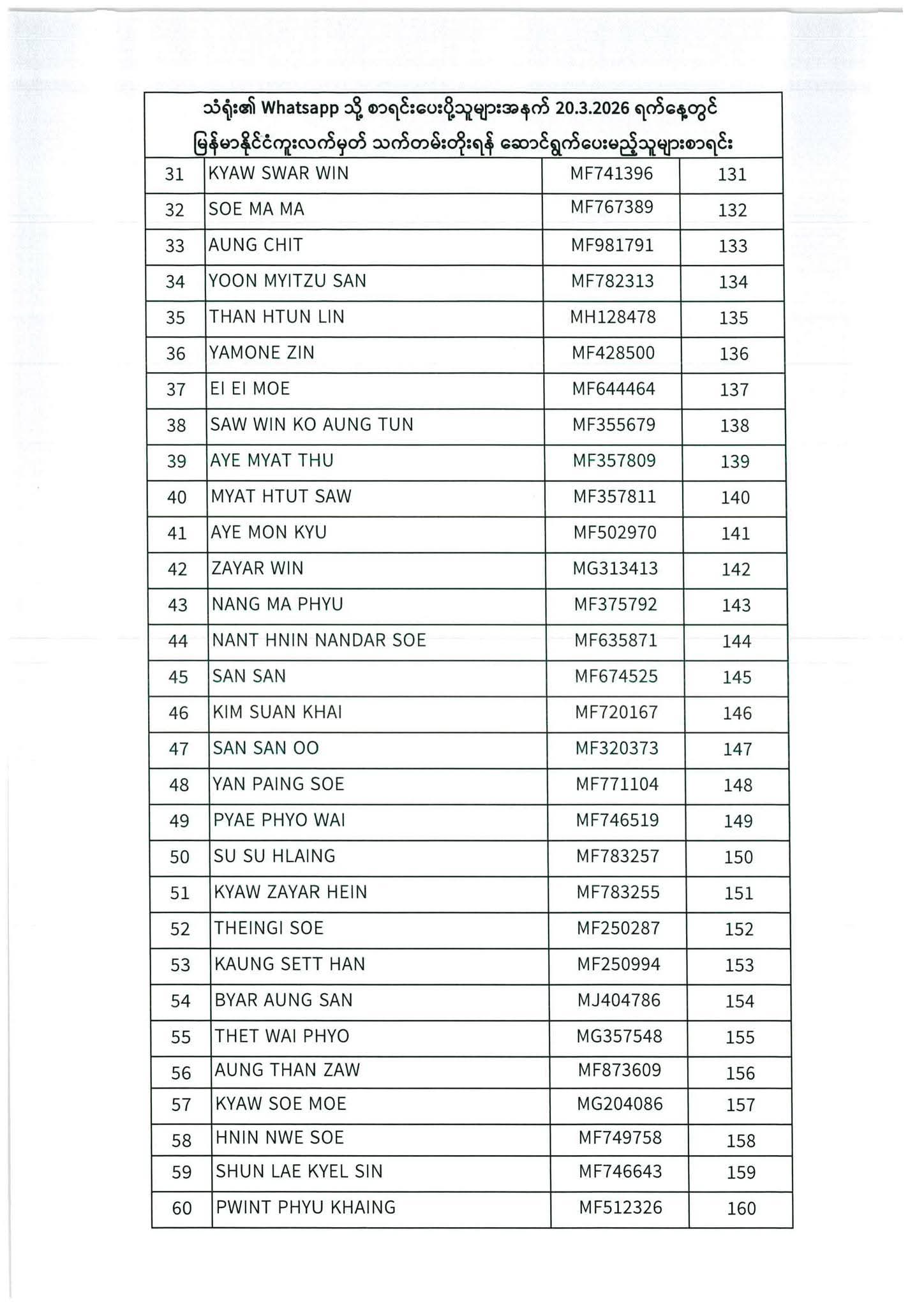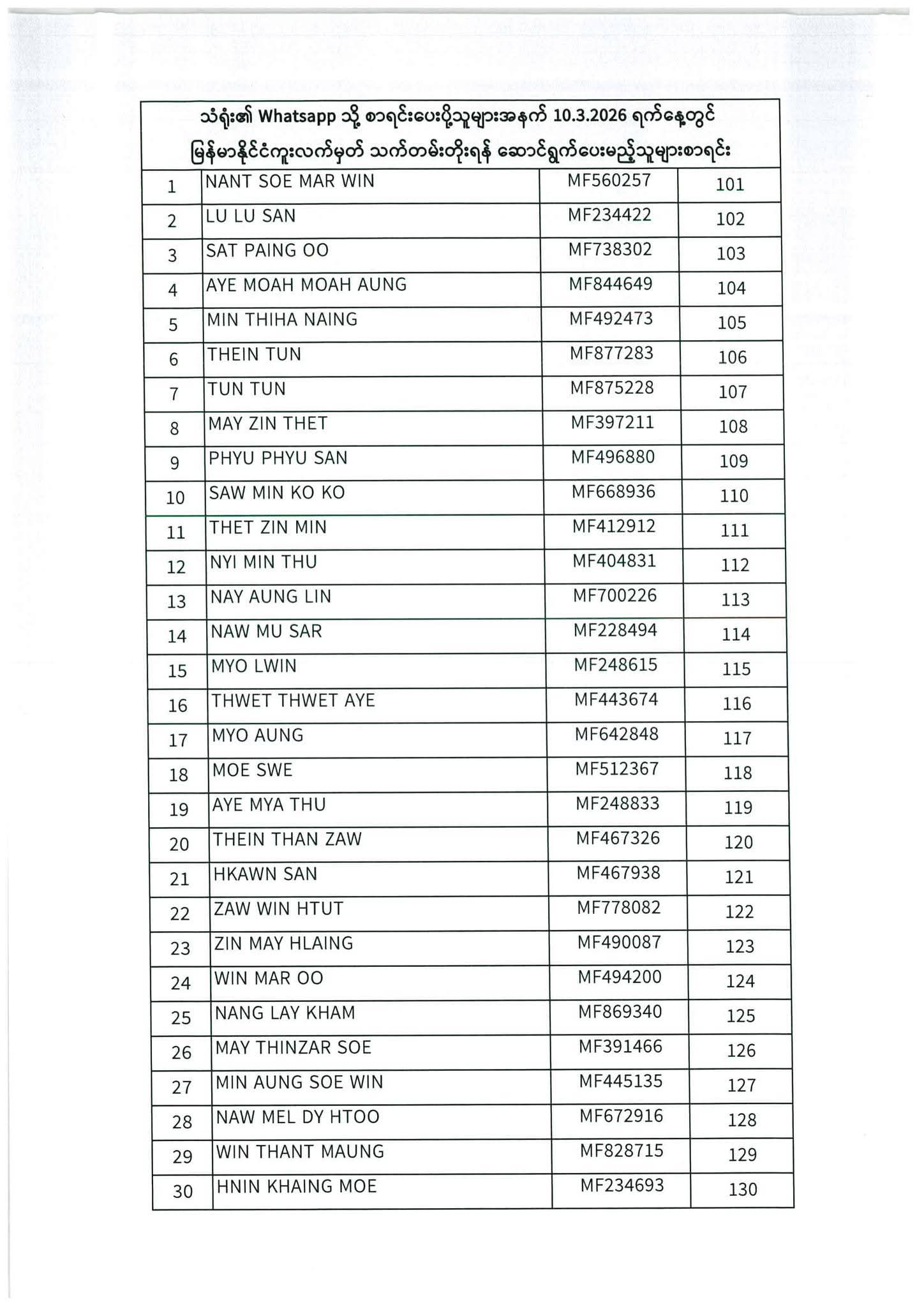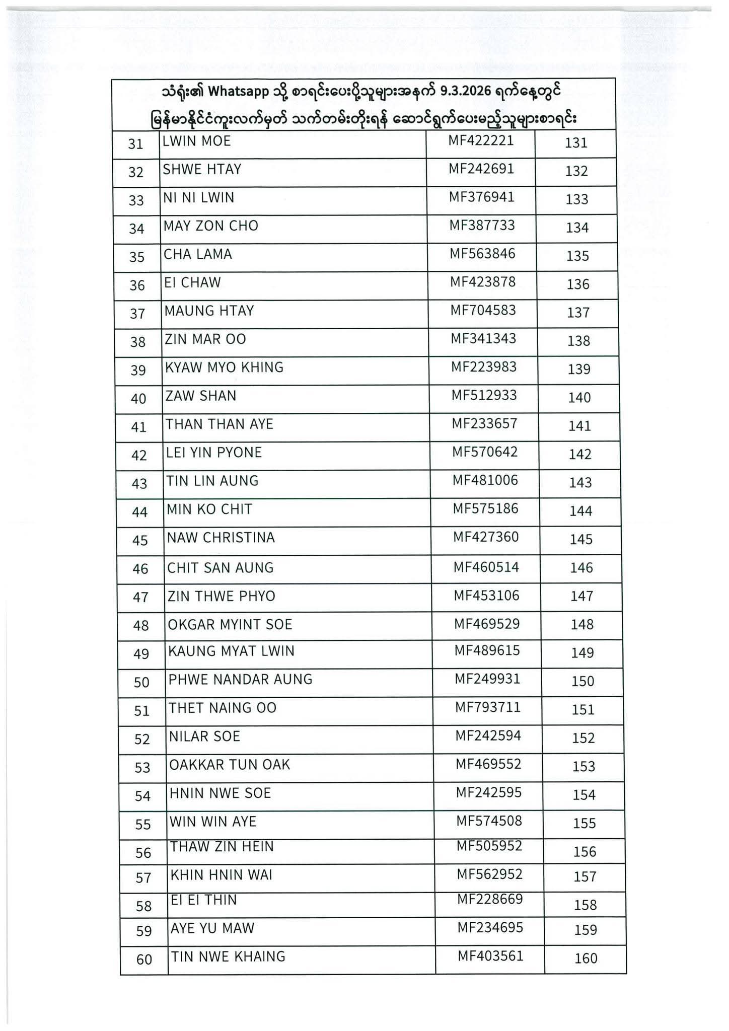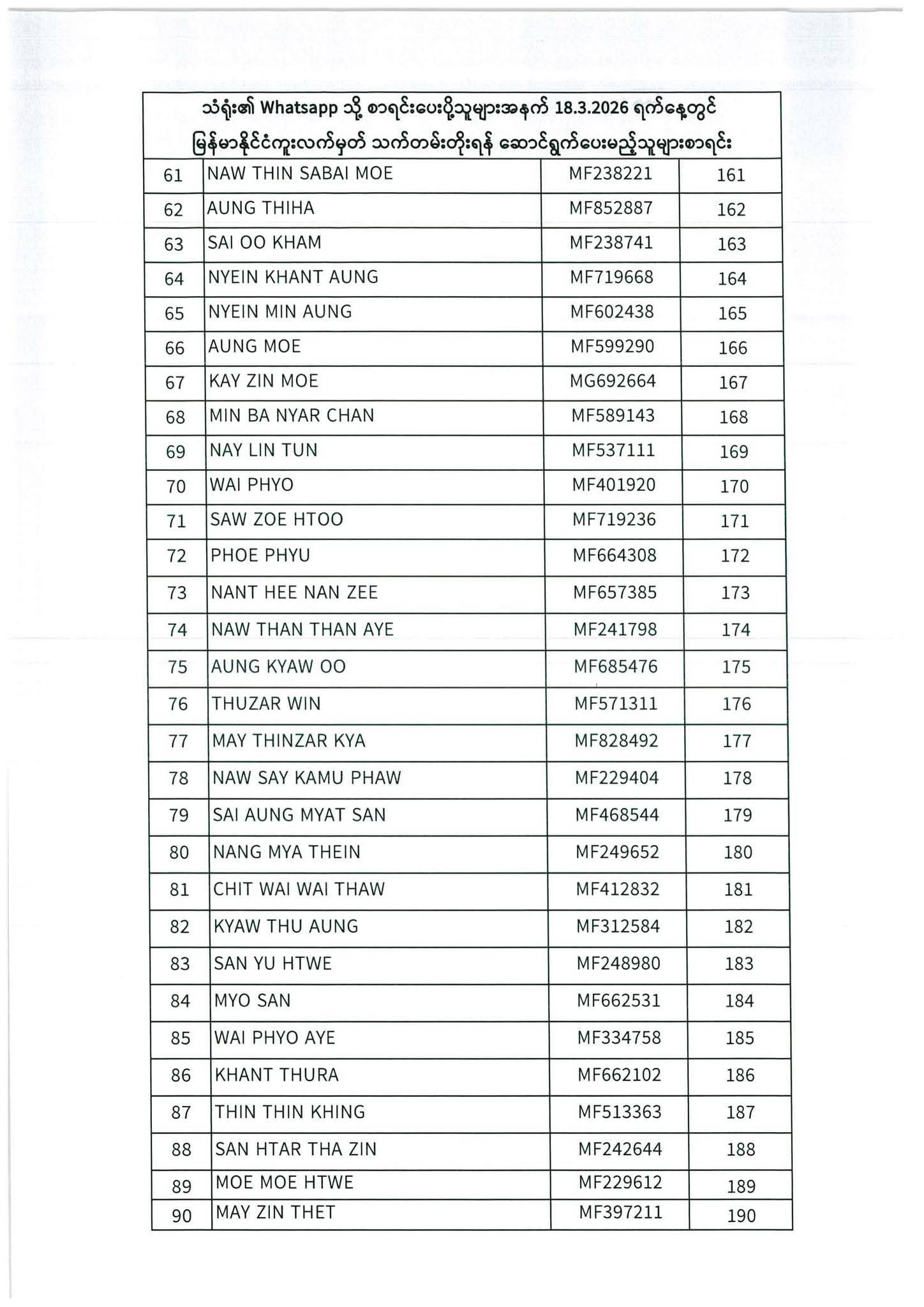 သတ်မှတ်ပေးထားသောရက်ချိန်းနေ့တွင်လာရောက်ပါရန်. မိမိပြုလုပ်ရမည့်ရက်ချိန်းနေ့အားအောက်ပါစာရင်းတွင်သေချာစွာကြည့်ပါ။