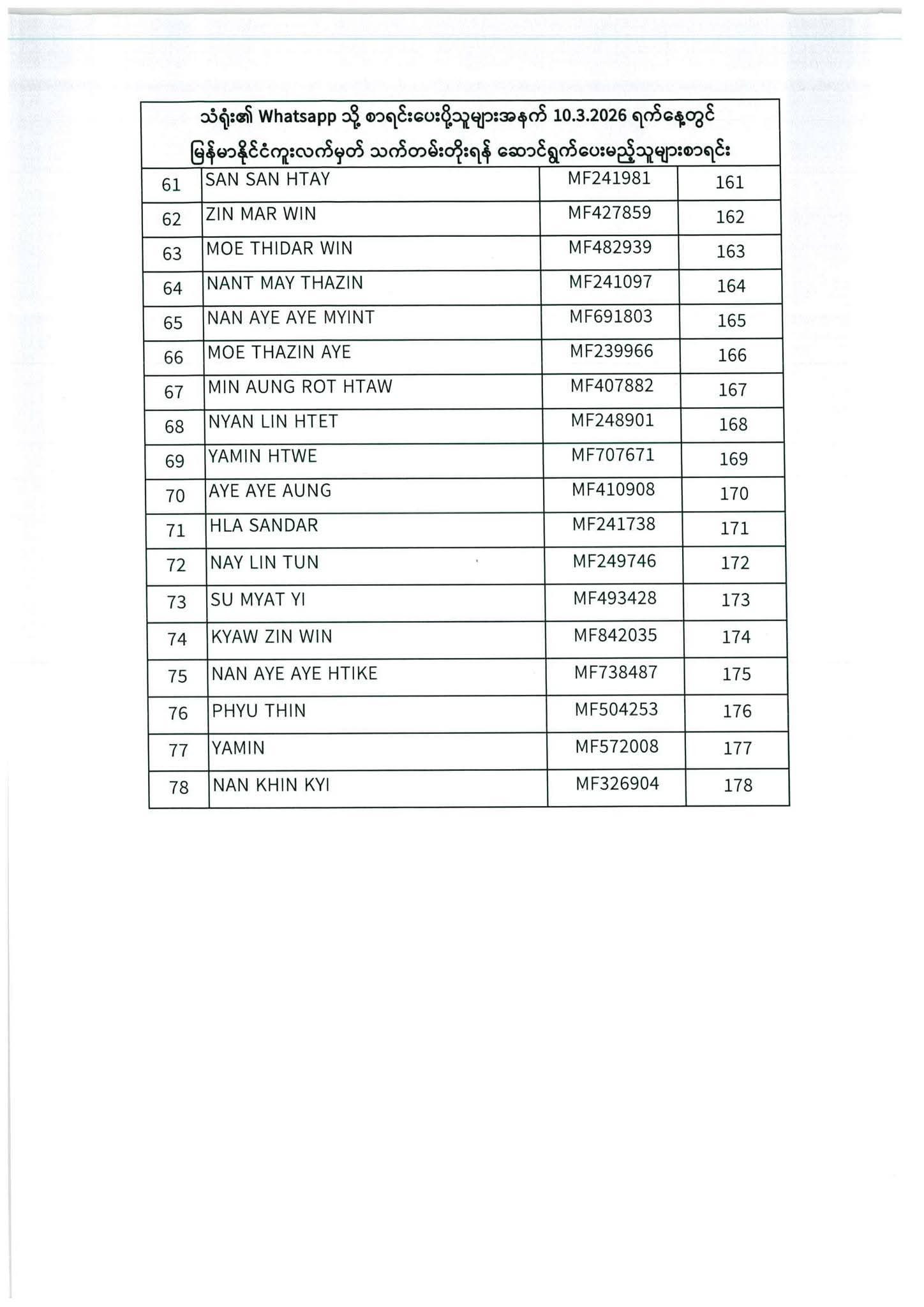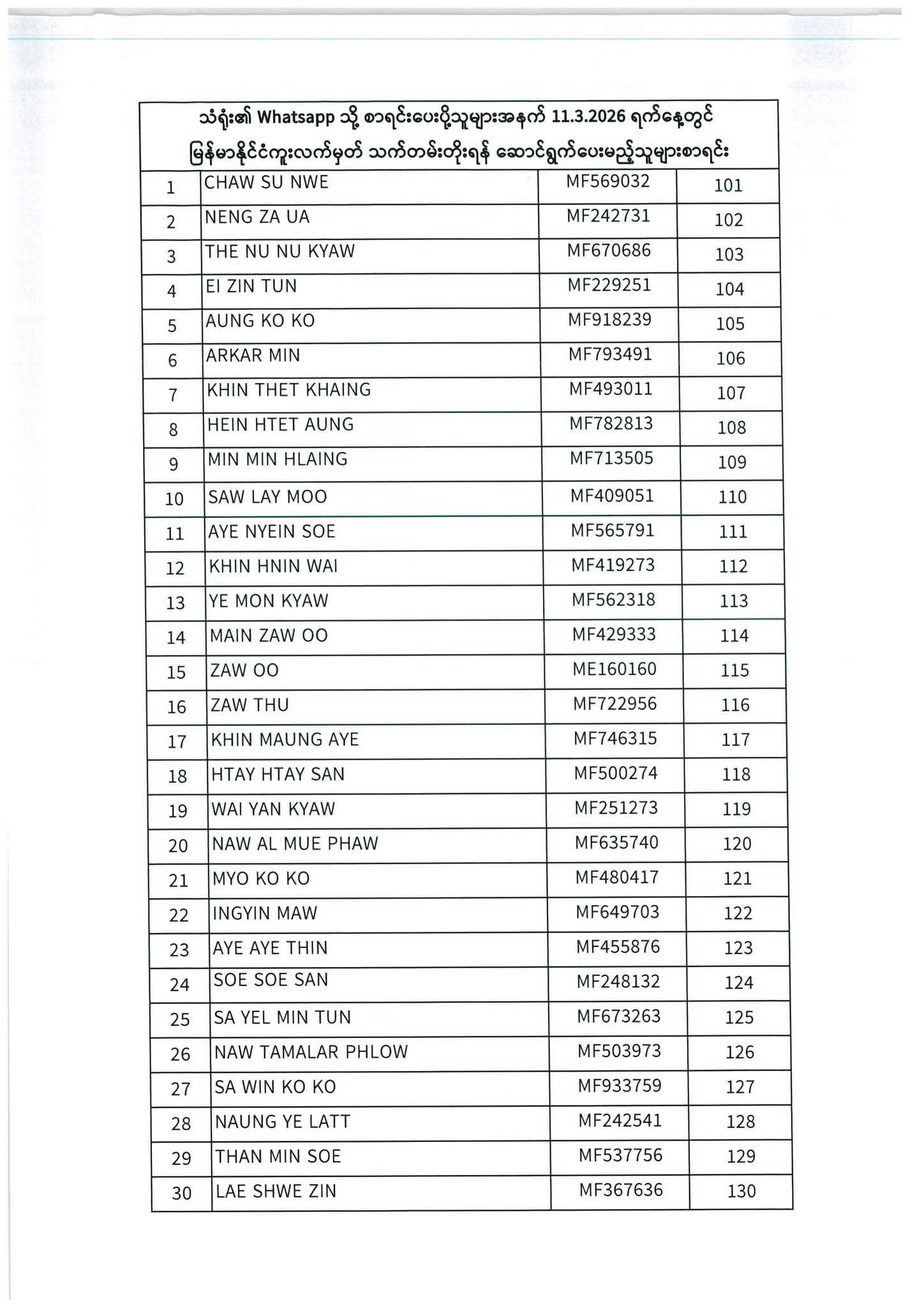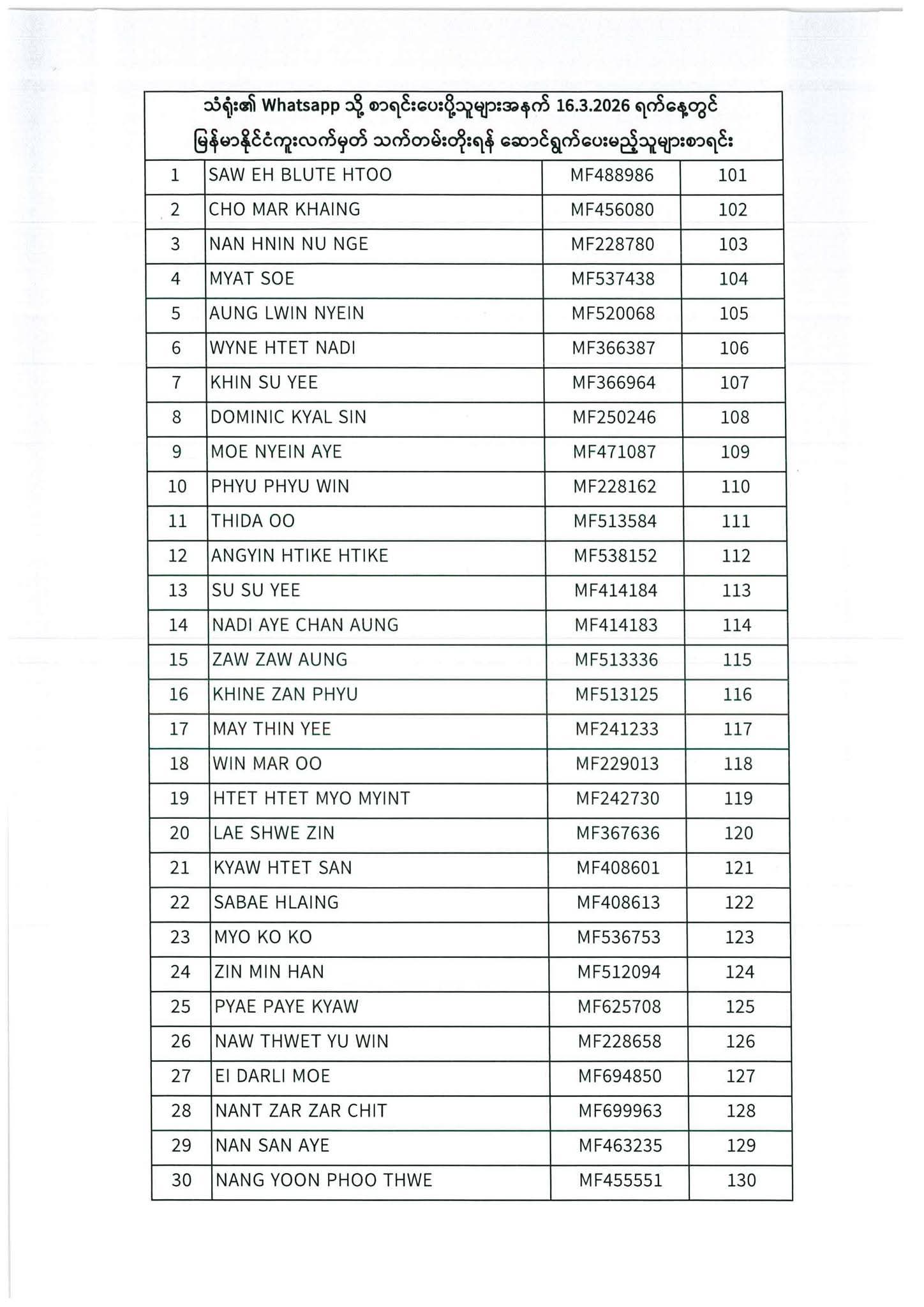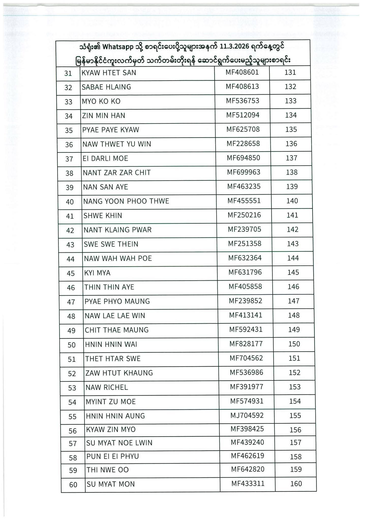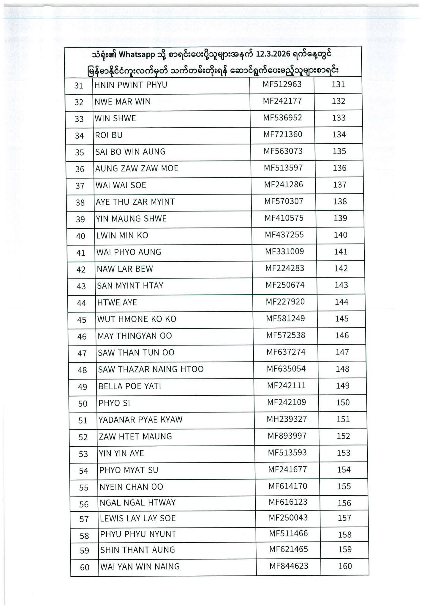 သတ်မှတ်ပေးထားသောရက်ချိန်းနေ့တွင်လာရောက်ပါရန်. မိမိပြုလုပ်ရမည့်ရက်ချိန်းနေ့အားအောက်ပါစာရင်းတွင်သေချာစွာကြည့်ပါ။