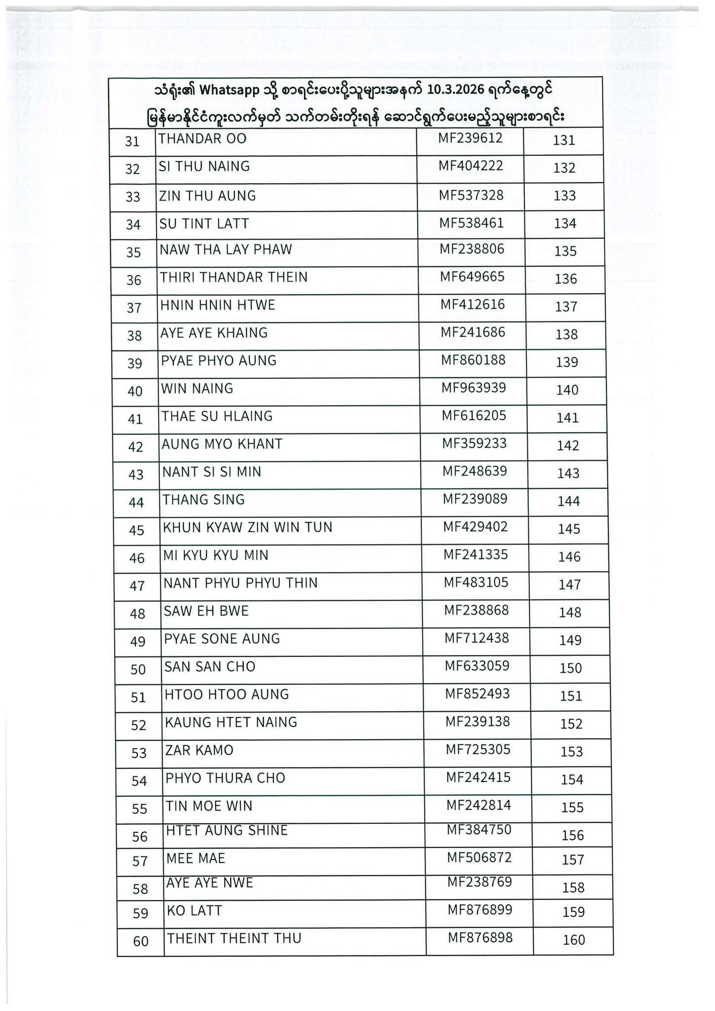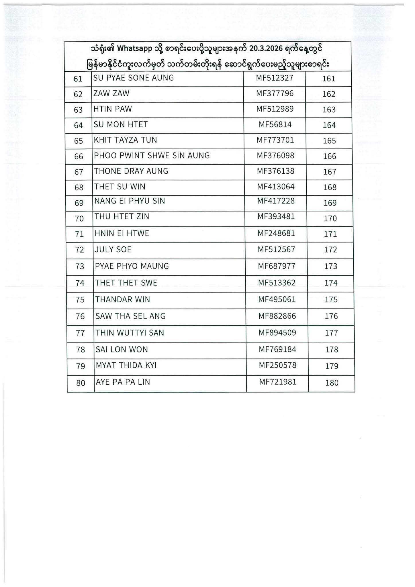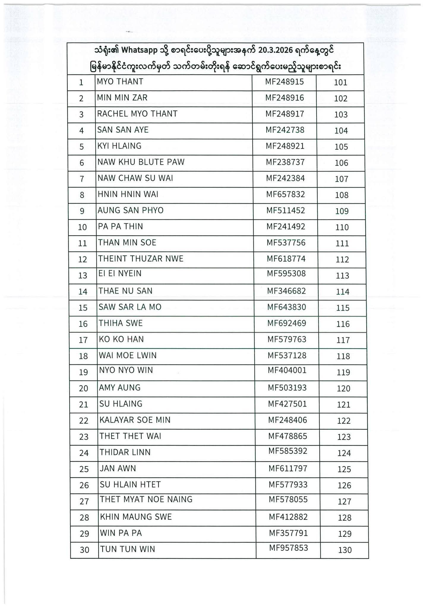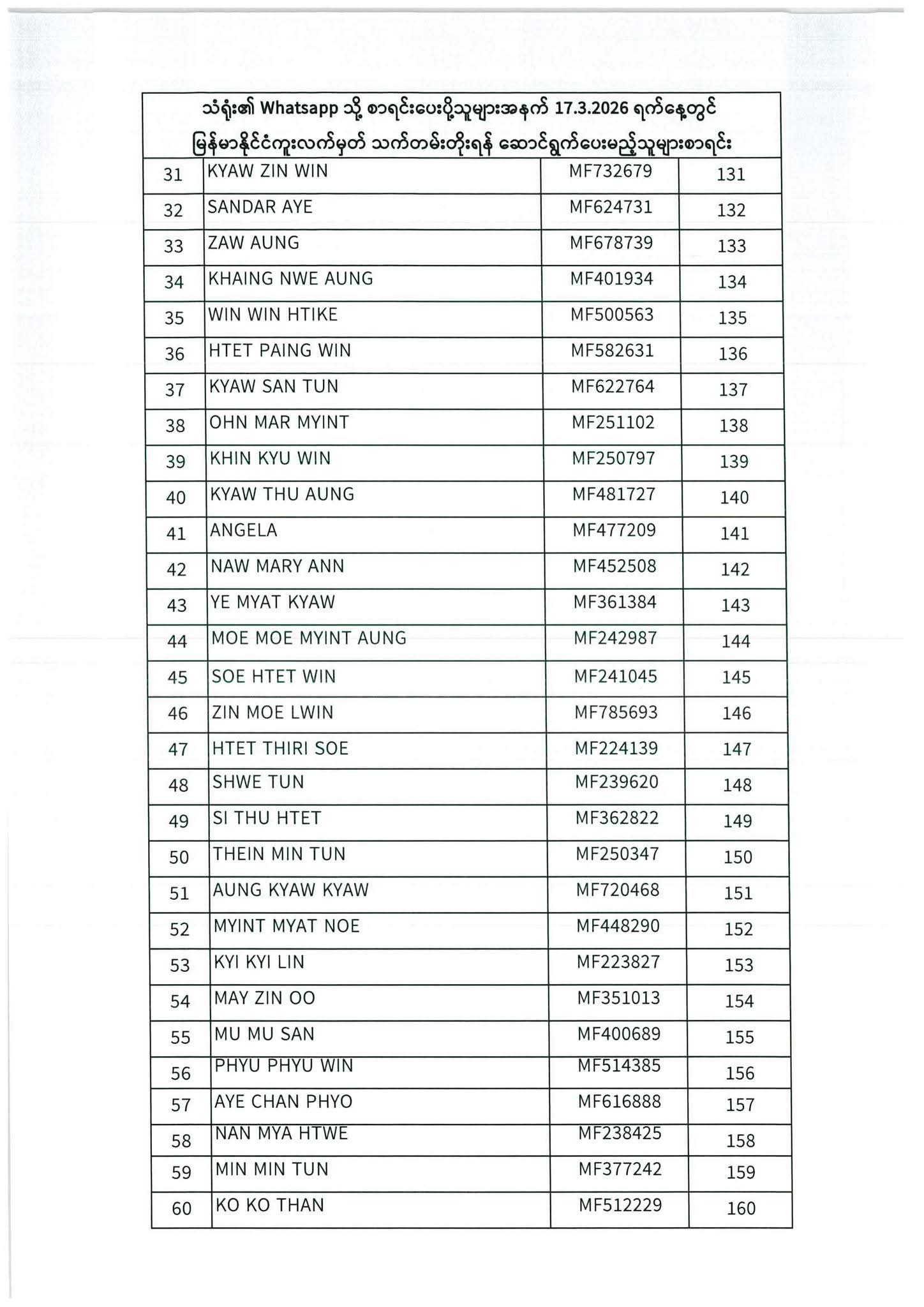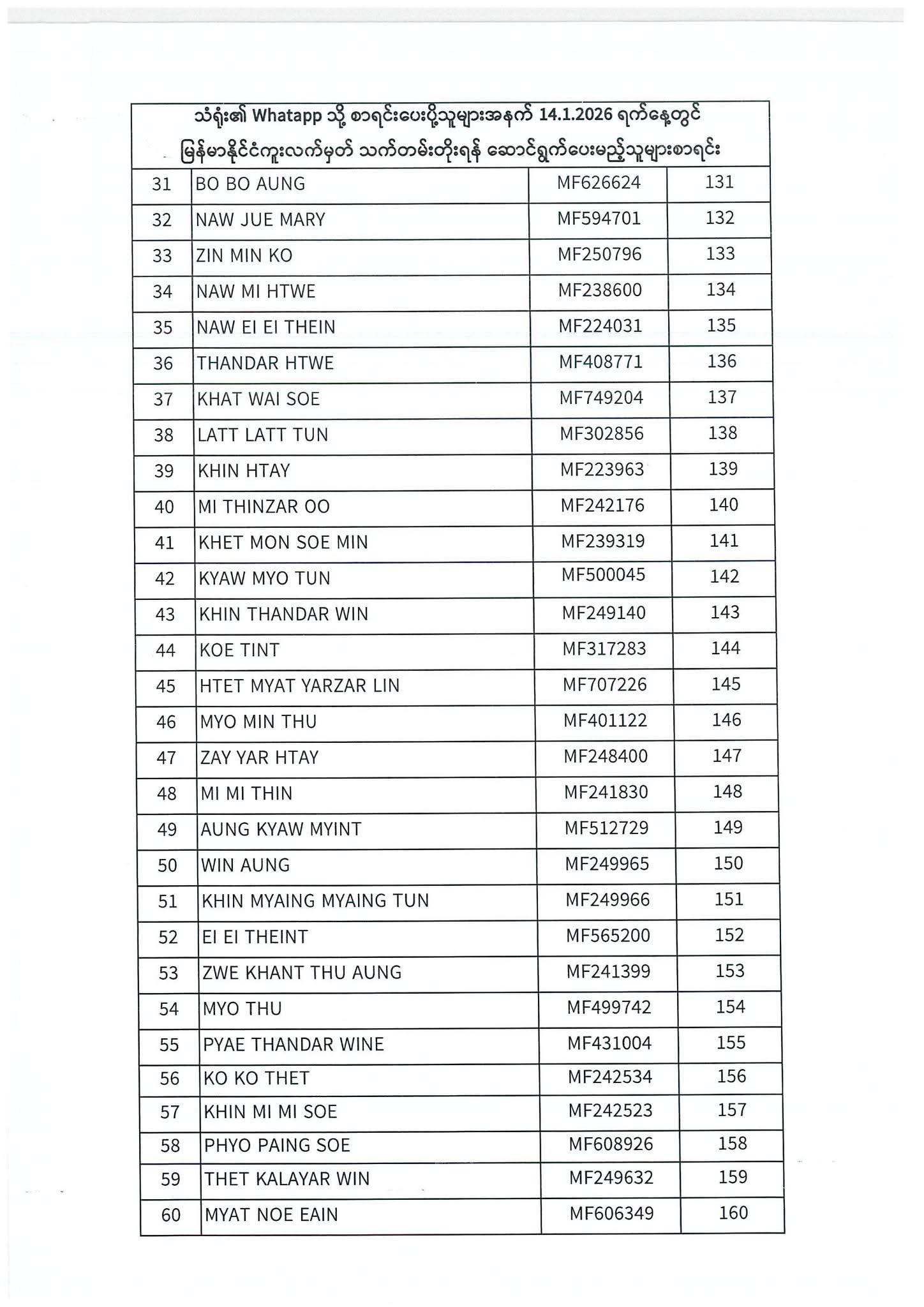 သတ်မှတ်ပေးထားသောရက်ချိန်းနေ့တွင်လာရောက်ပါရန်. မိမိပြုလုပ်ရမည့်ရက်ချိန်းနေ့အားအောက်ပါစာရင်းတွင်သေချာစွာကြည့်ပါ။