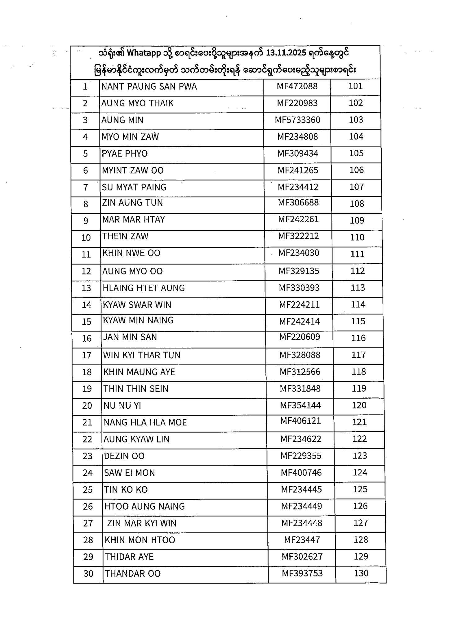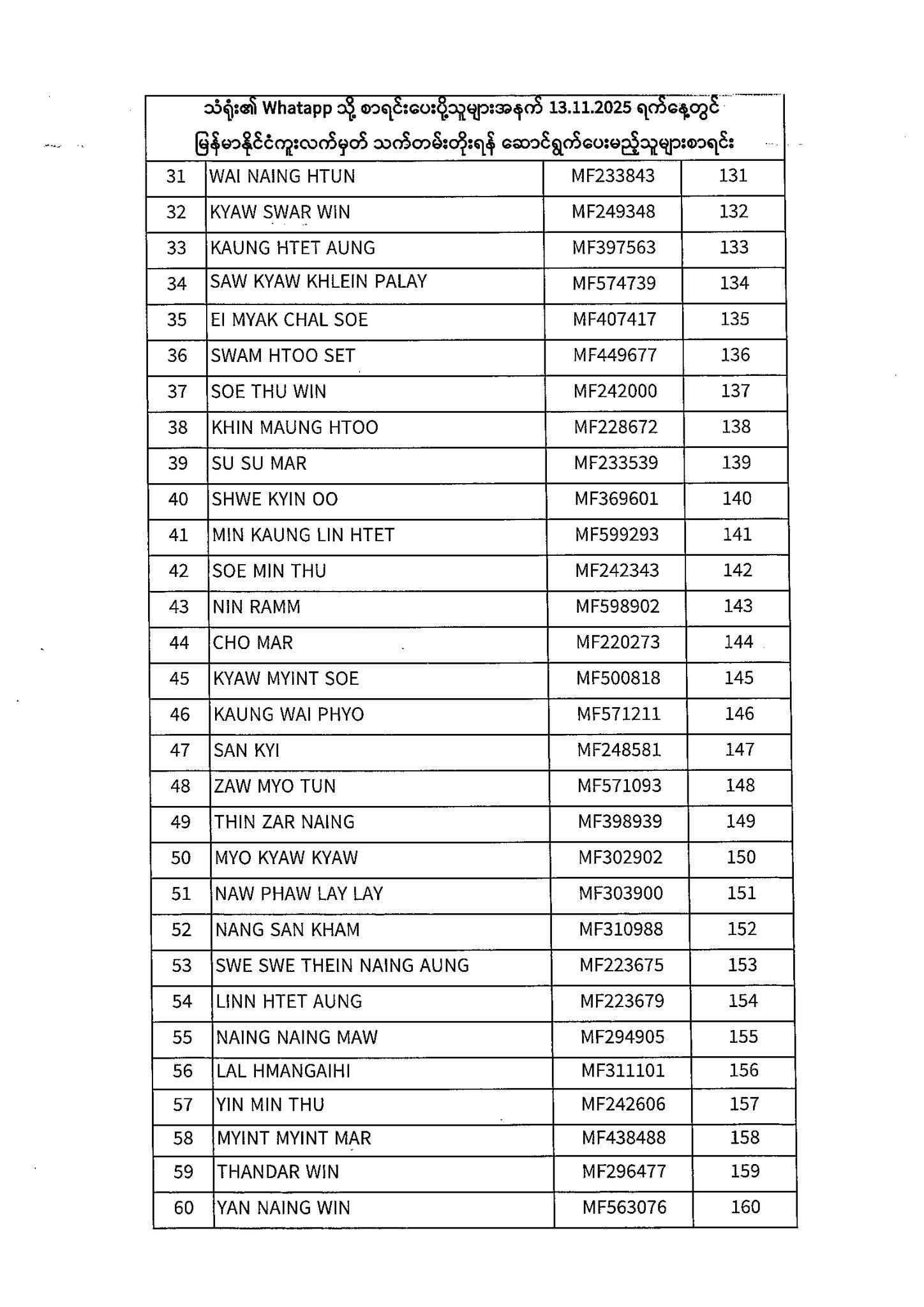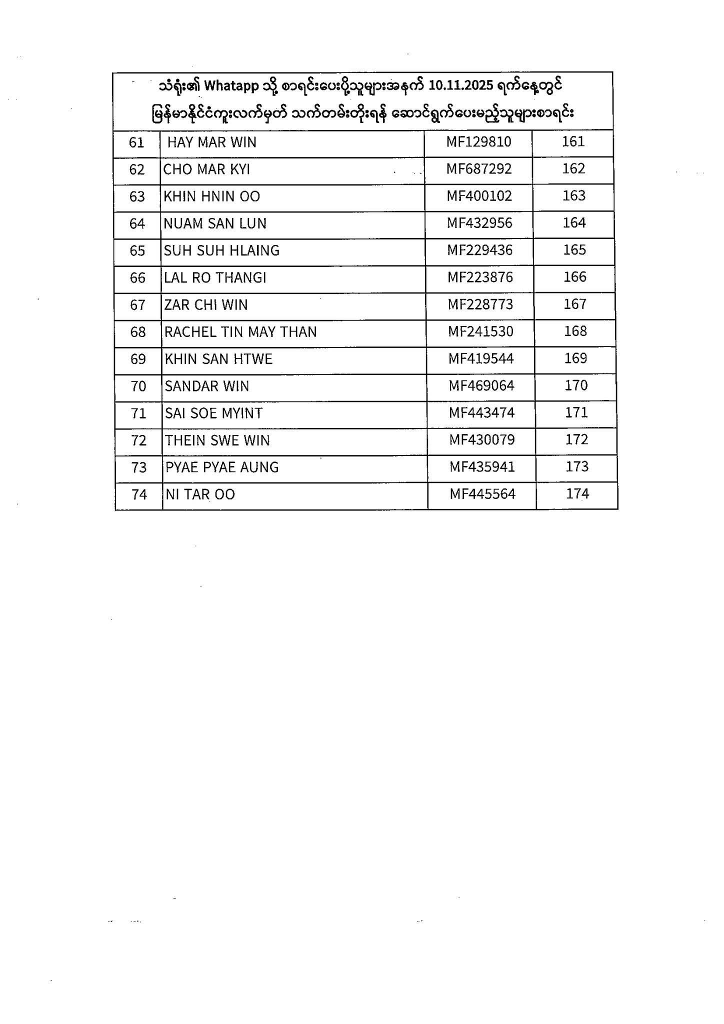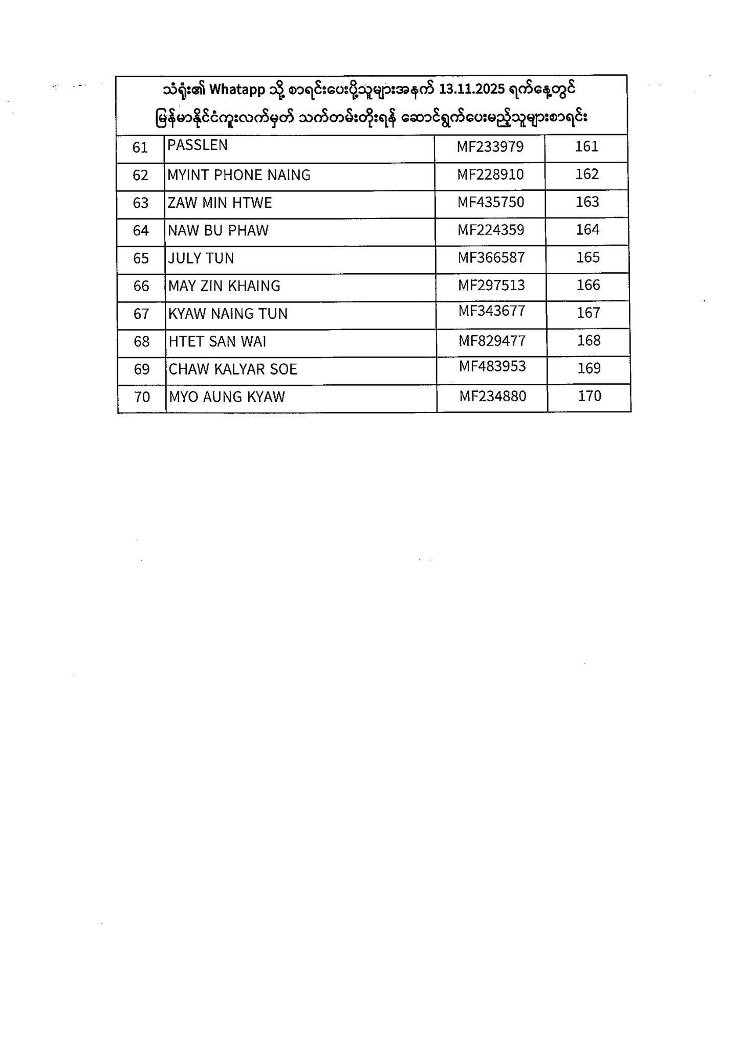 PASSPORT RENEWAL LIST 10 November TO 13 November ⇩