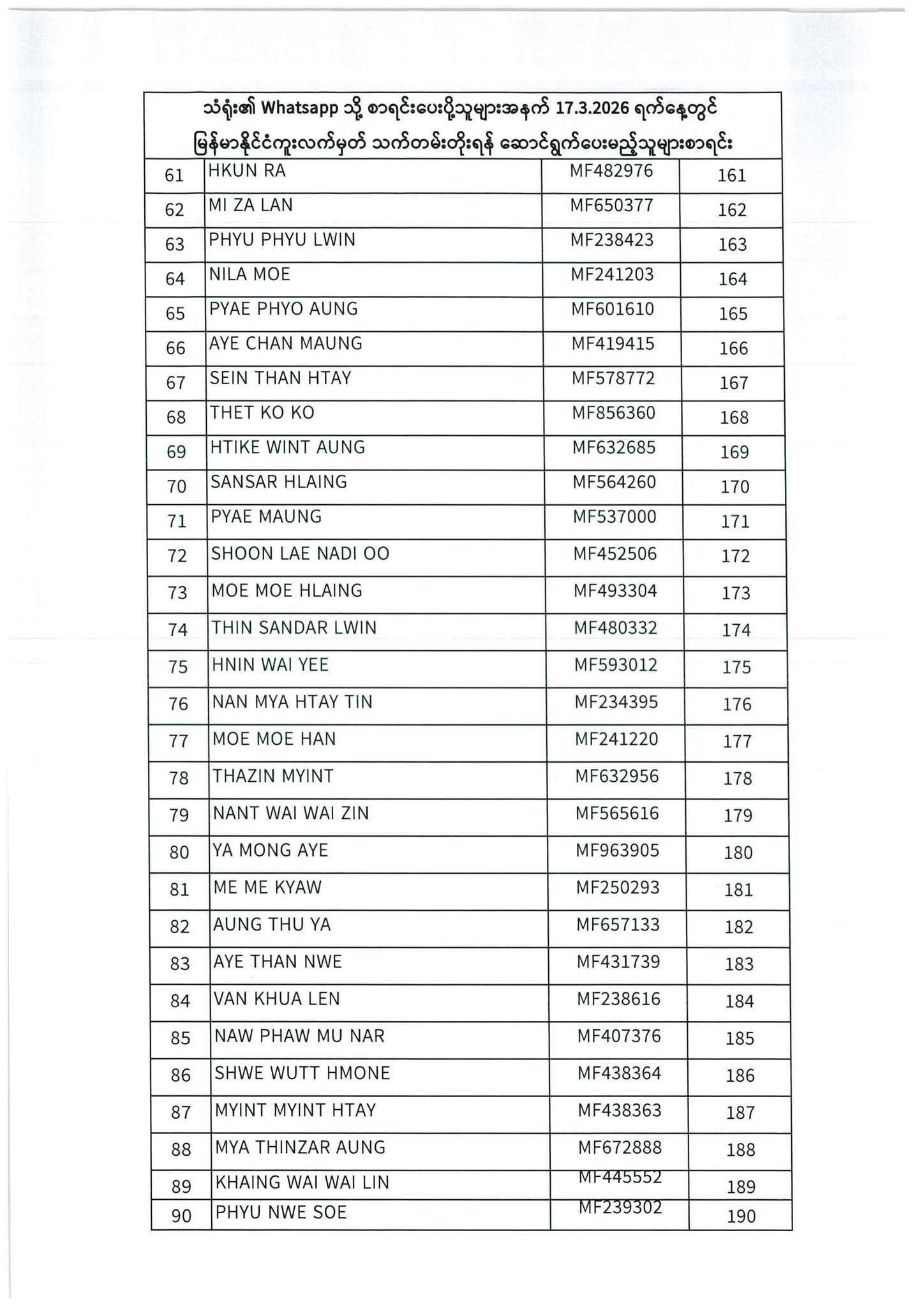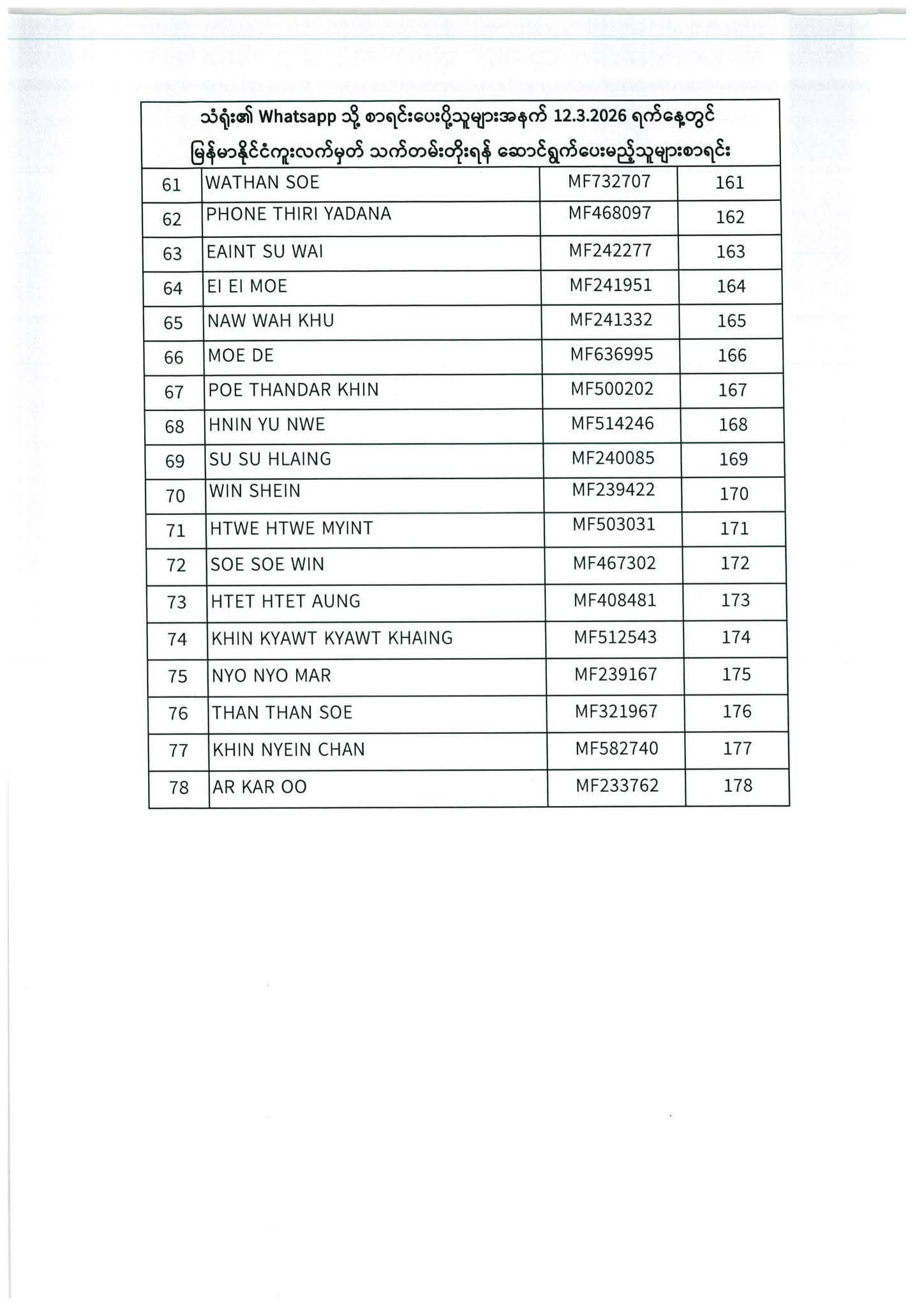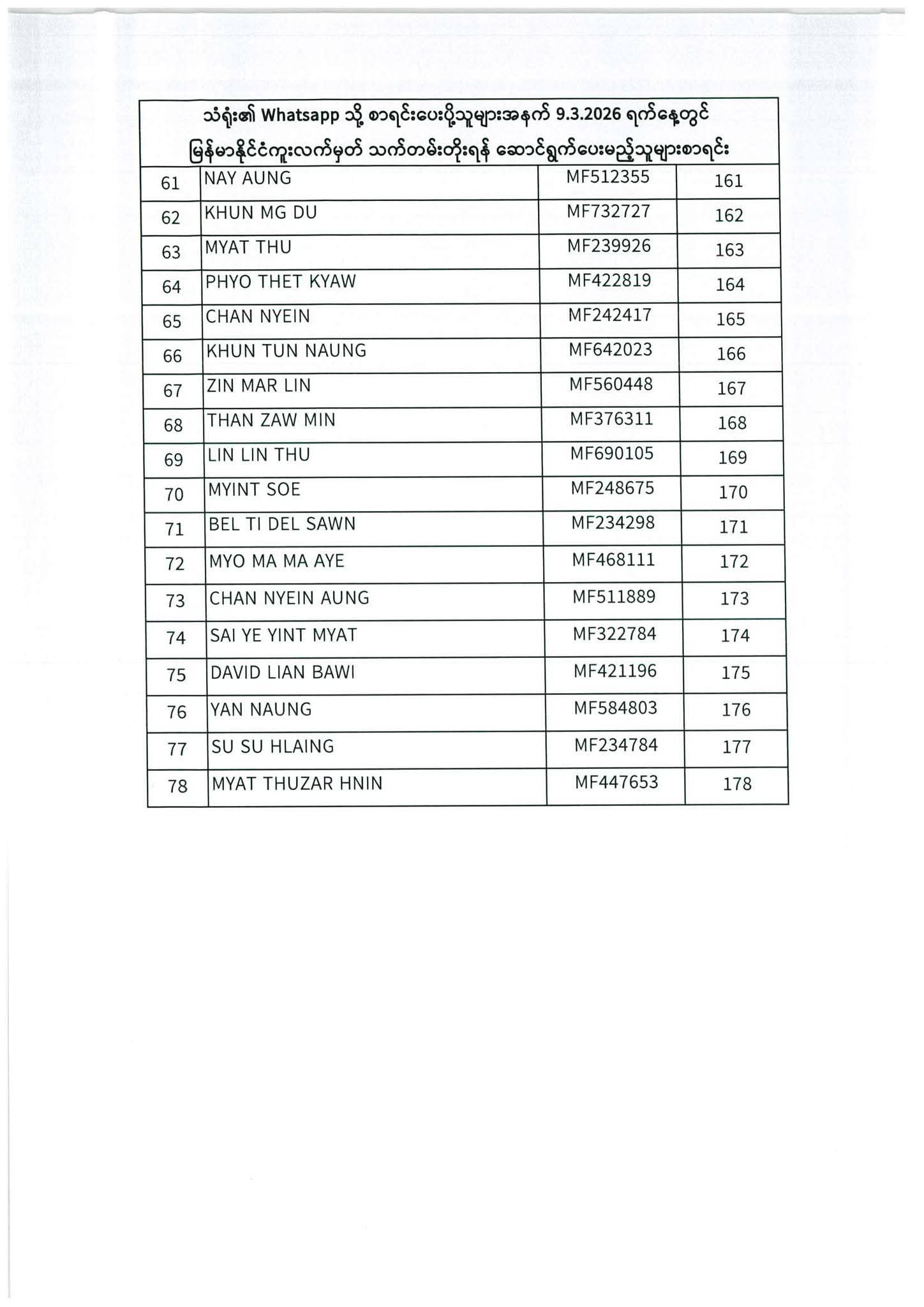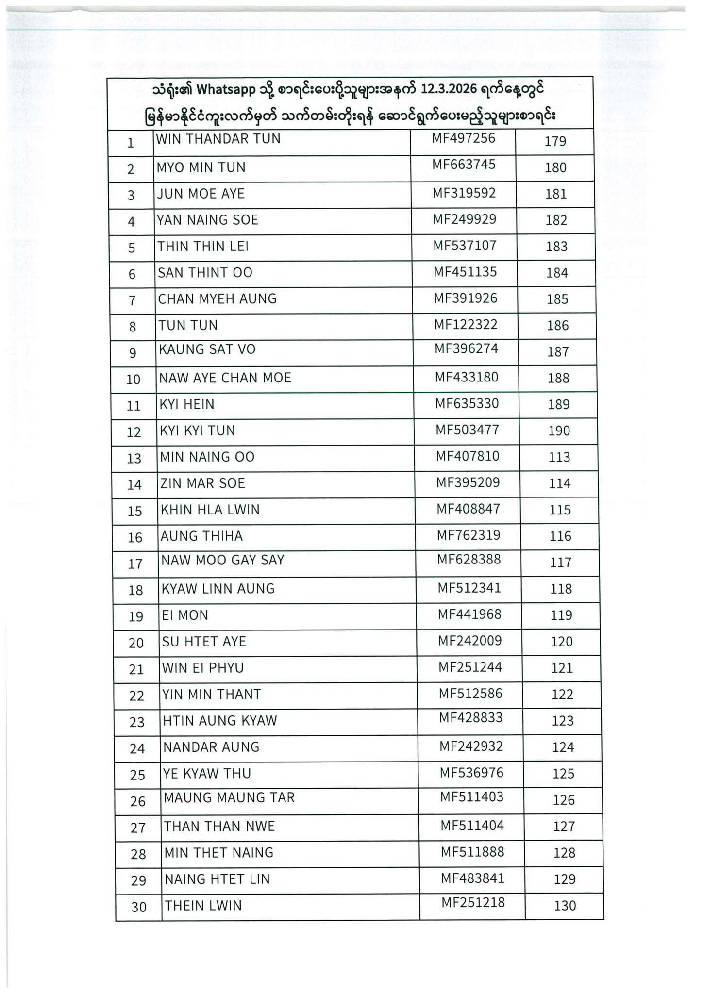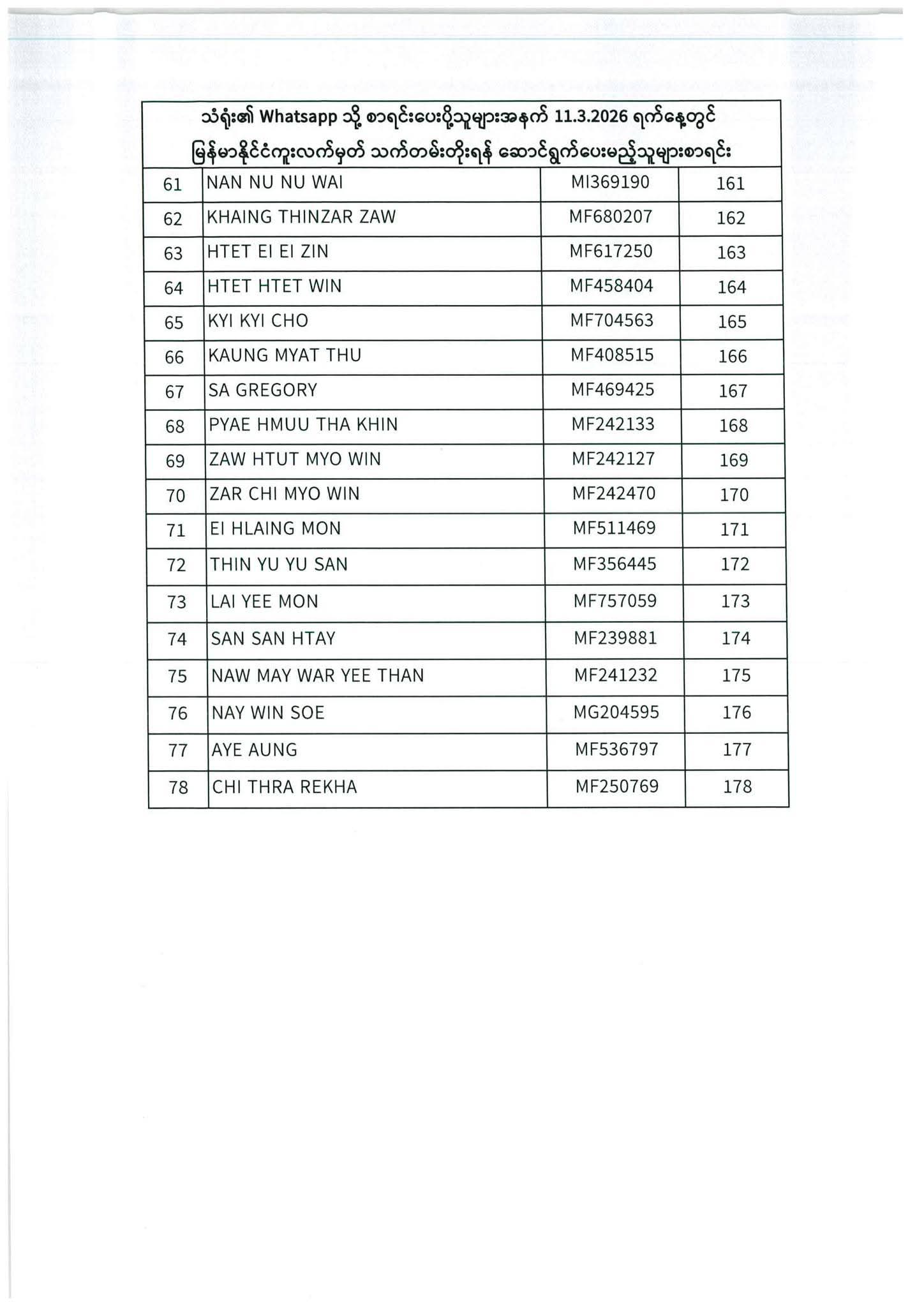 PASSPORT RENEWAL LIST 8 December To 12 December⇩
