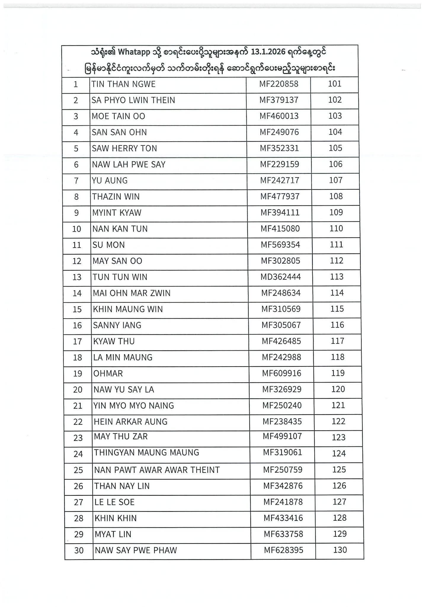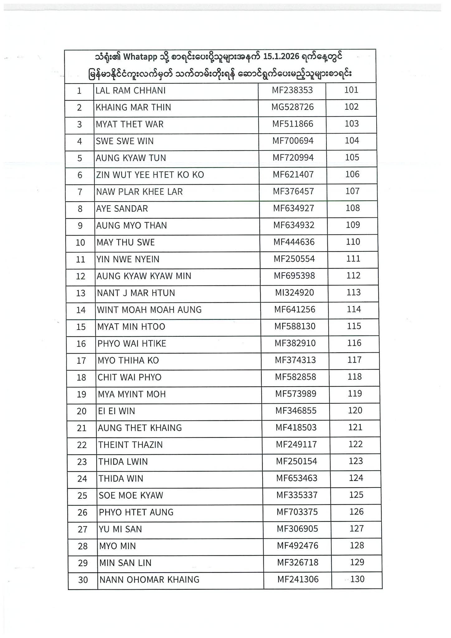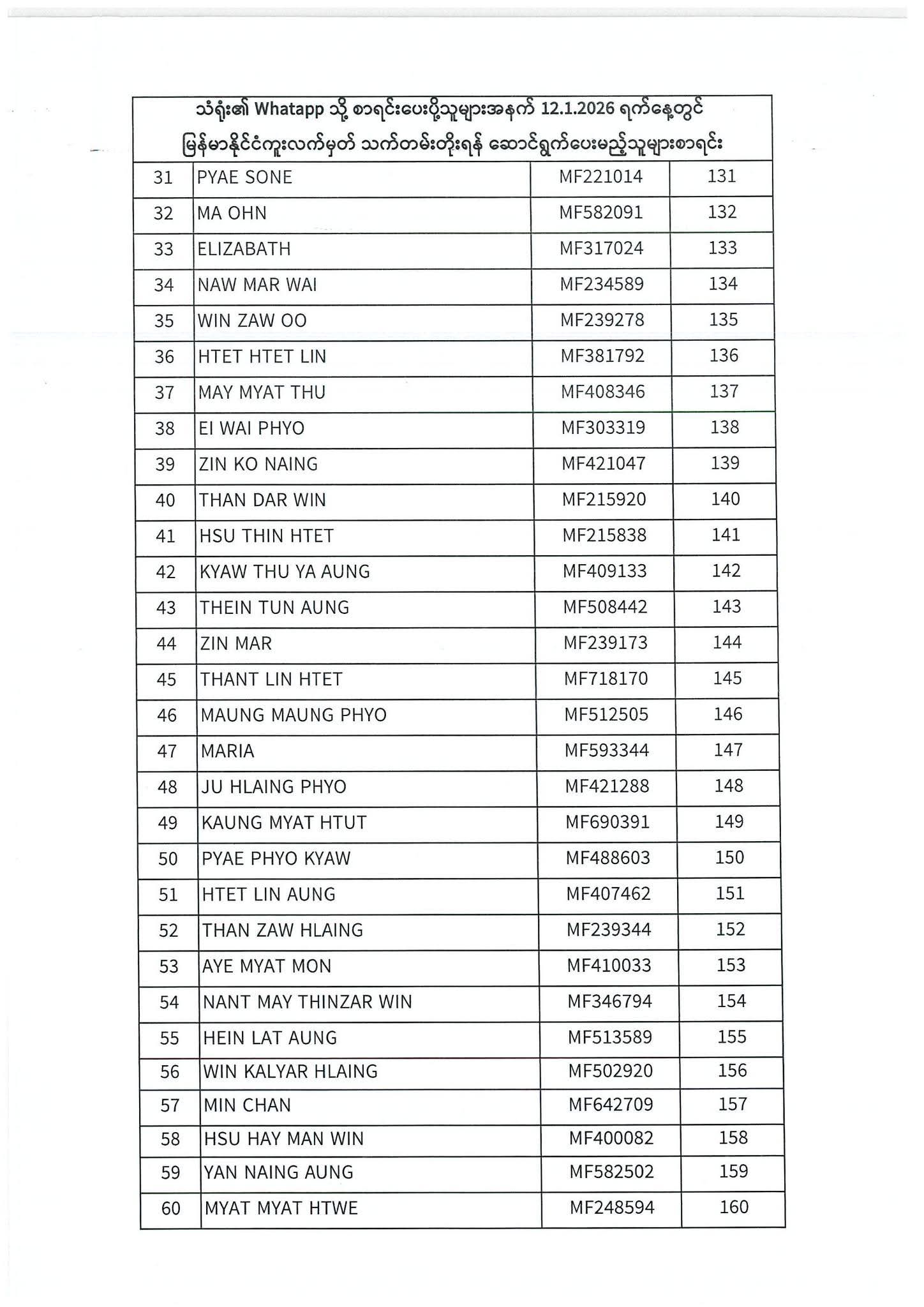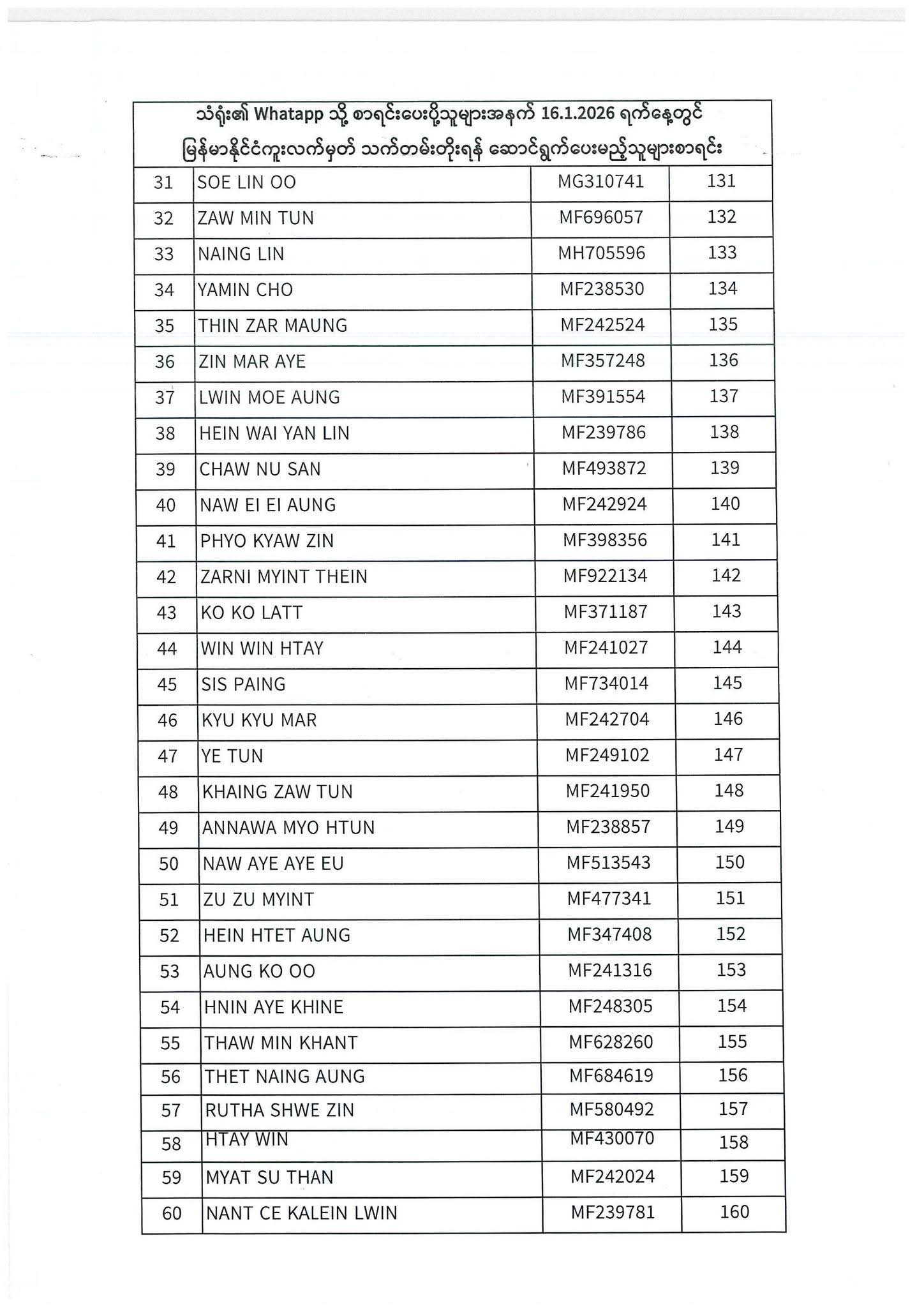 PASSPORT RENEWAL LIST 12 January To 16 January