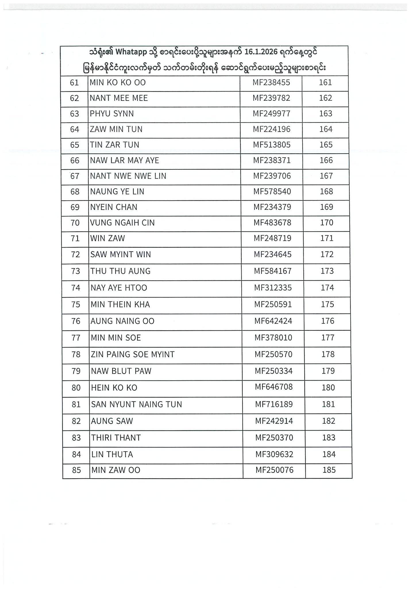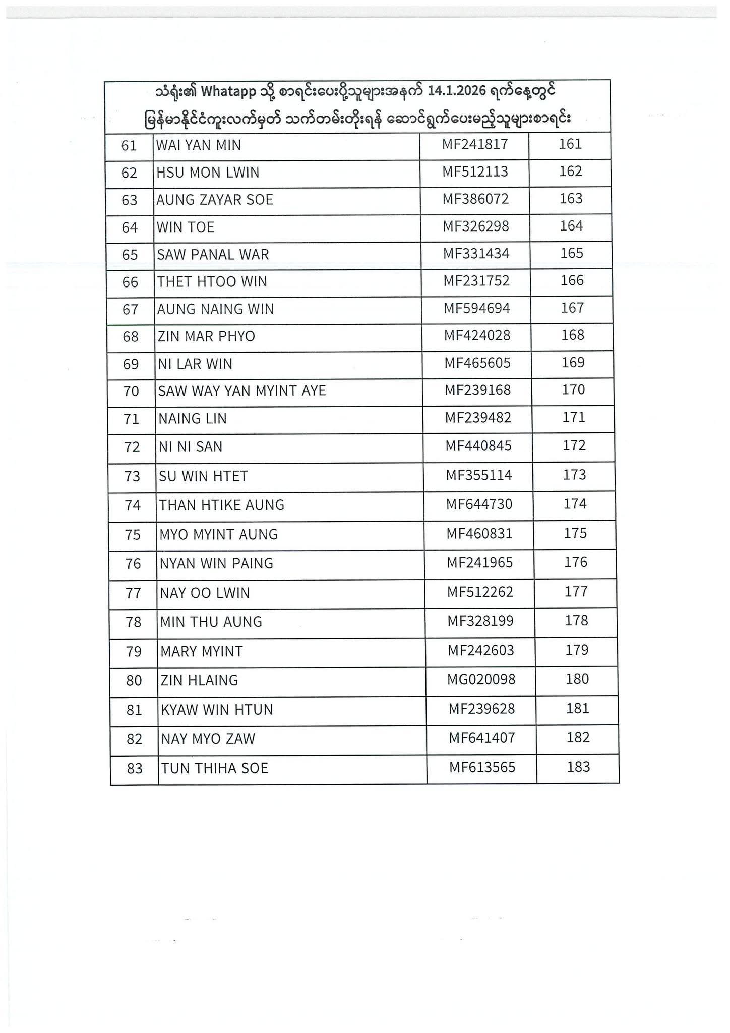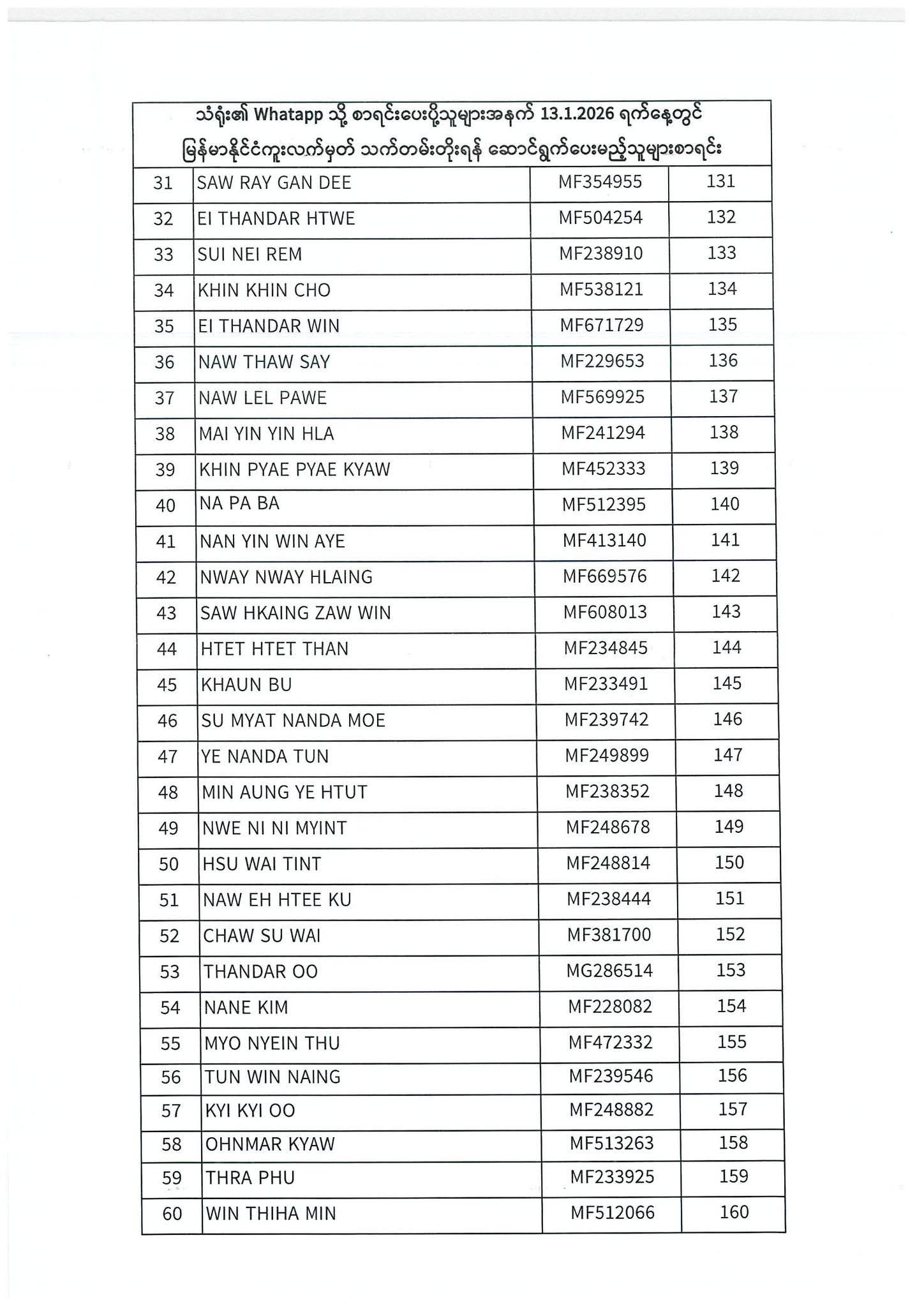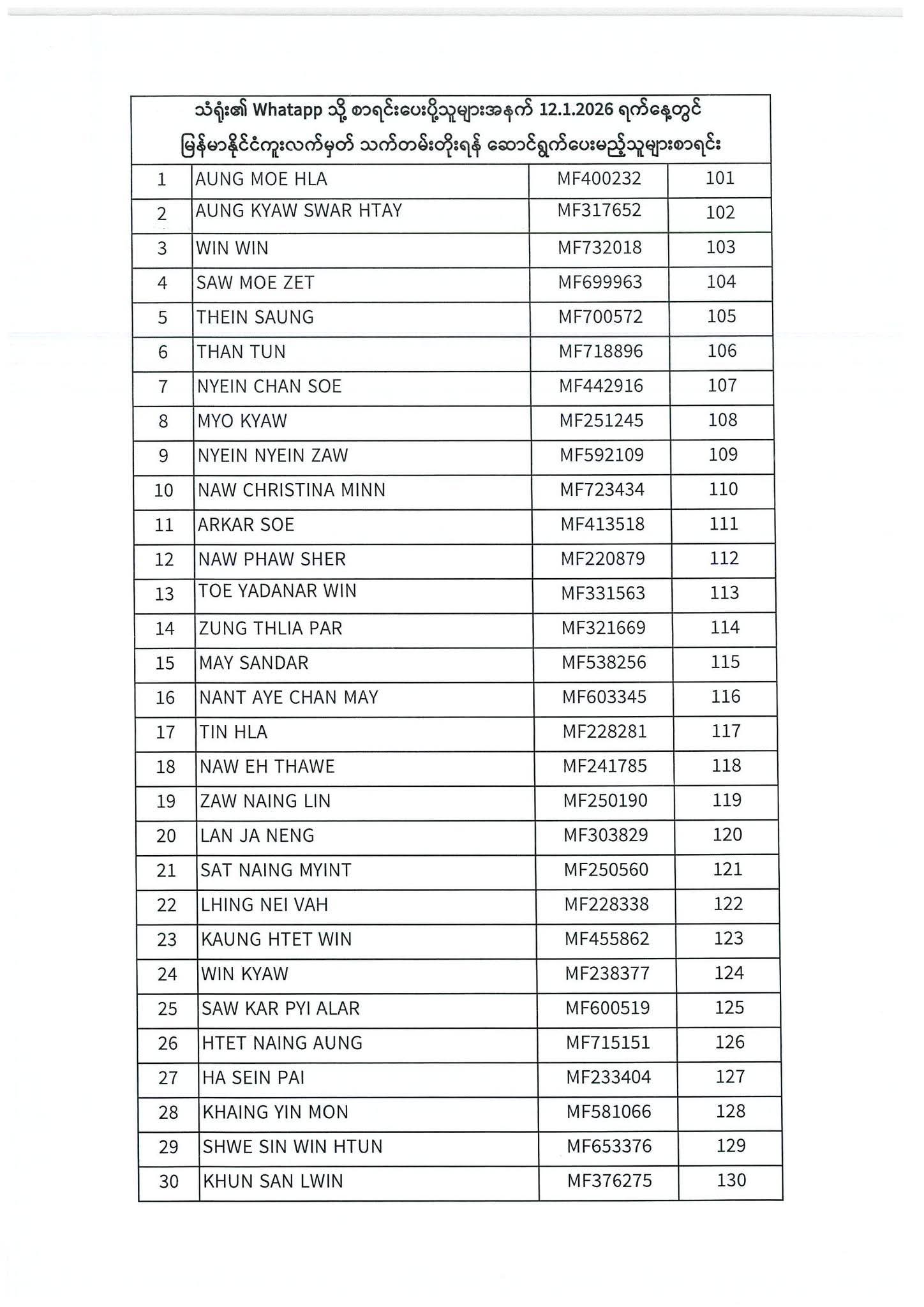 PASSPORT RENEWAL LIST 12 January To 16 January