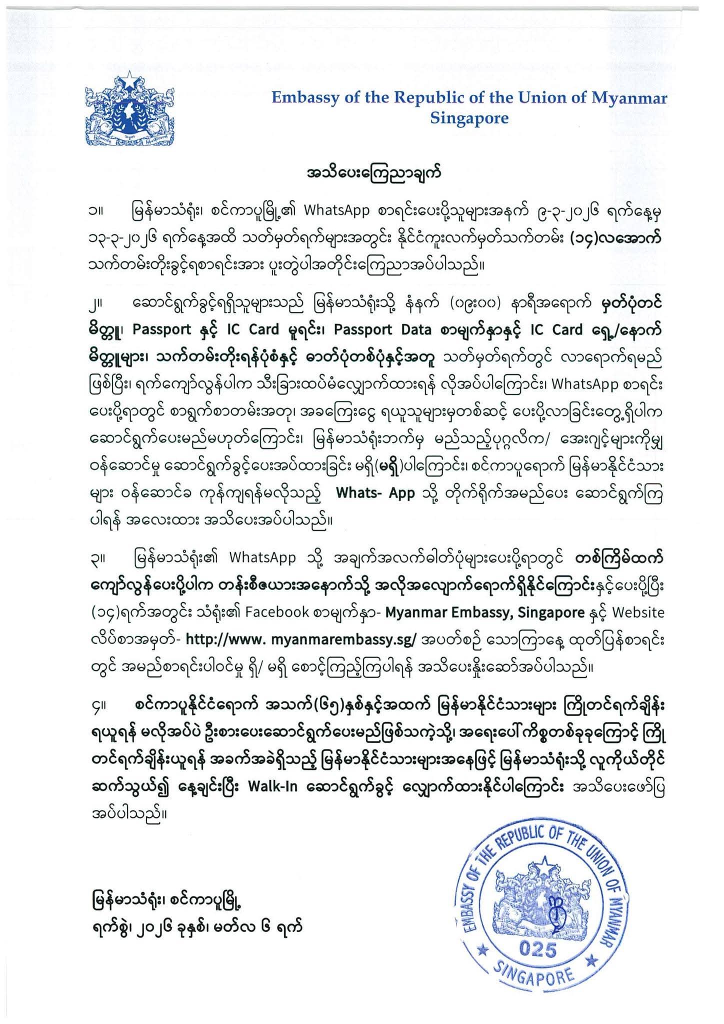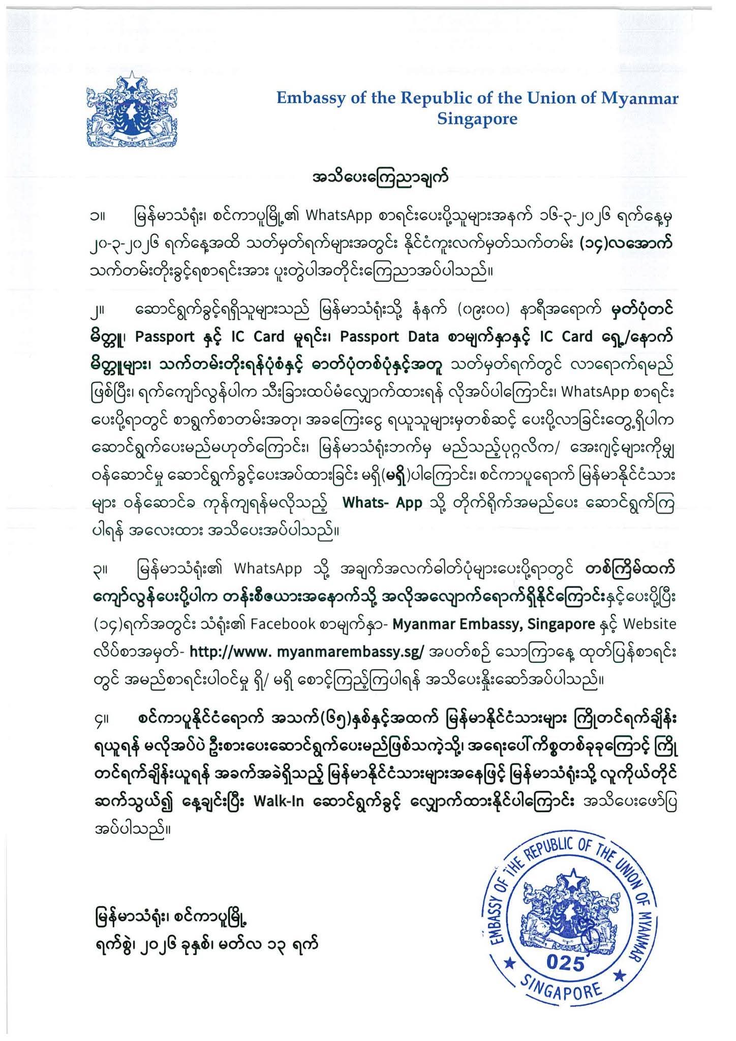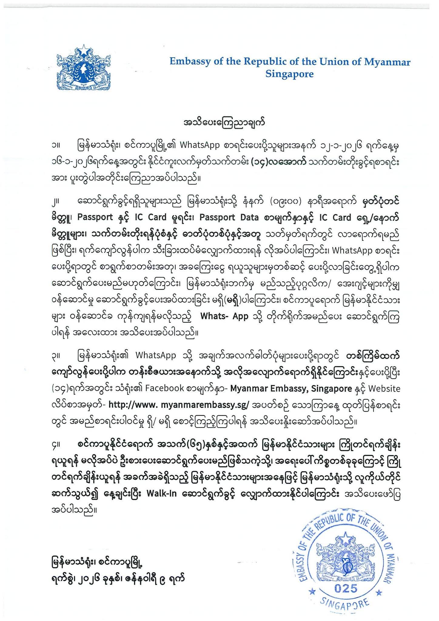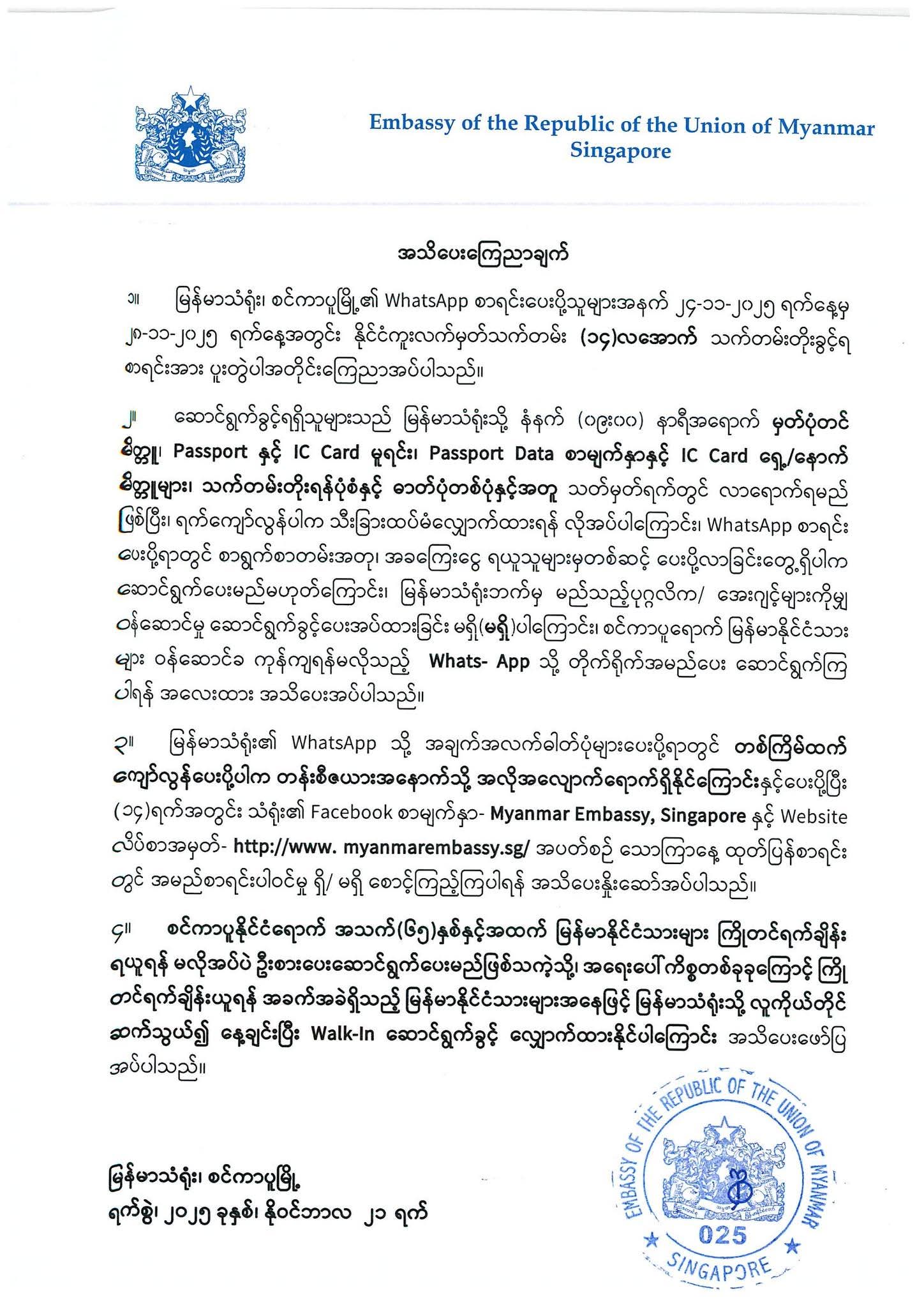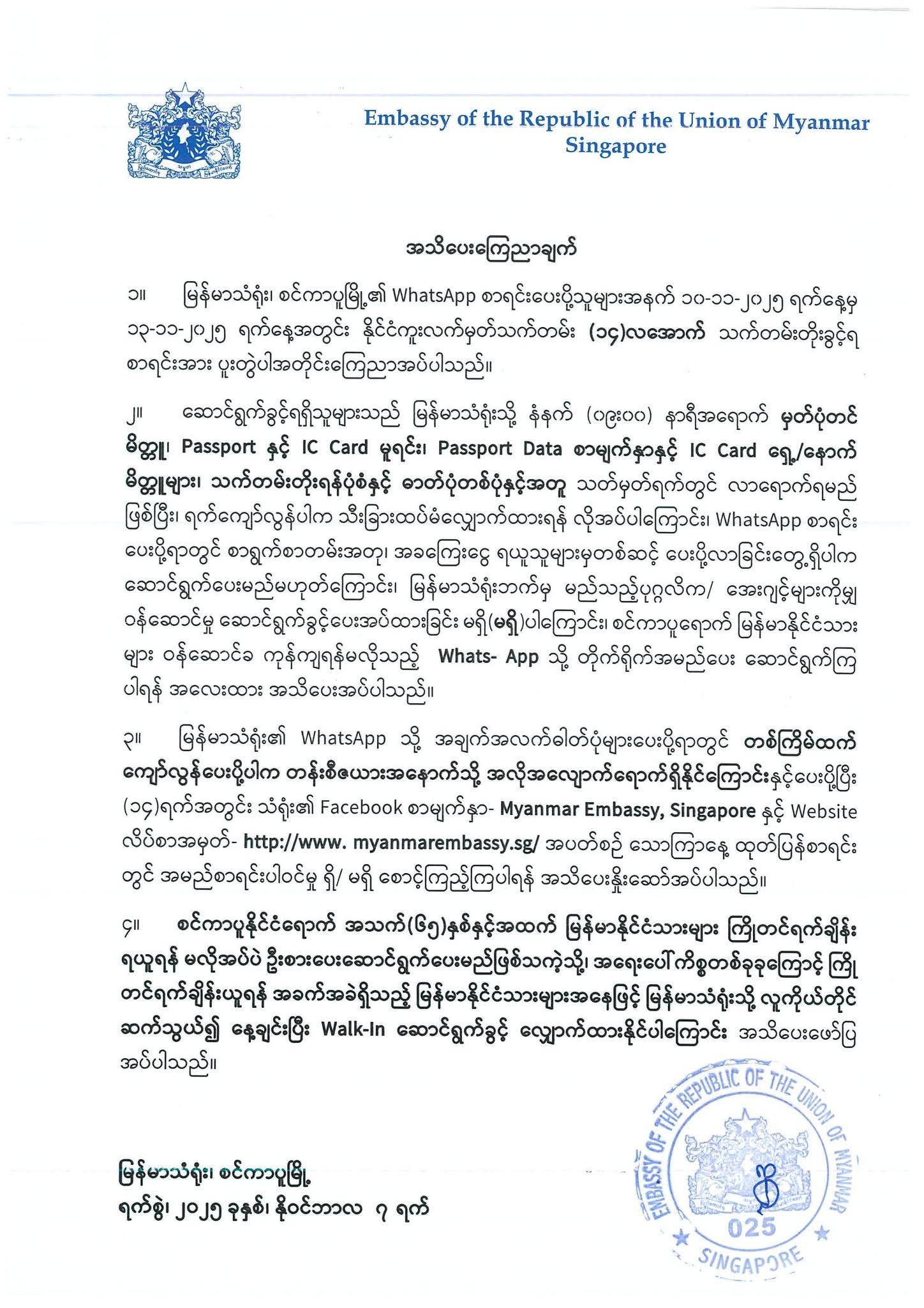 For tax payment only, it is require to bring tax form, passport copy, Sg IC copy, Myanmar IC copy Each & payable Cash.