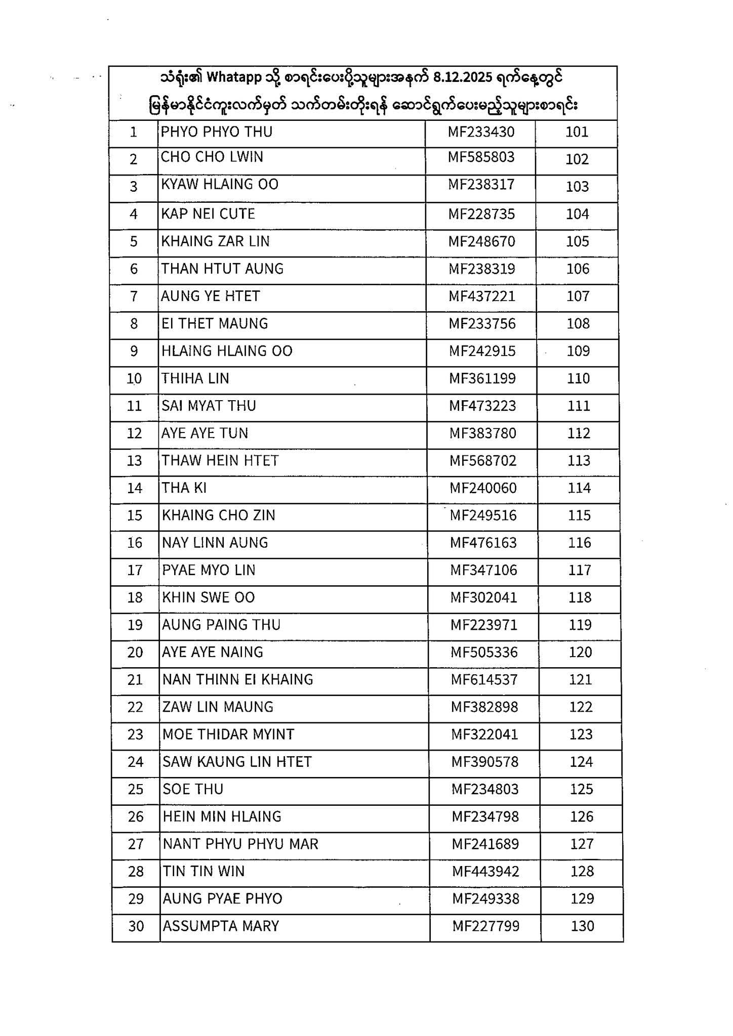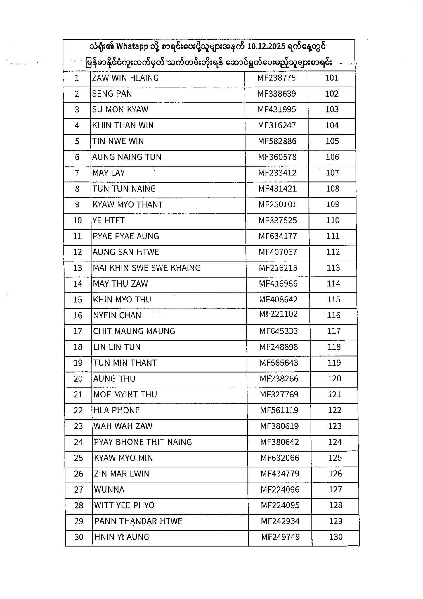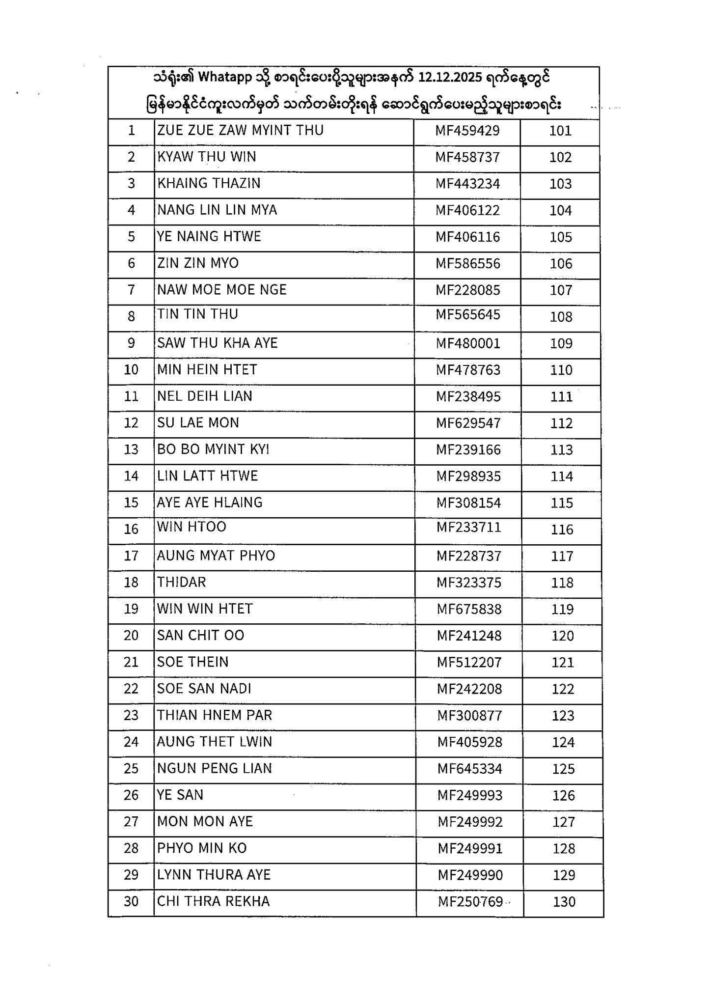 သတ်မှတ်ပေးထားသောရက်ချိန်းနေ့တွင်လာရောက်ပါရန်. မိမိပြုလုပ်ရမည့်ရက်ချိန်းနေ့အားအောက်ပါစာရင်းတွင်သေချာစွာကြည့်ပါ။