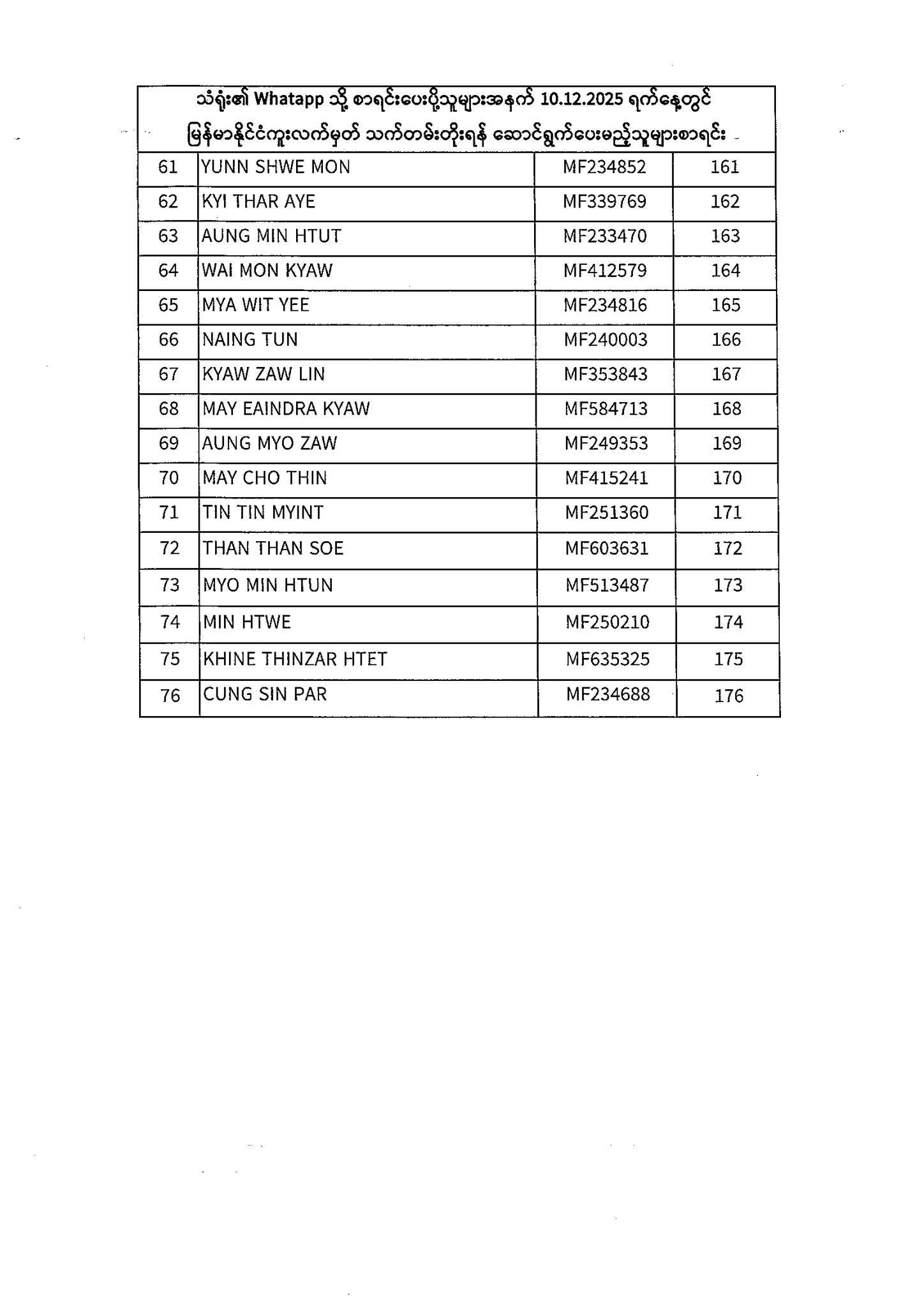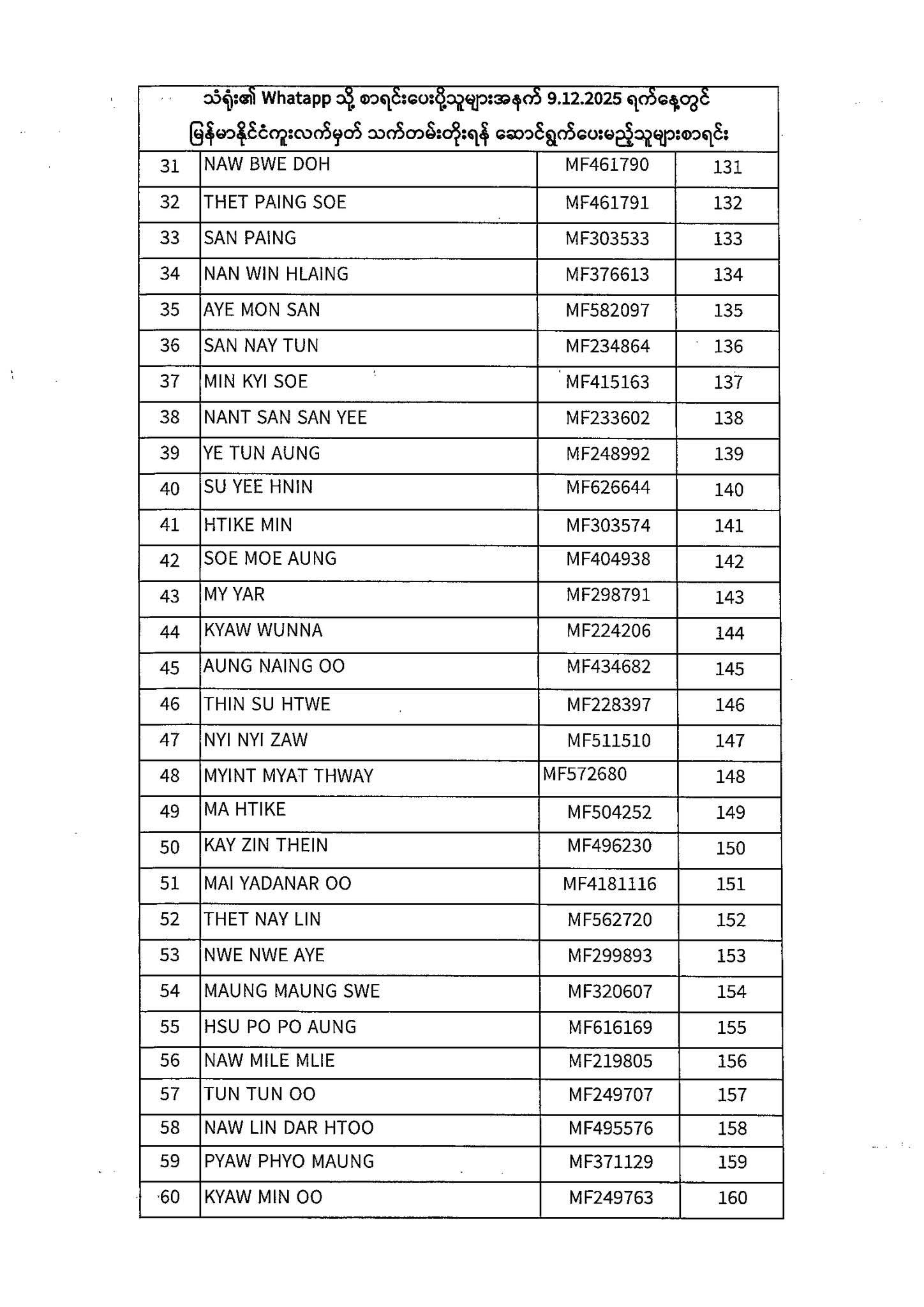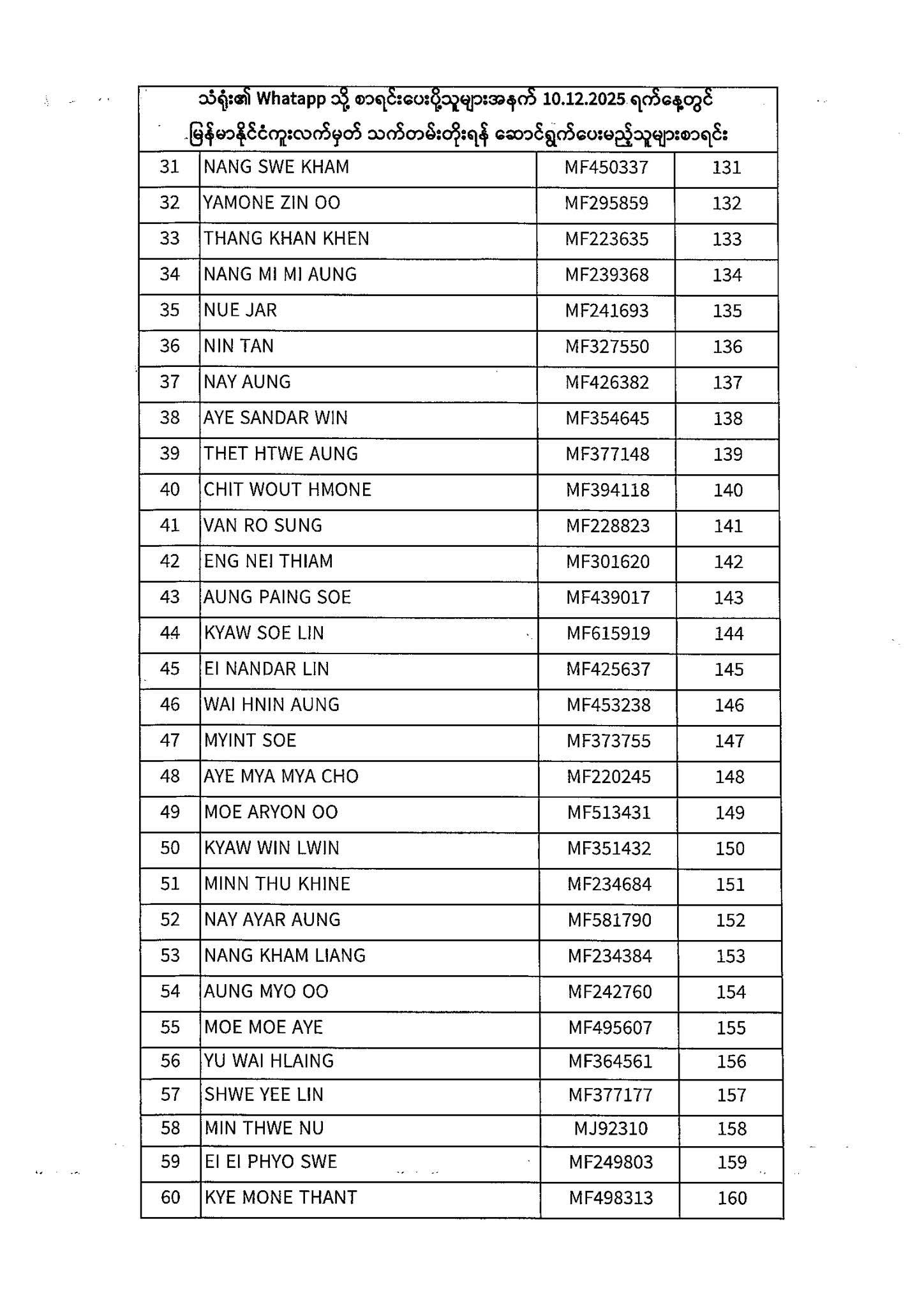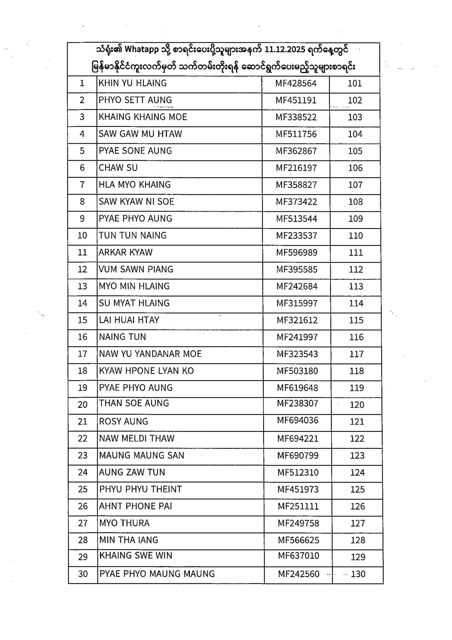 သတ်မှတ်ပေးထားသောရက်ချိန်းနေ့တွင်လာရောက်ပါရန်. မိမိပြုလုပ်ရမည့်ရက်ချိန်းနေ့အားအောက်ပါစာရင်းတွင်သေချာစွာကြည့်ပါ။