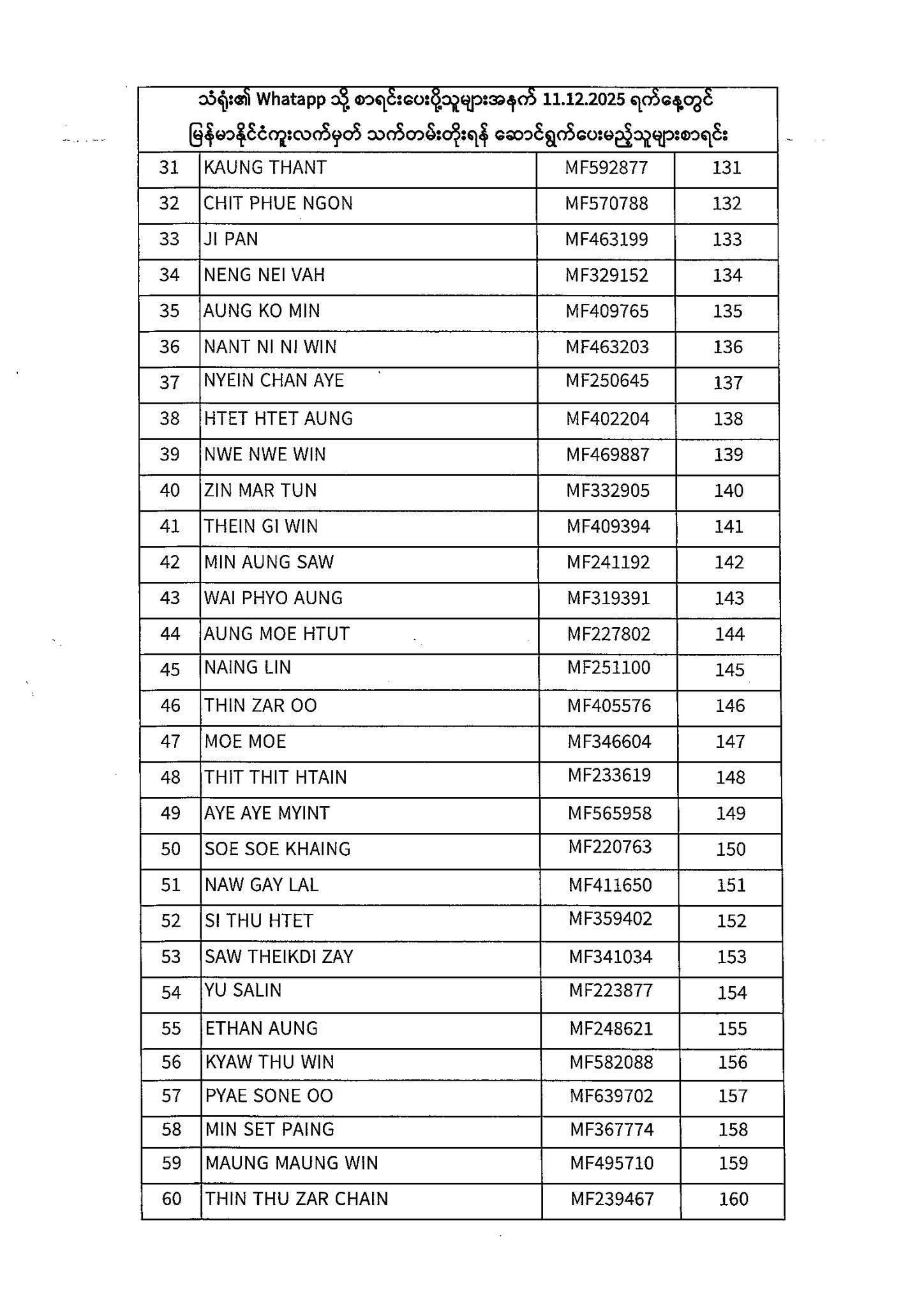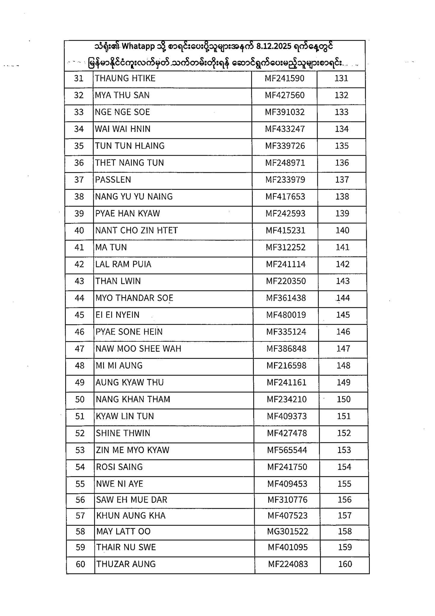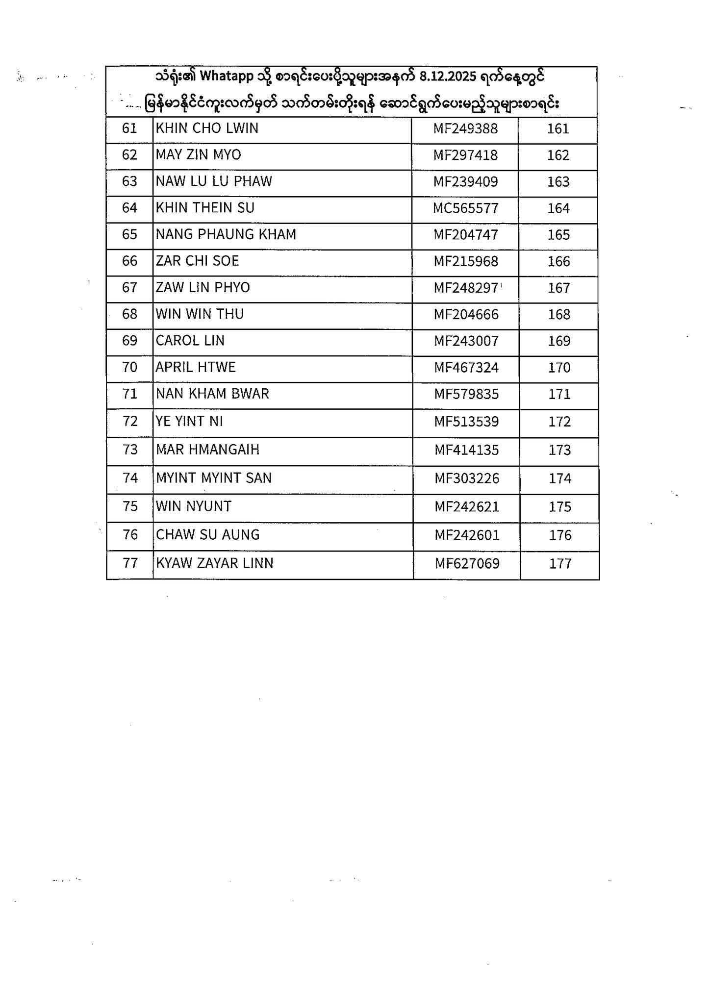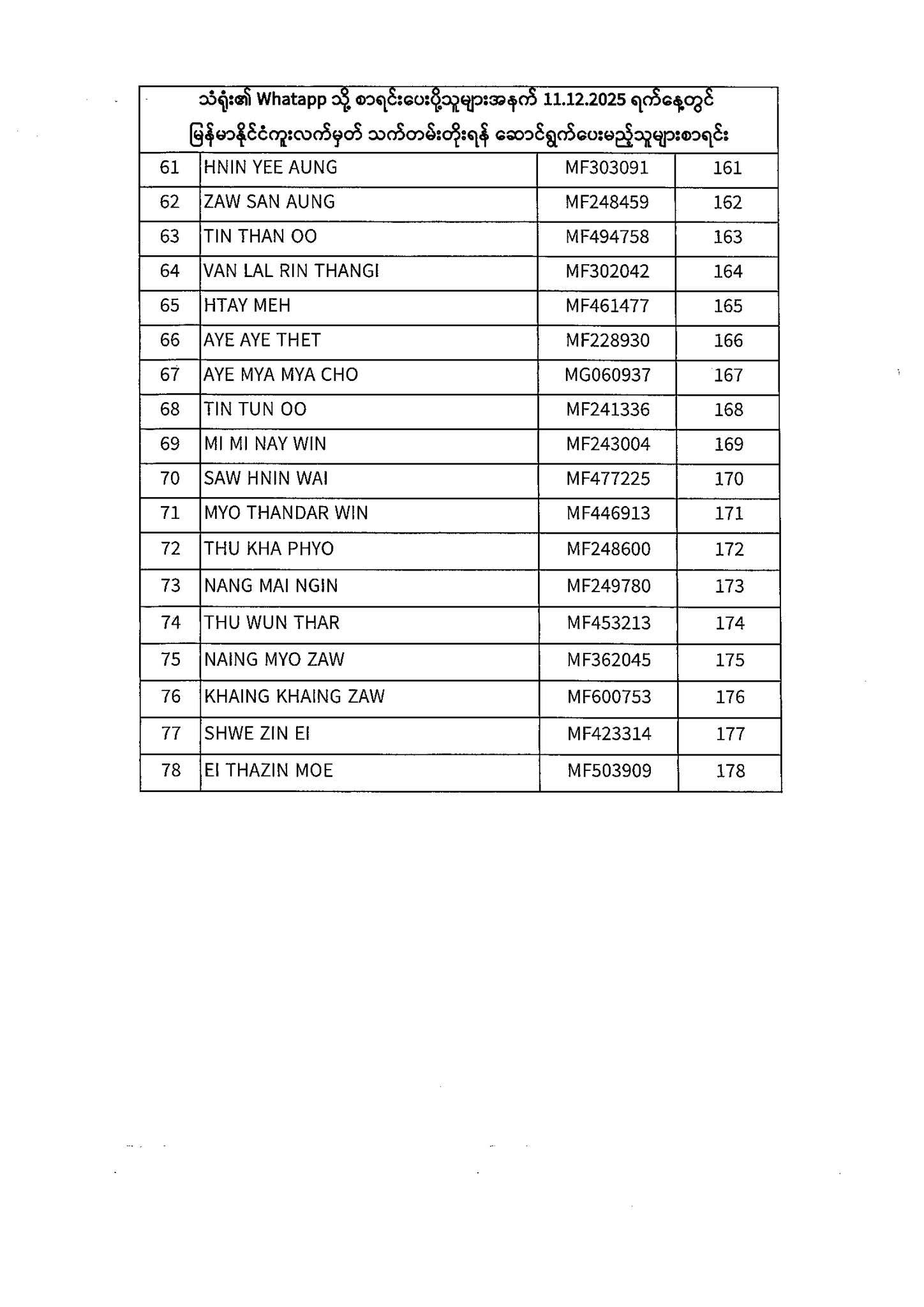 PASSPORT RENEWAL LIST 8 December To 12 December⇩