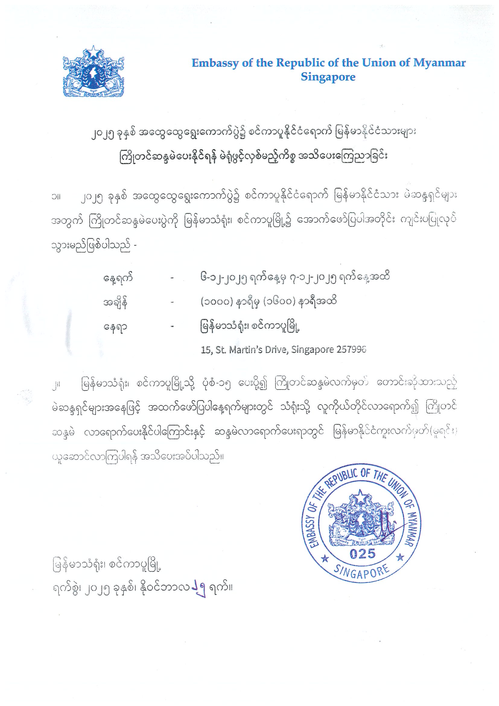 For tax payment only, it is require to bring tax form, passport copy, Sg IC copy, Myanmar IC copy Each & payable Cash.